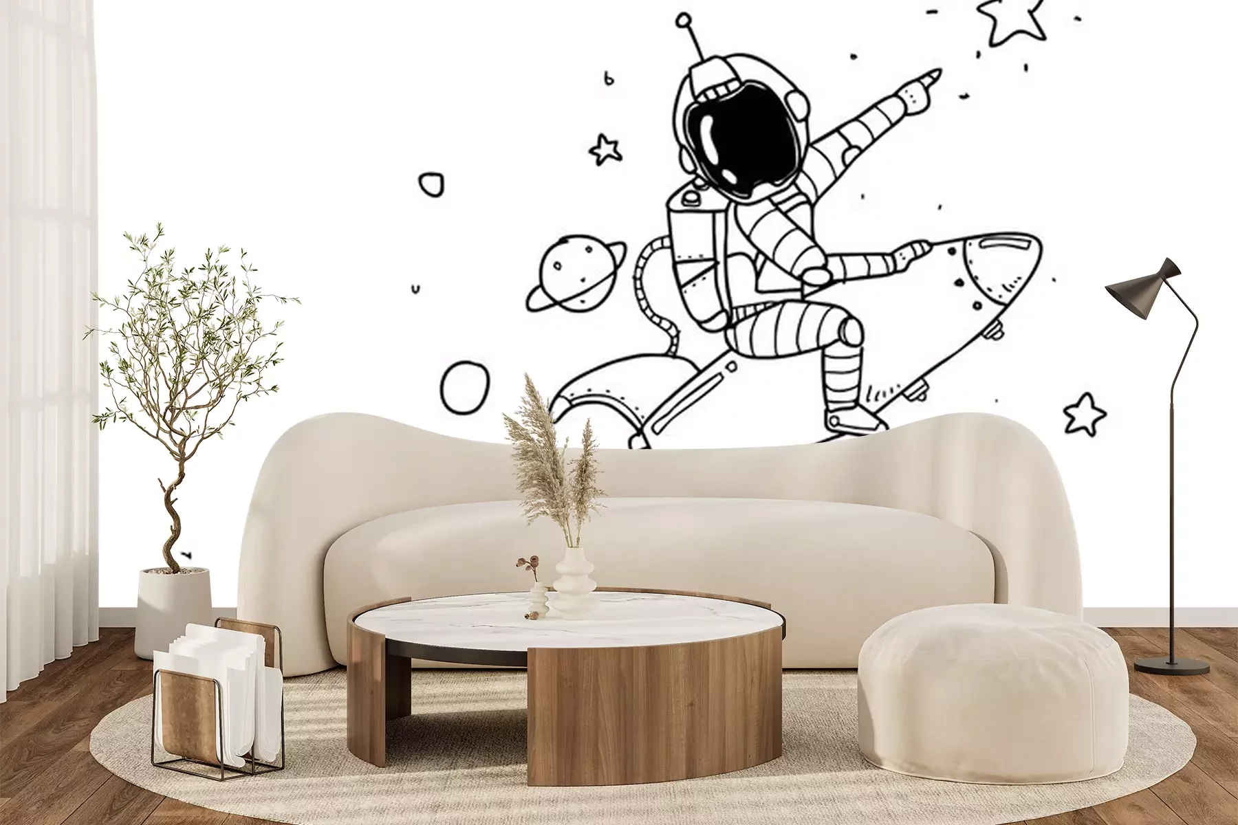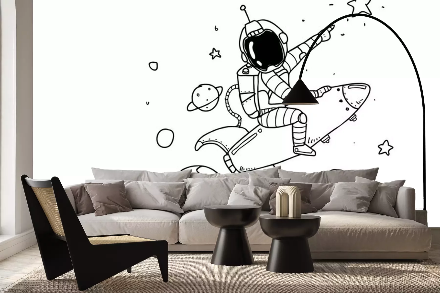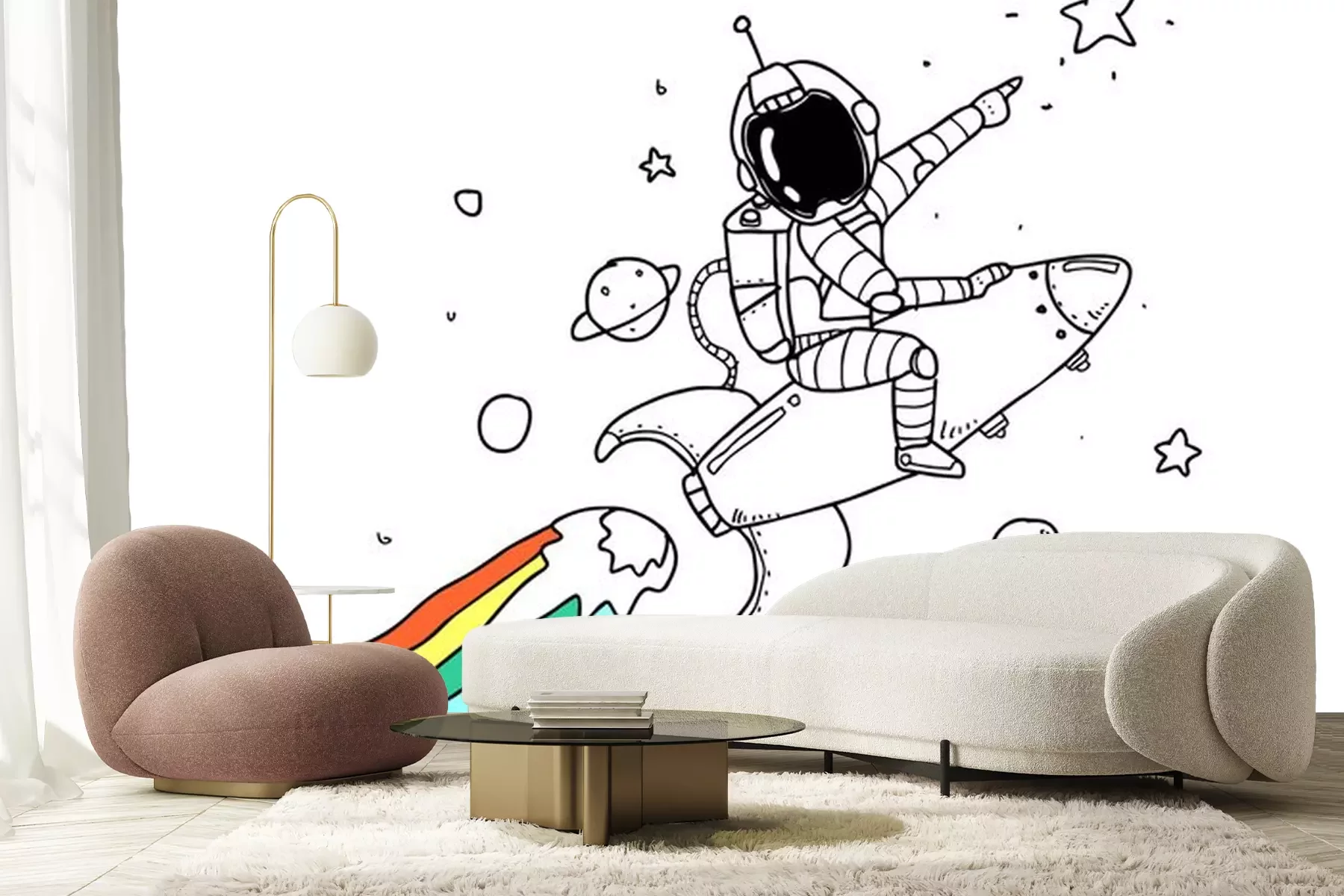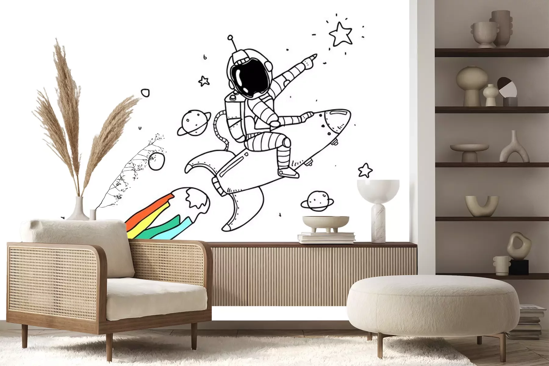 Sticker Astronaut im Weltraum auf einer Rakete