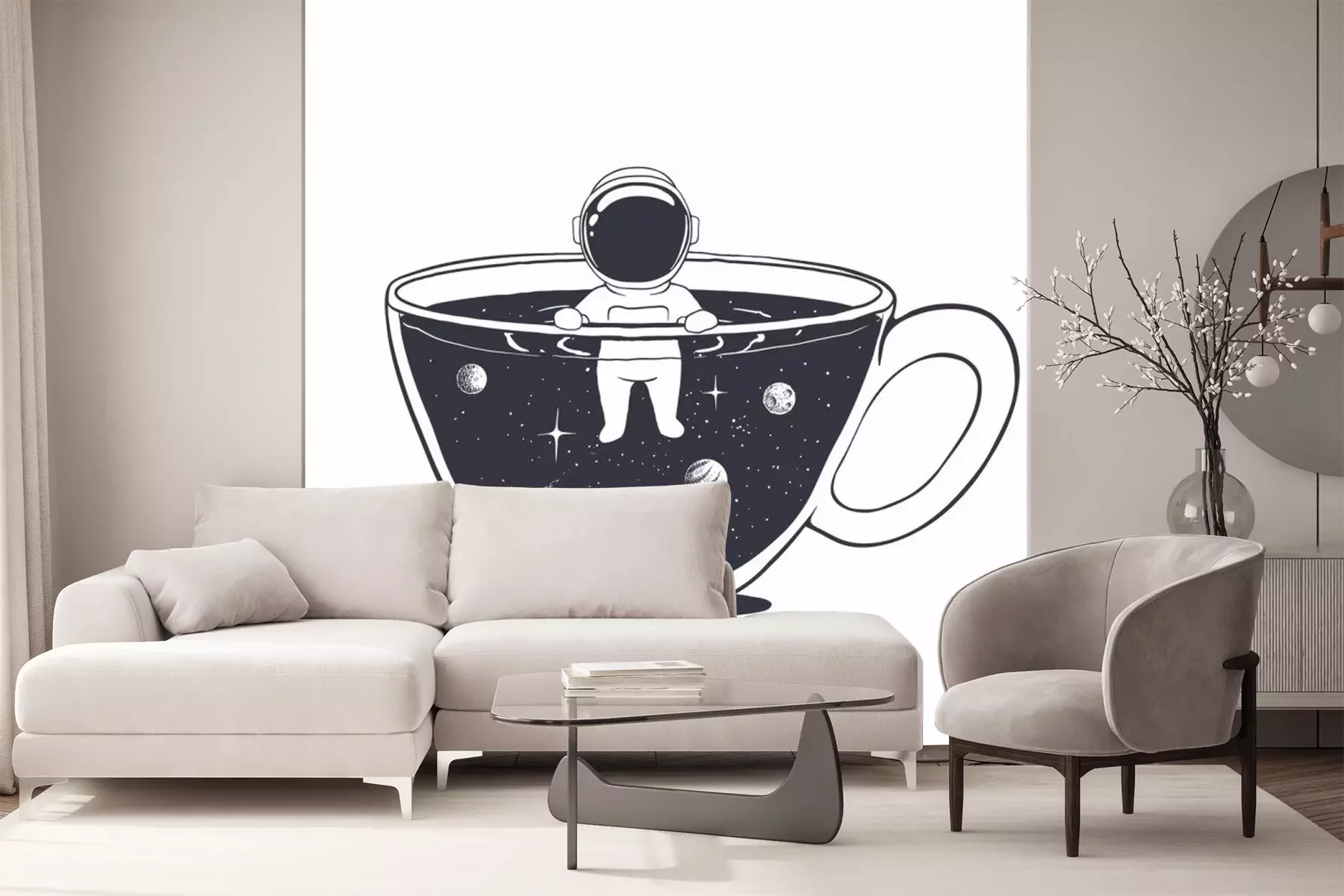 Sticker Astronaut und Planeten schweben in einer Tasse