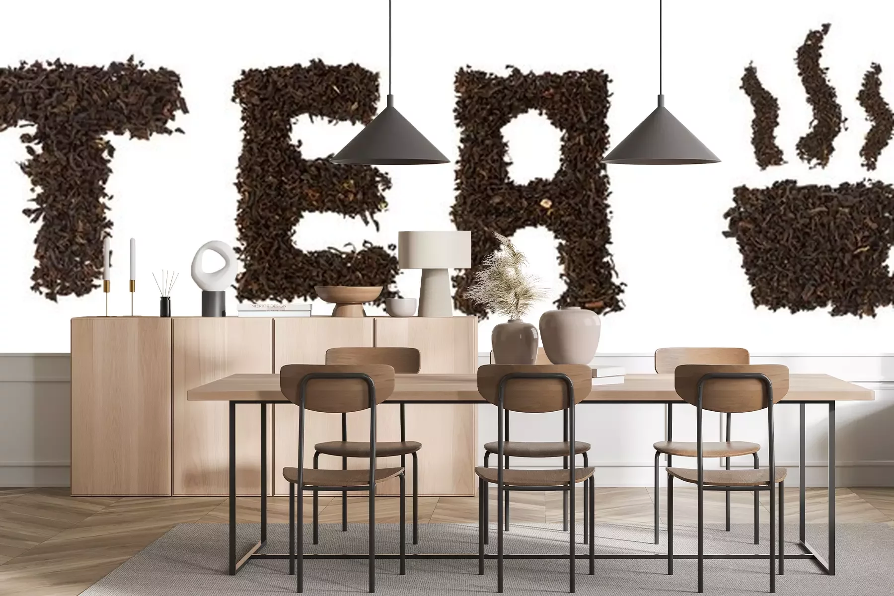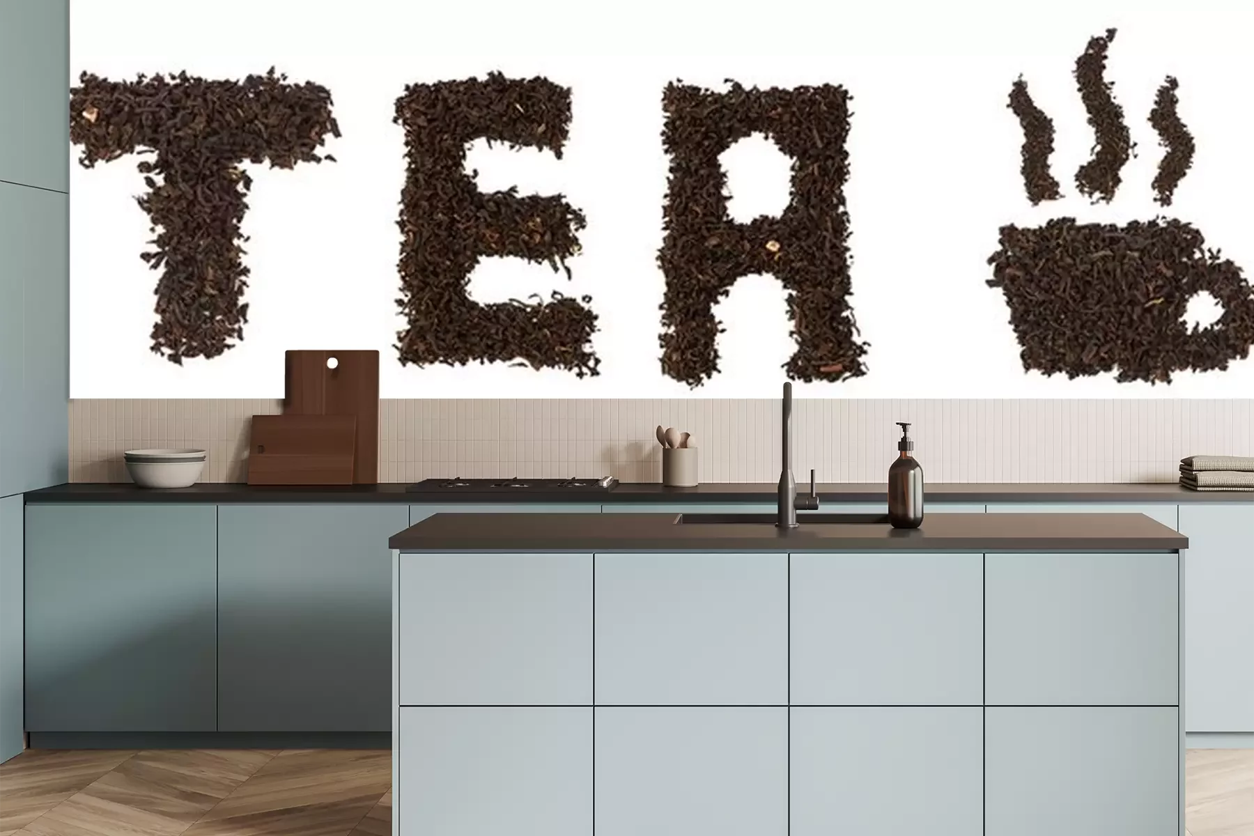 Sticker Aufschrift Tea aus Teeblättern angeordnet