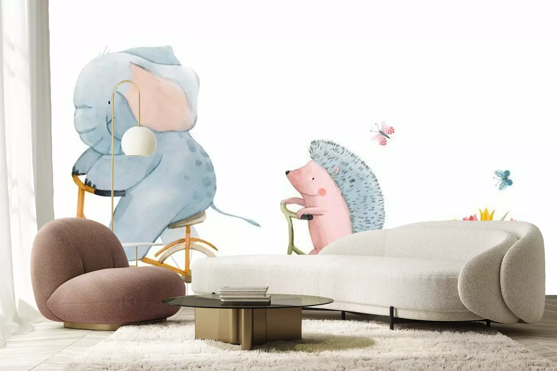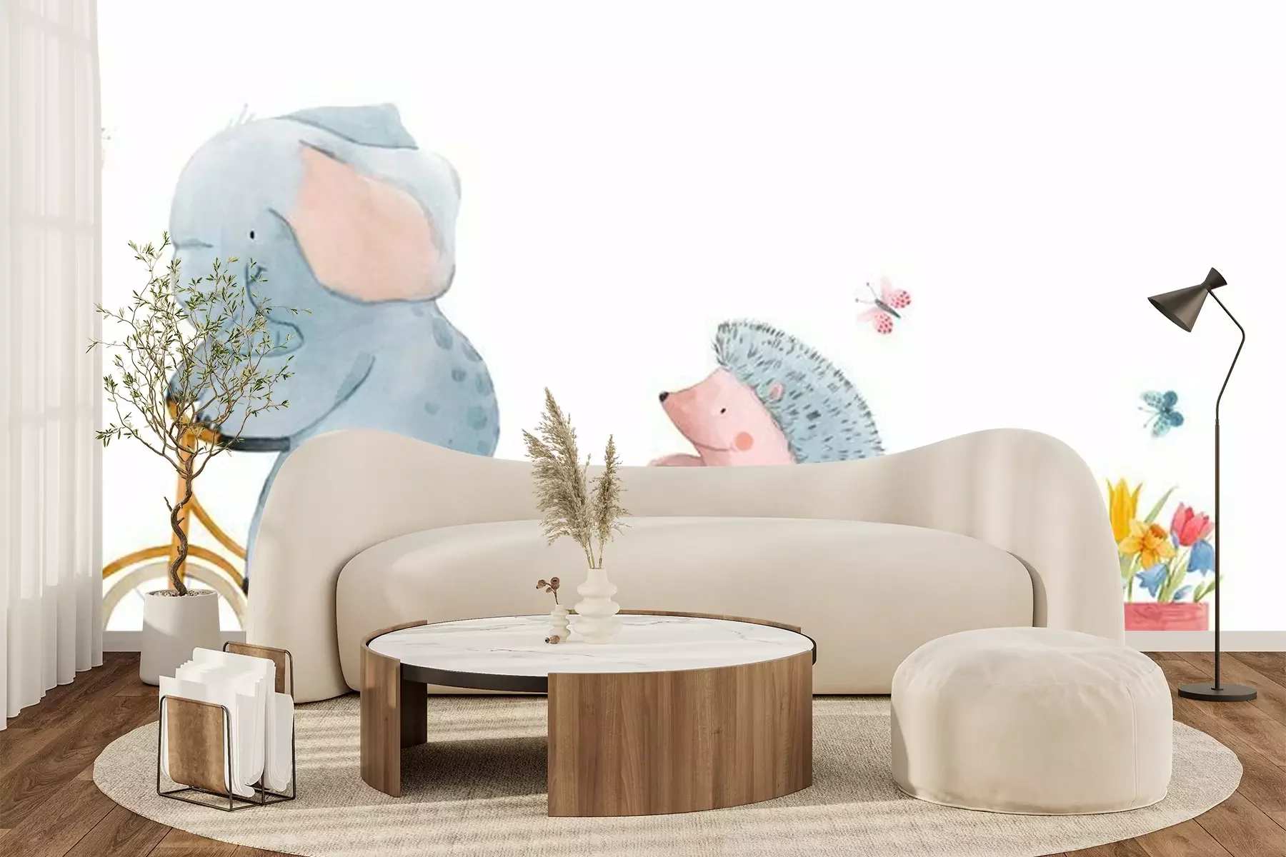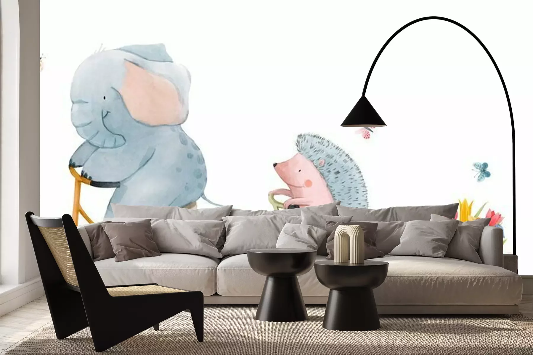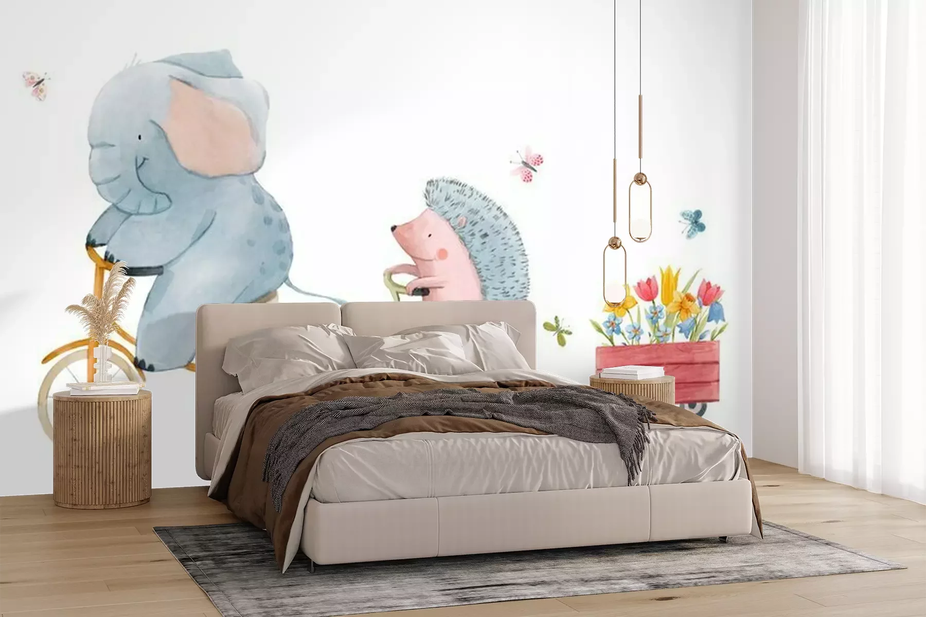 Sticker Beautiful stock illustration with watercolor hand drawn cute animals on transport.