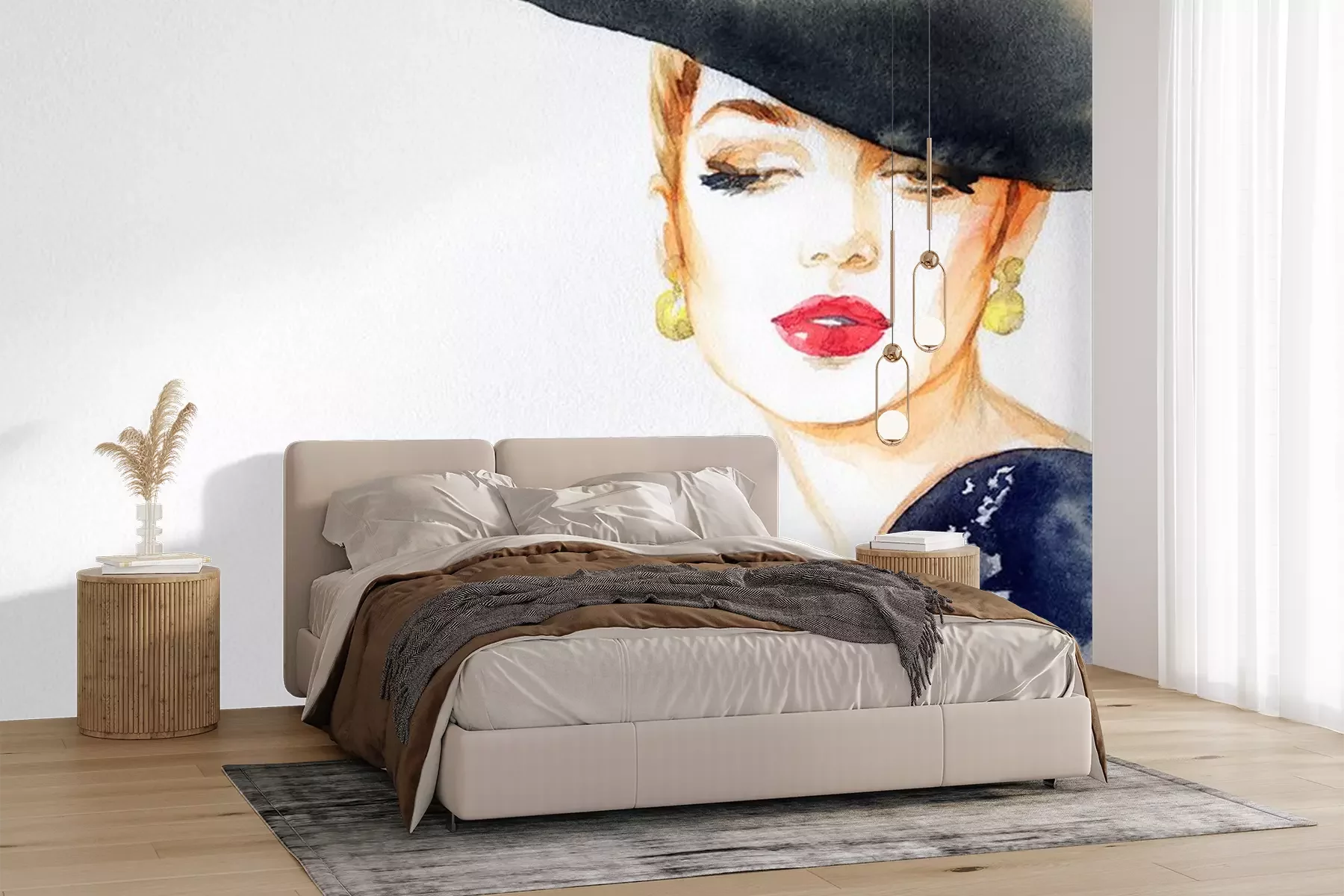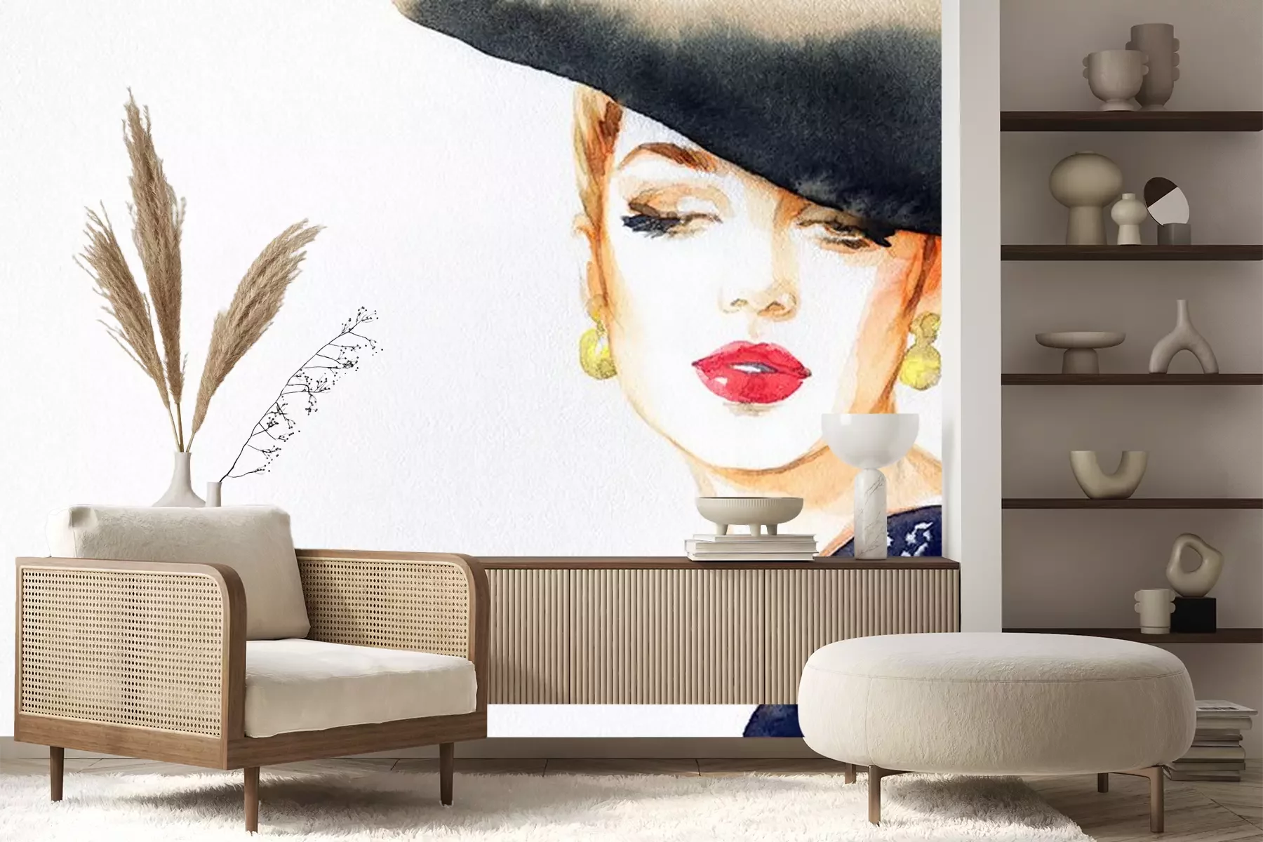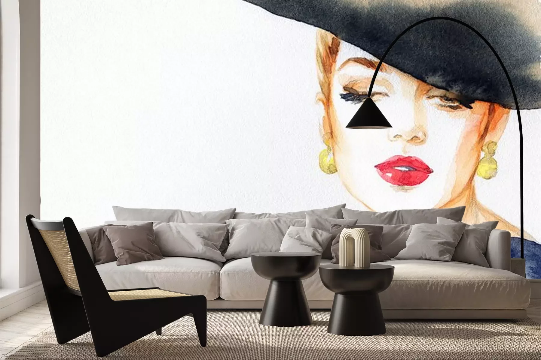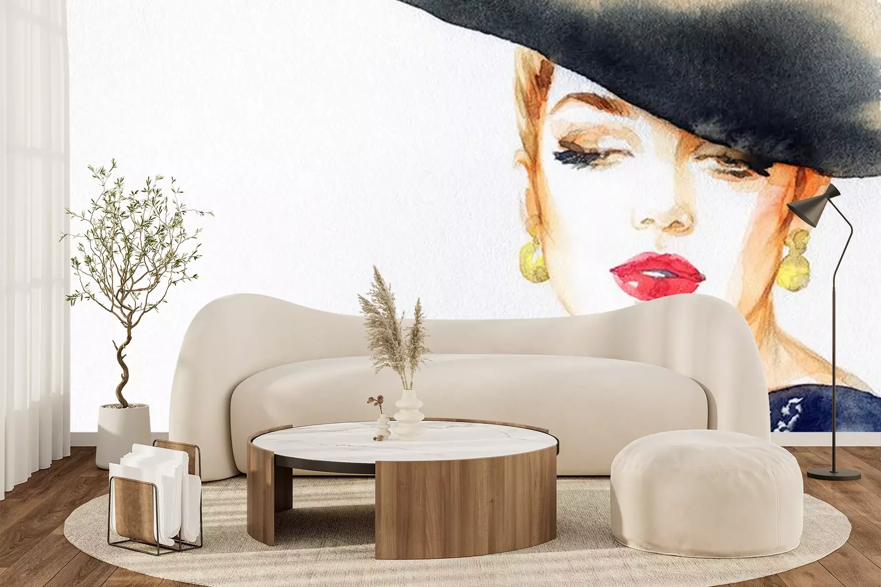 Sticker beautiful woman. fashion illustration. watercolor painting