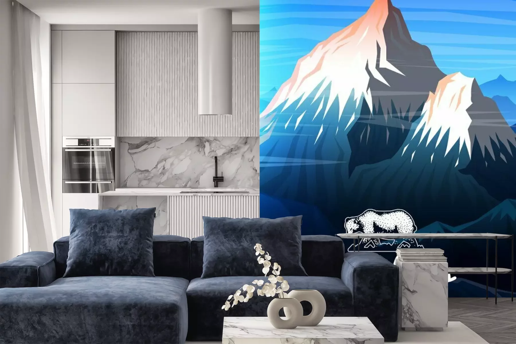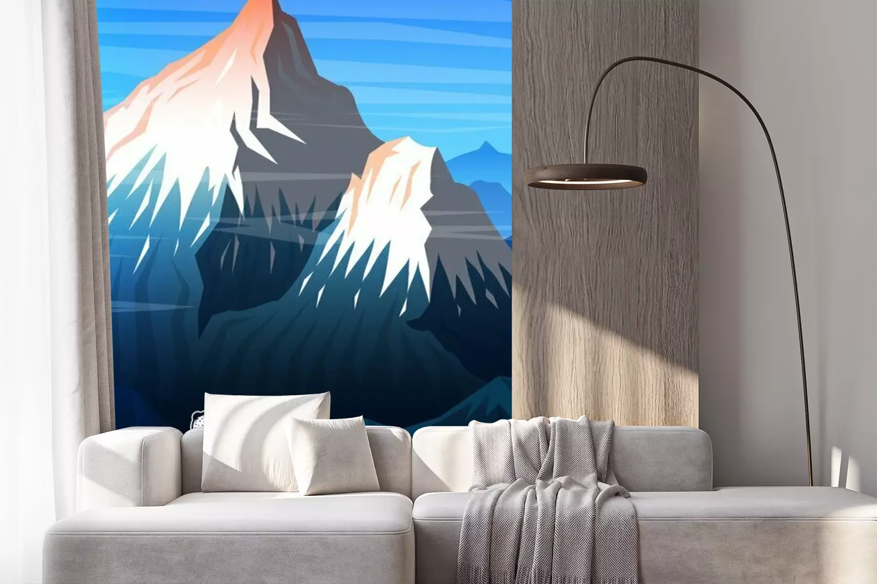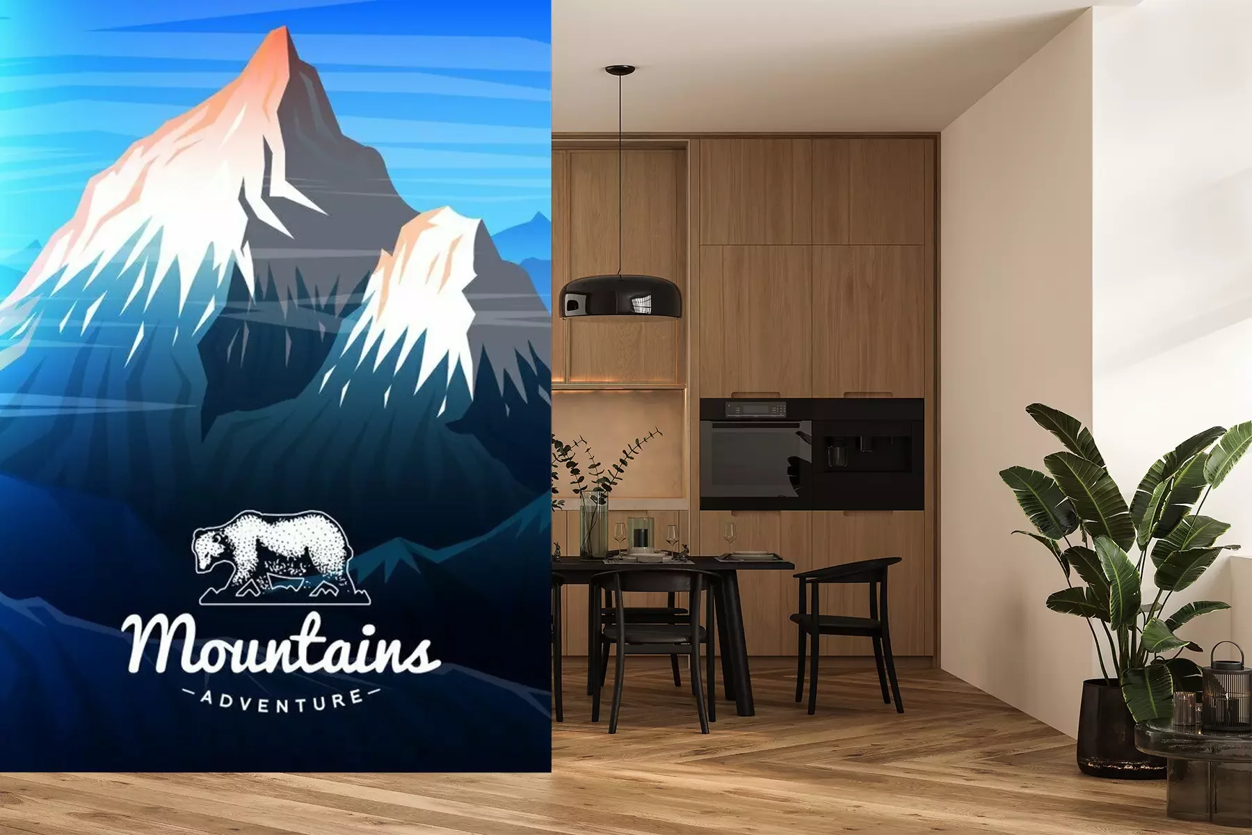 Sticker Berge peaks Karte oder Broschüre. Tourismus in der Natur. Landschaft früh bei Tageslicht. Outdoor-Hügel. Vintage Poster oder Hintergrund. Vorlage von Flyer, Buchumschlag und Abzeichen.