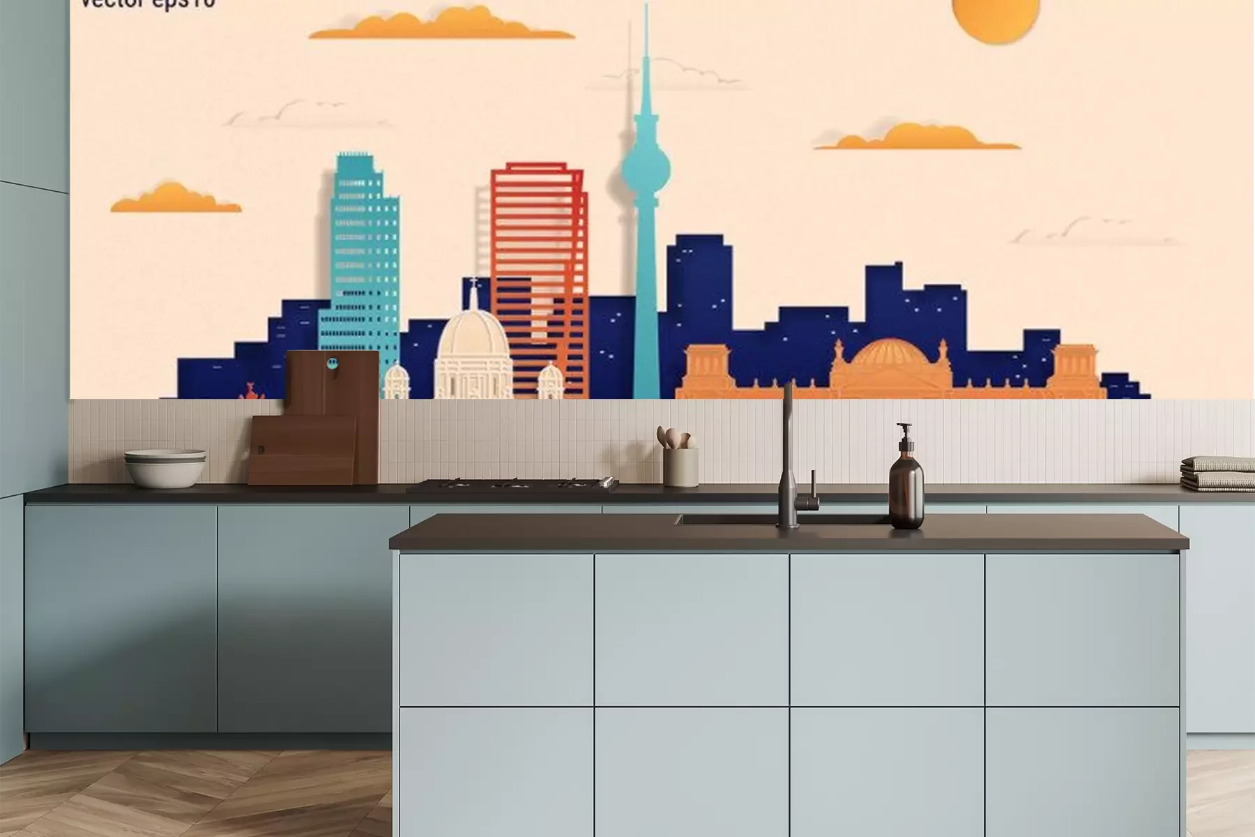 Sticker Berlin city colorful paper cut style, vector stock illustration. Cityscape with all famous buildings. Skyline Berlin city composition for design.