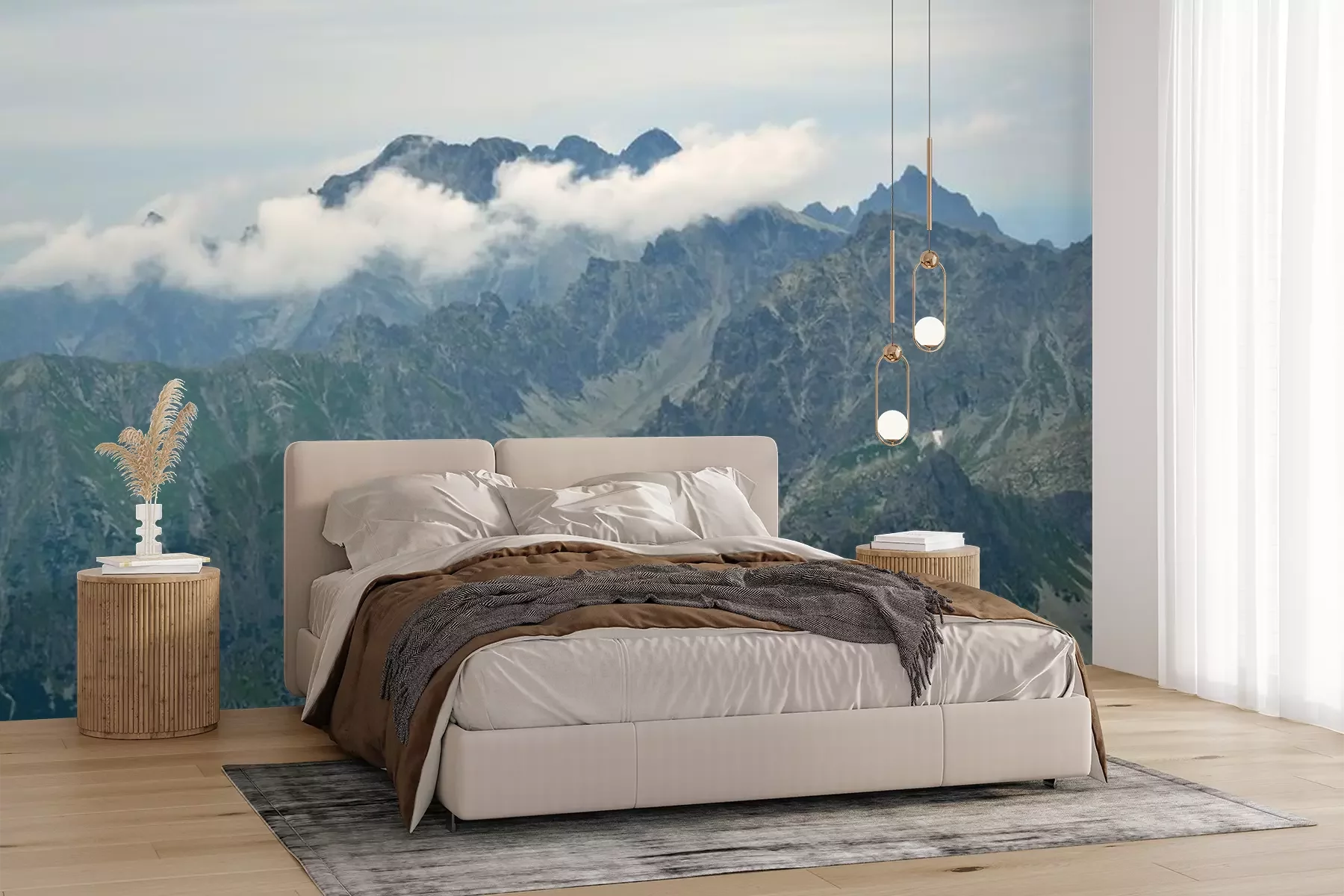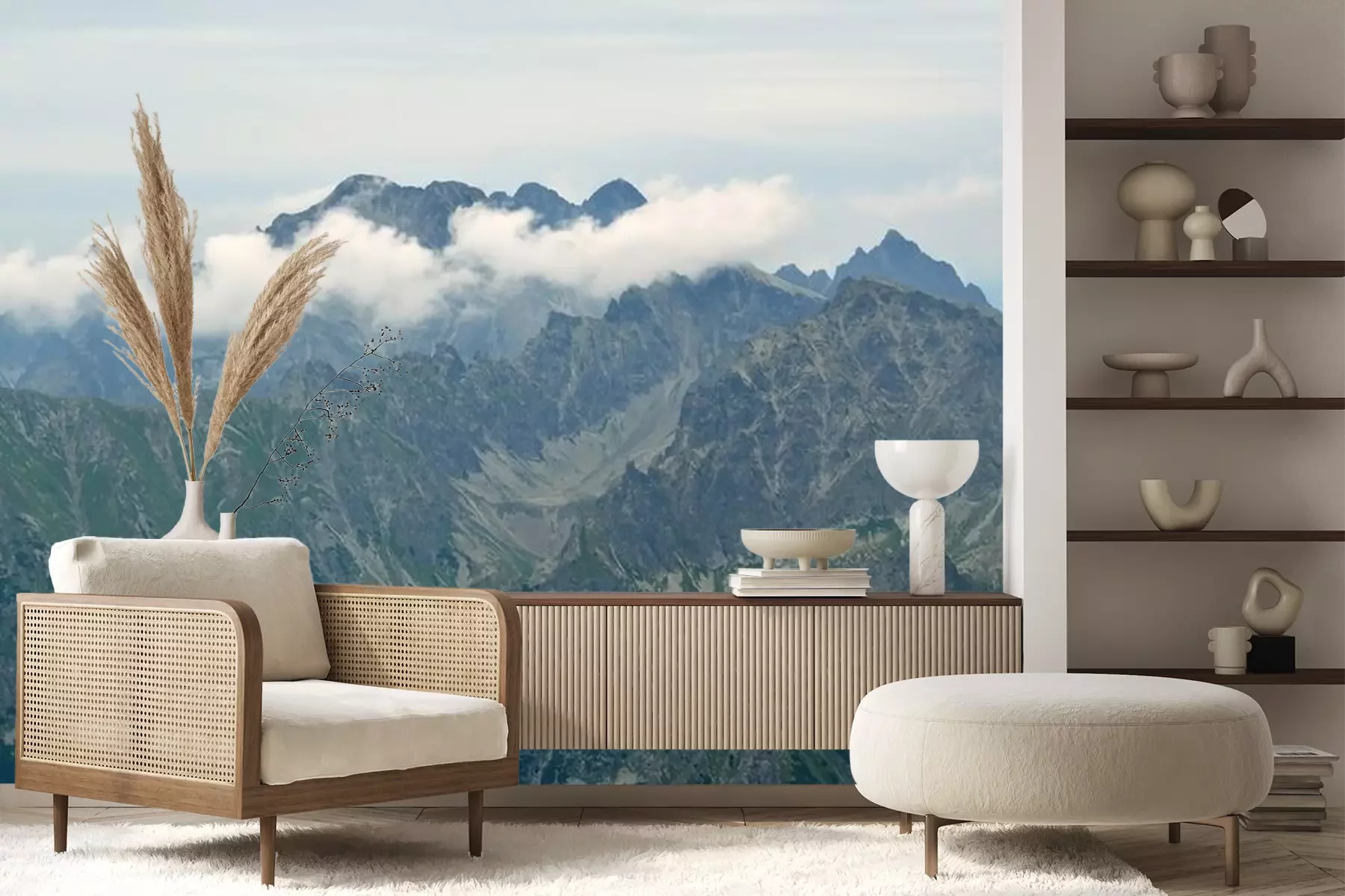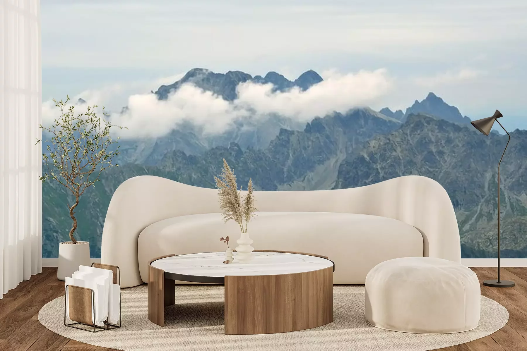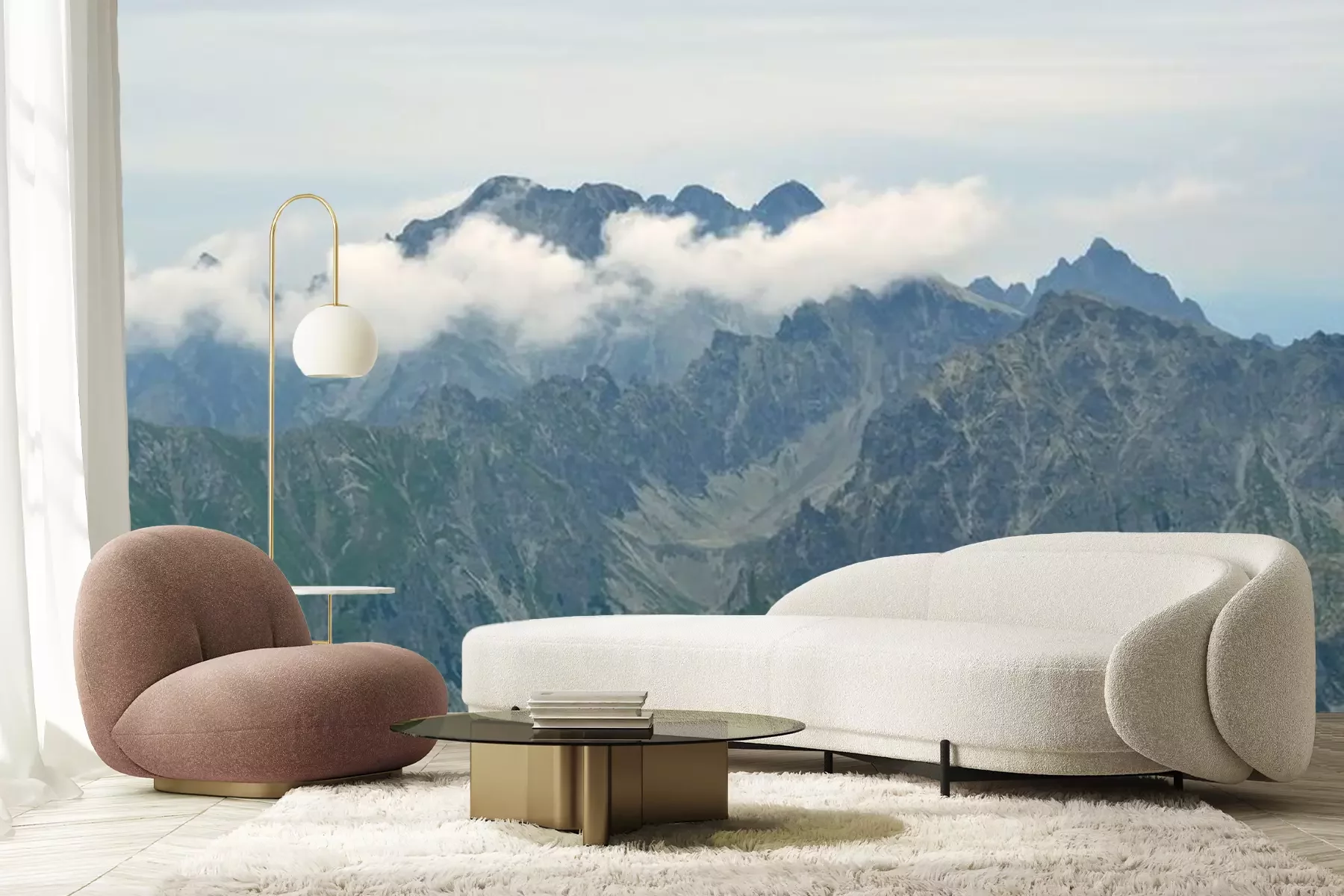 Sticker Bewölkt Berglandschaft. Blick auf die Rysy auf Ladovy und Lomnicky Stit (Peak) in der Hohen Tatra, Slowakei.