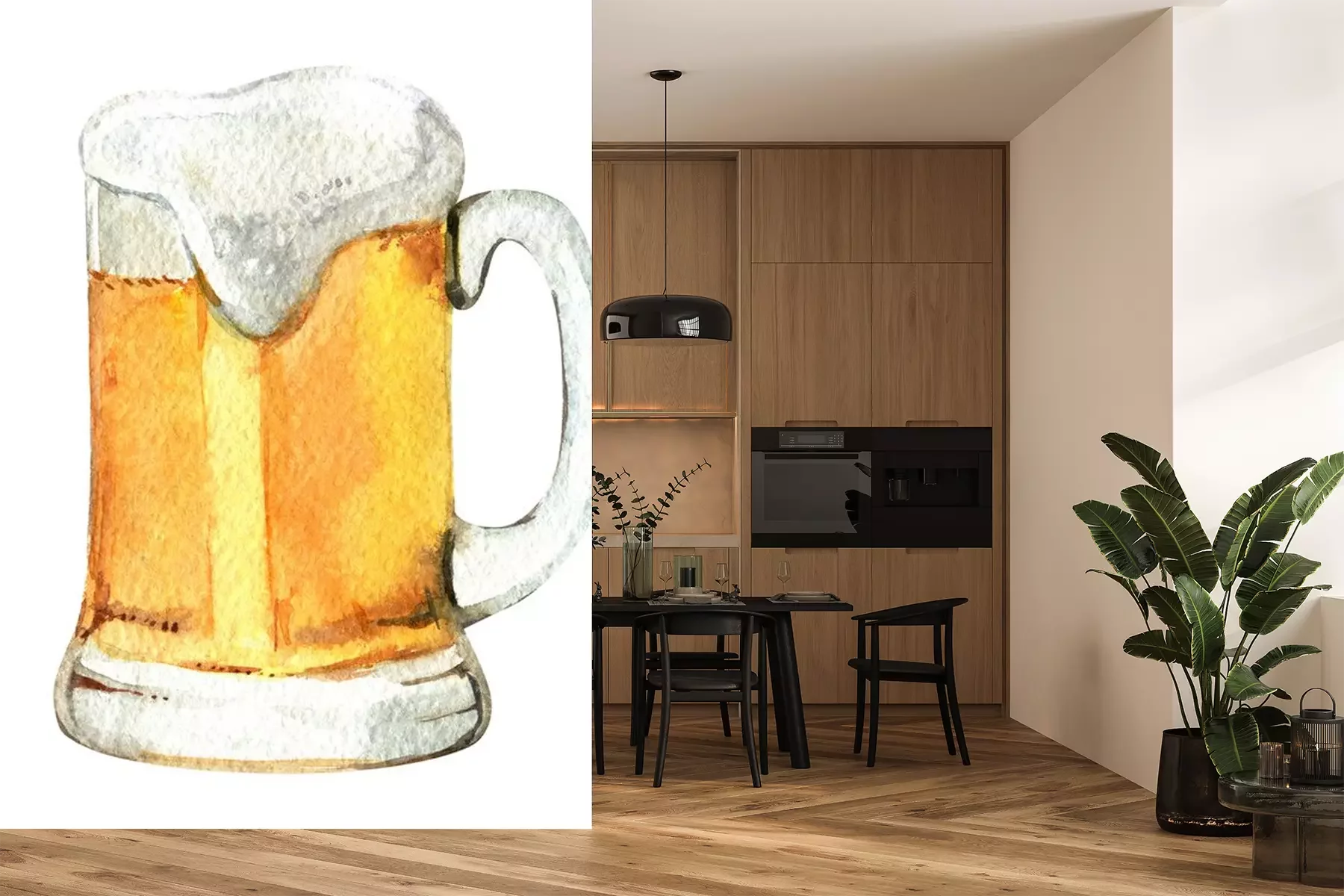 Sticker Bier mit Schaum Aquarellzeichnung