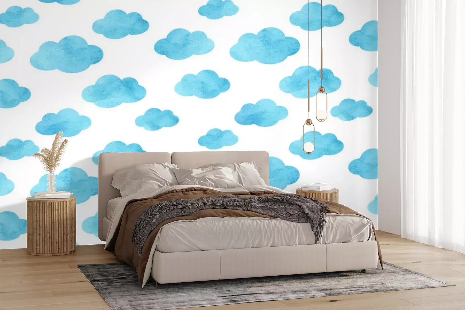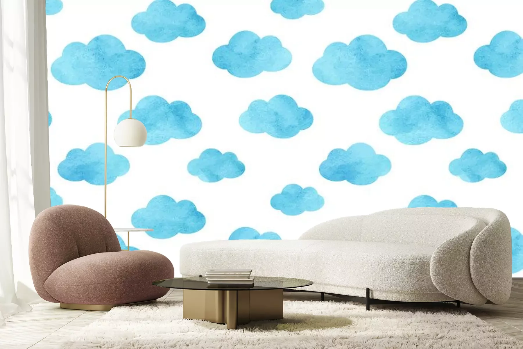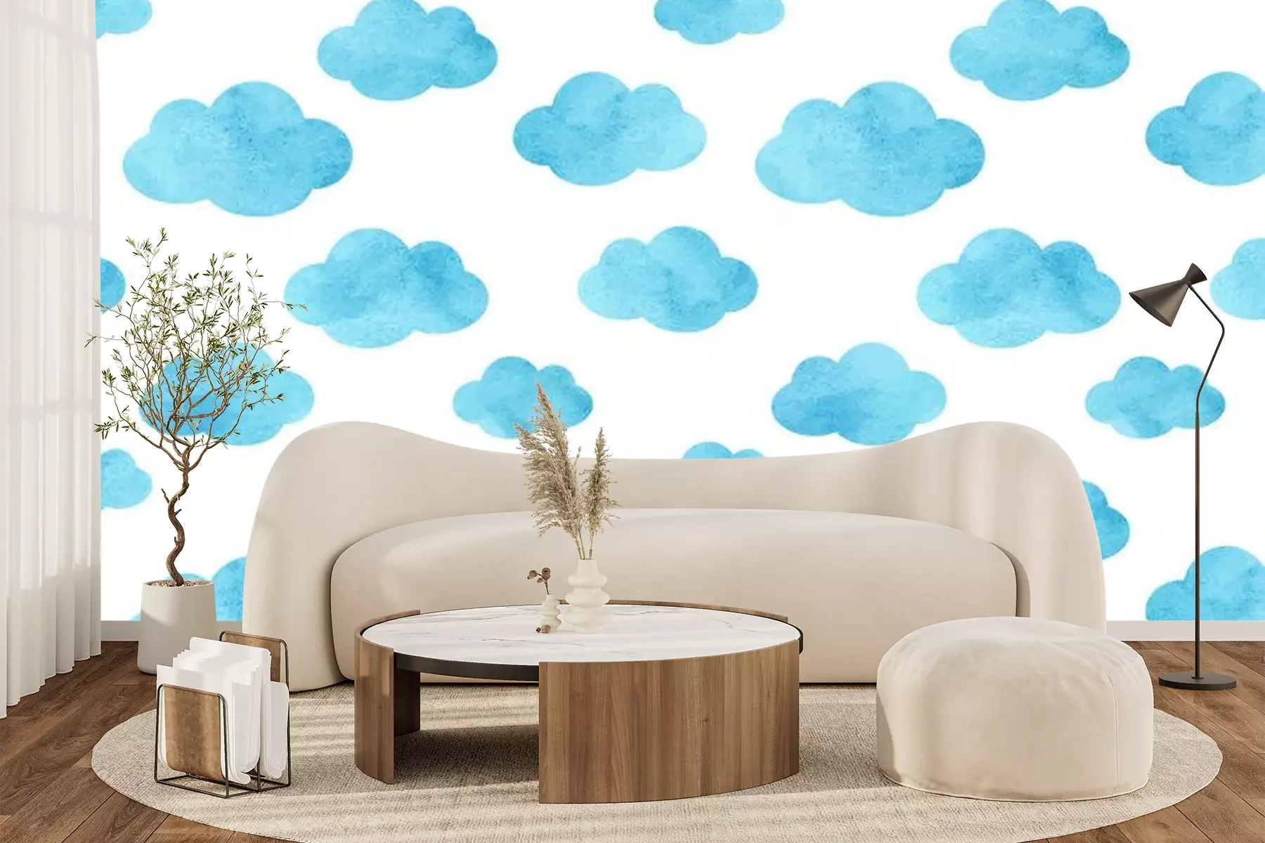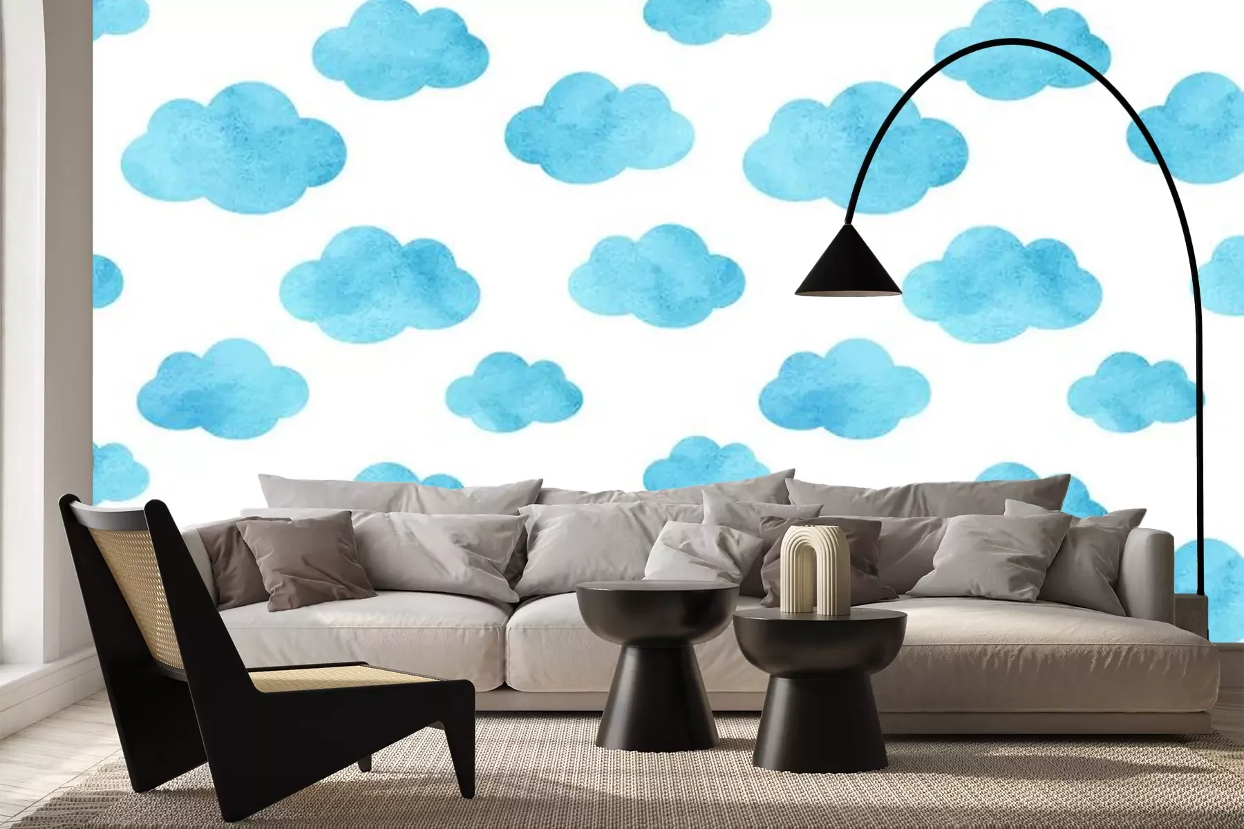 Sticker Blaue Aquarell-Wolken auf weißem Hintergrund
