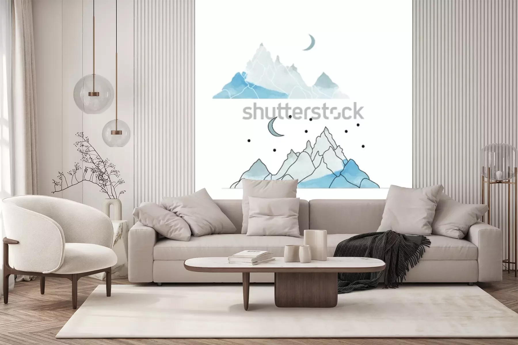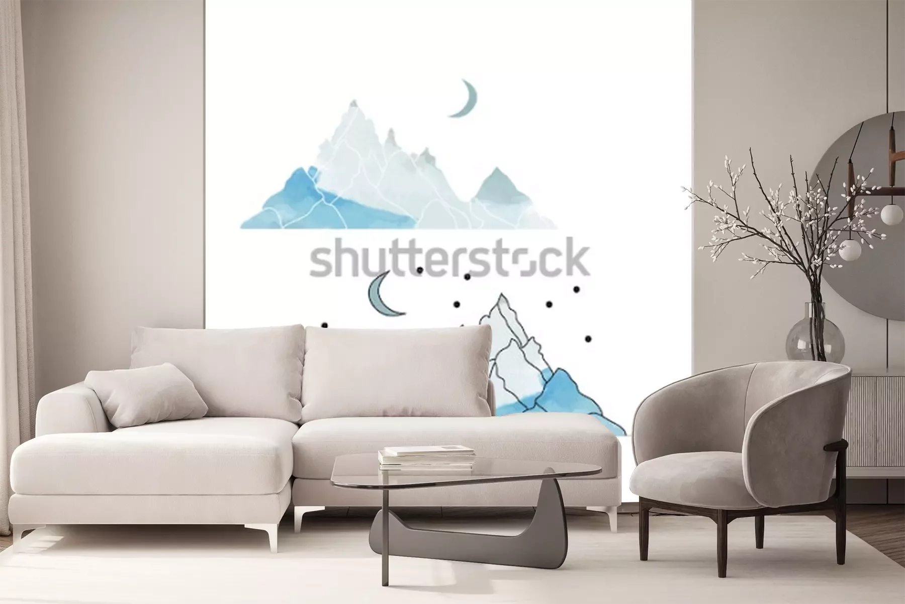 Sticker Blaue Berge. Landschaftszeichnung in einem Aquarellstil. Vektorillustration