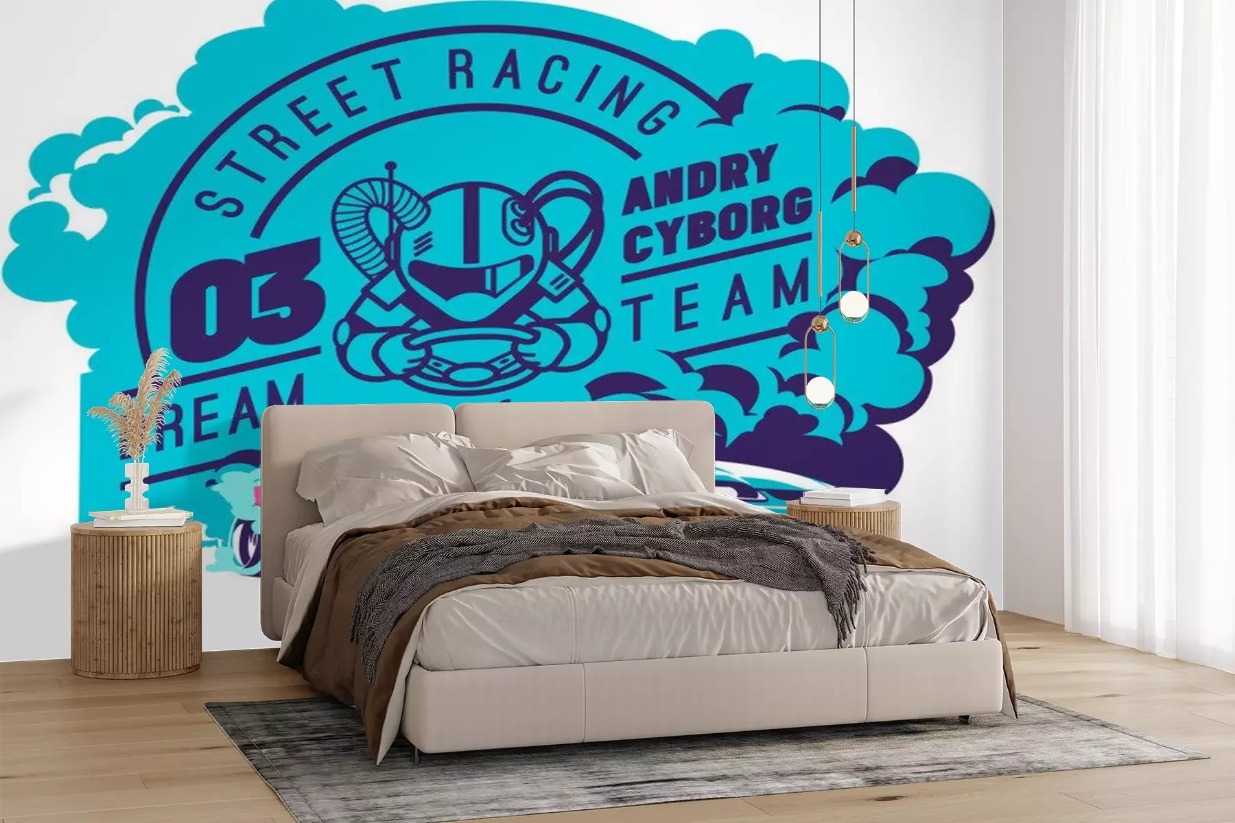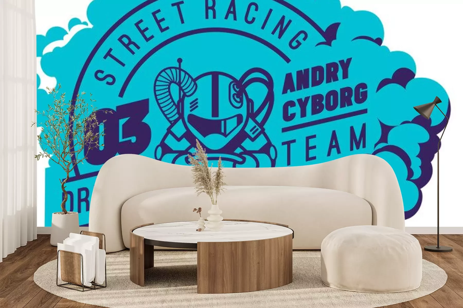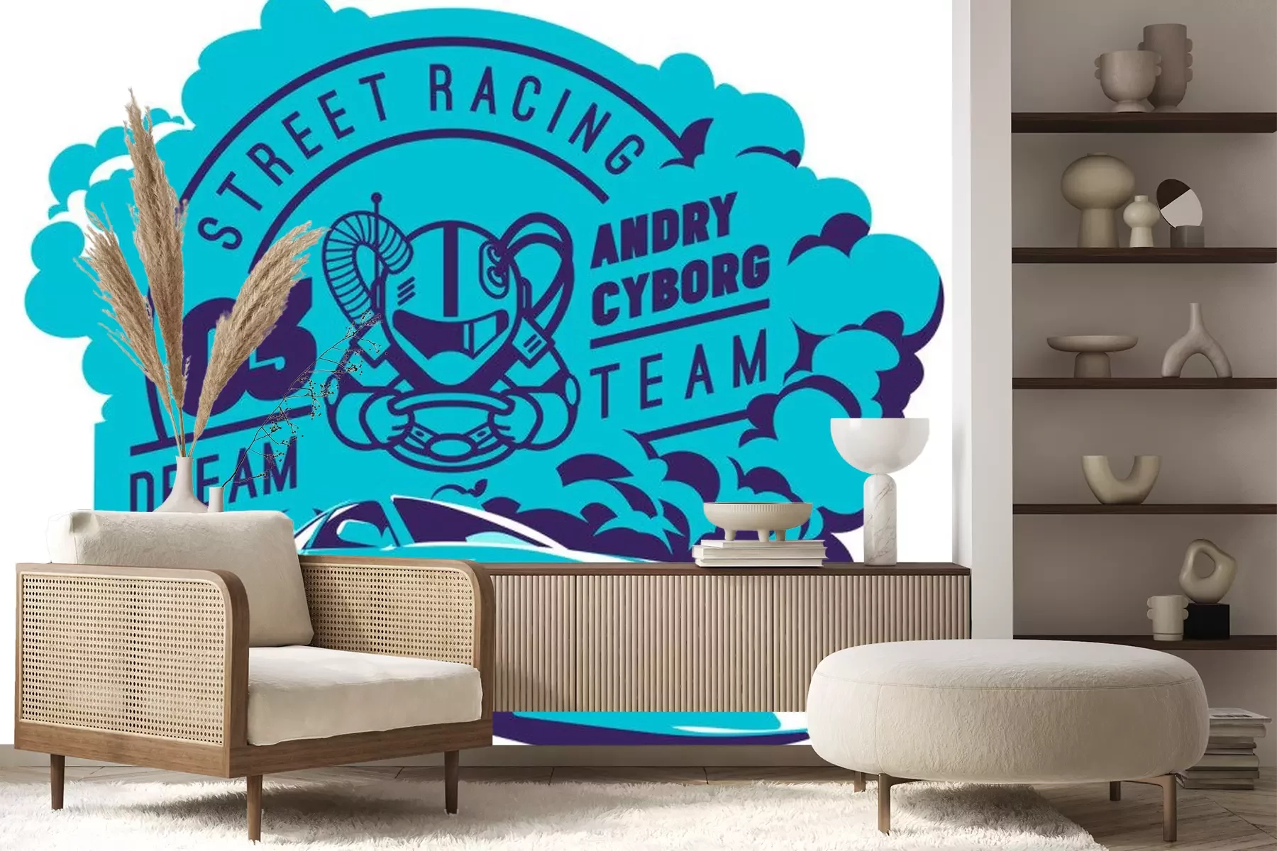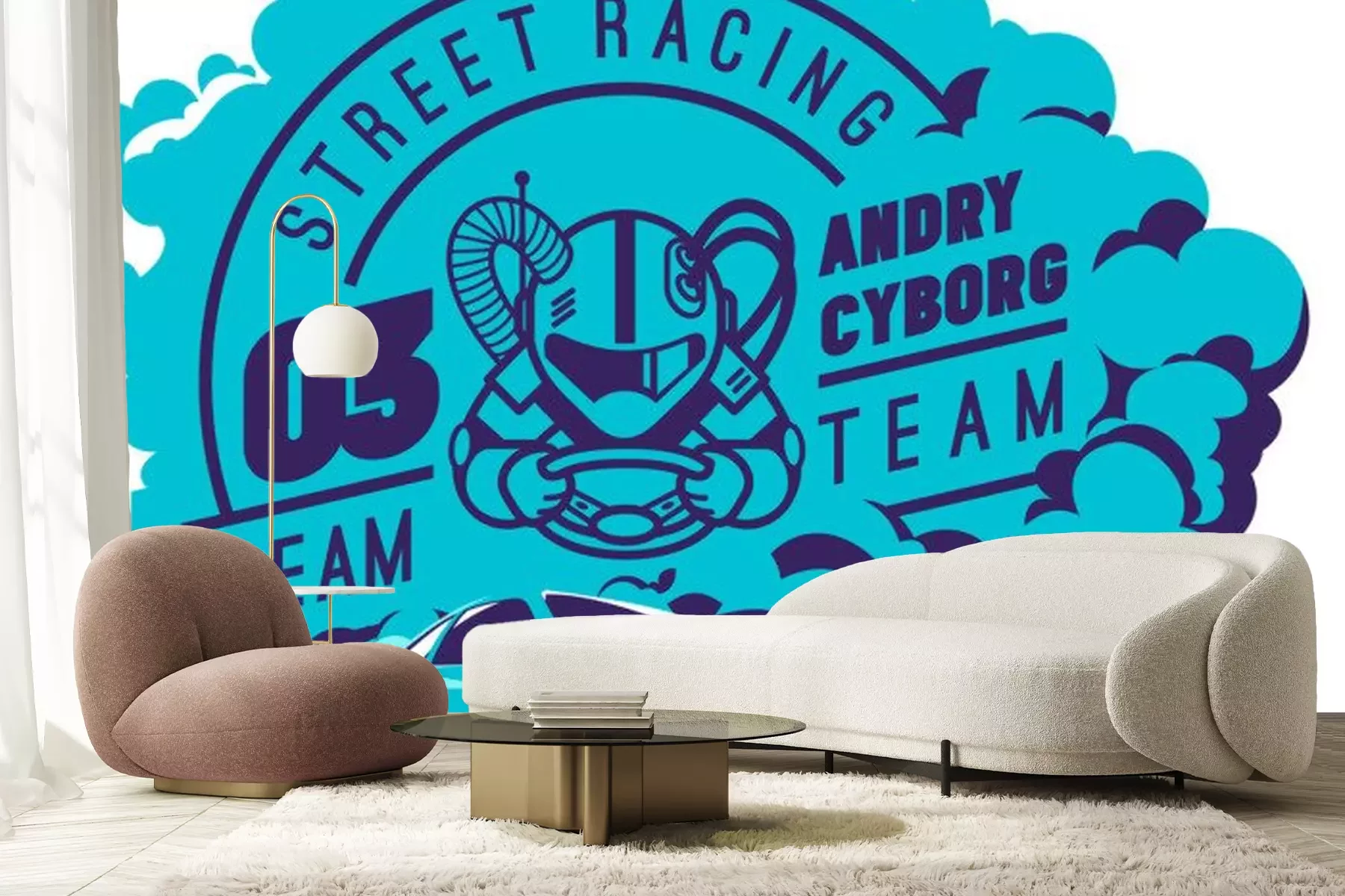 Sticker Blaue Rennsportgrafik mit Sportwagen