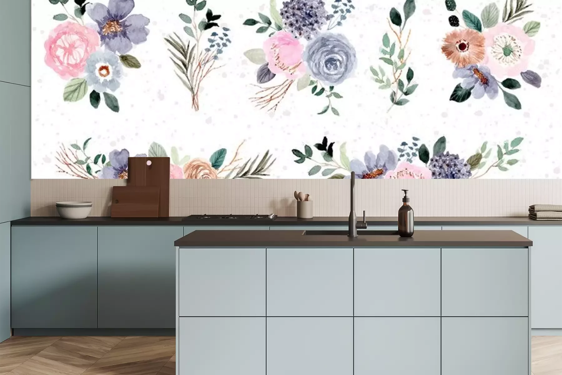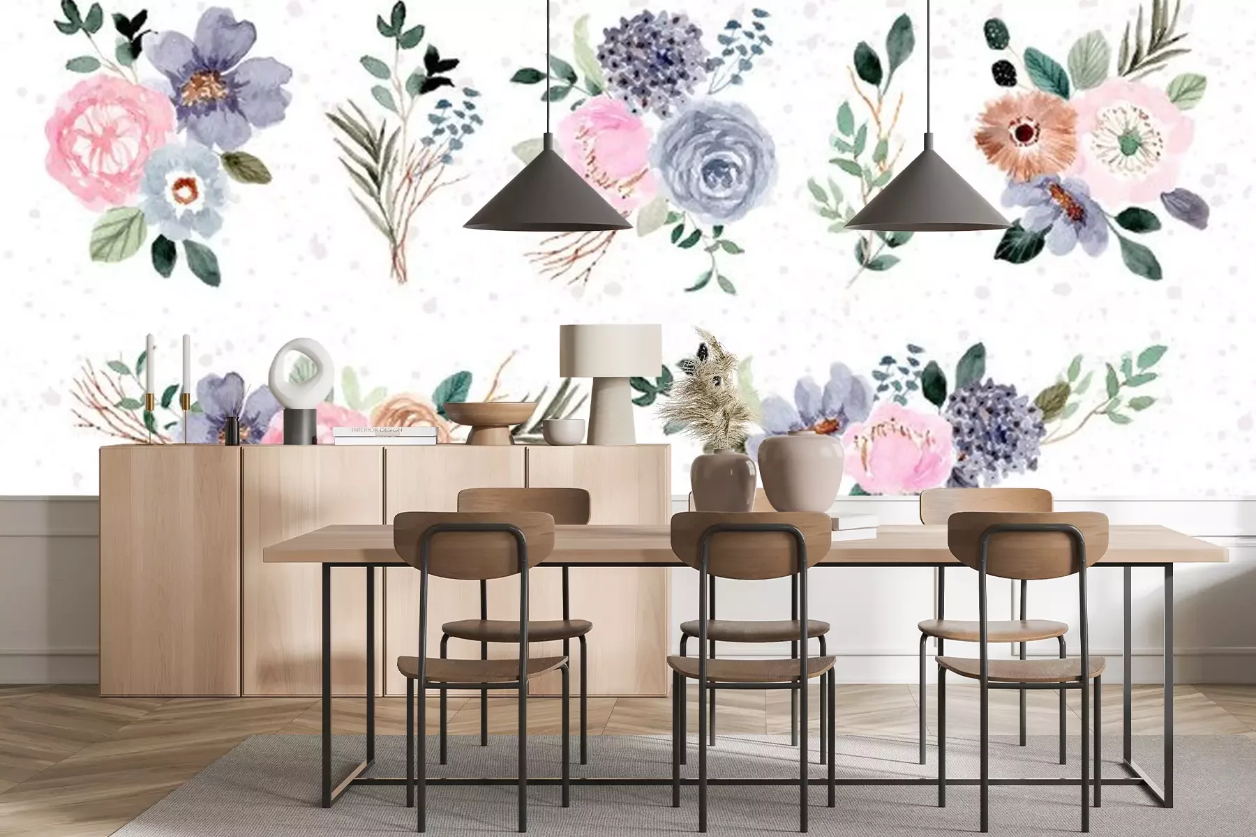 Sticker Blaue-rosa subtile Blumenillustrationen