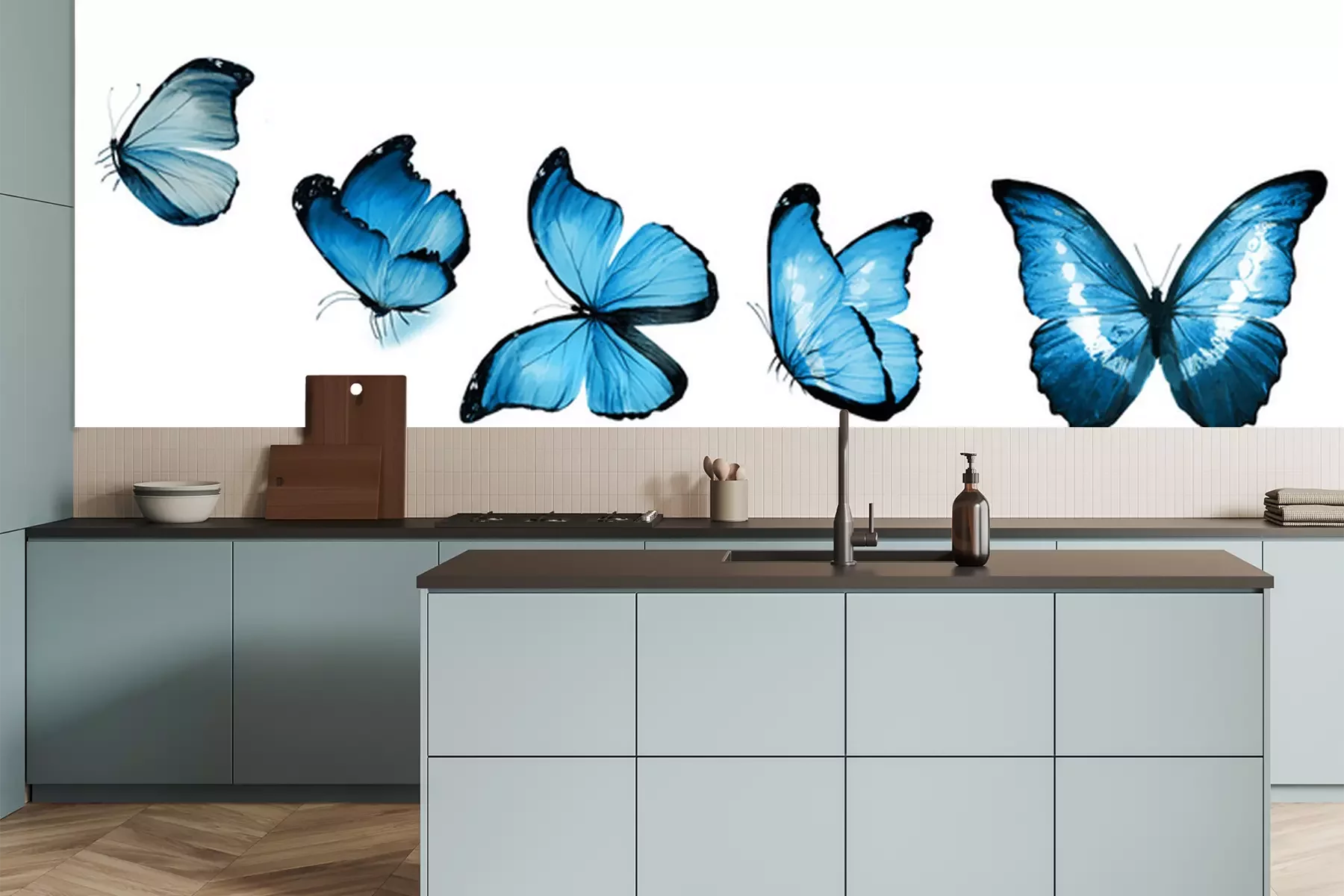 Sticker Blauer Schmetterling in verschiedenen Positionen aufgenommen