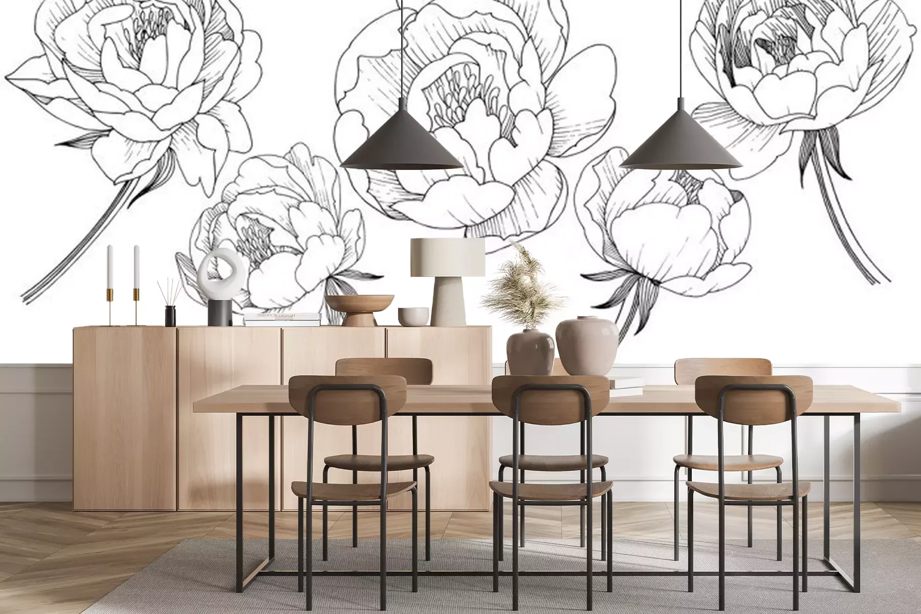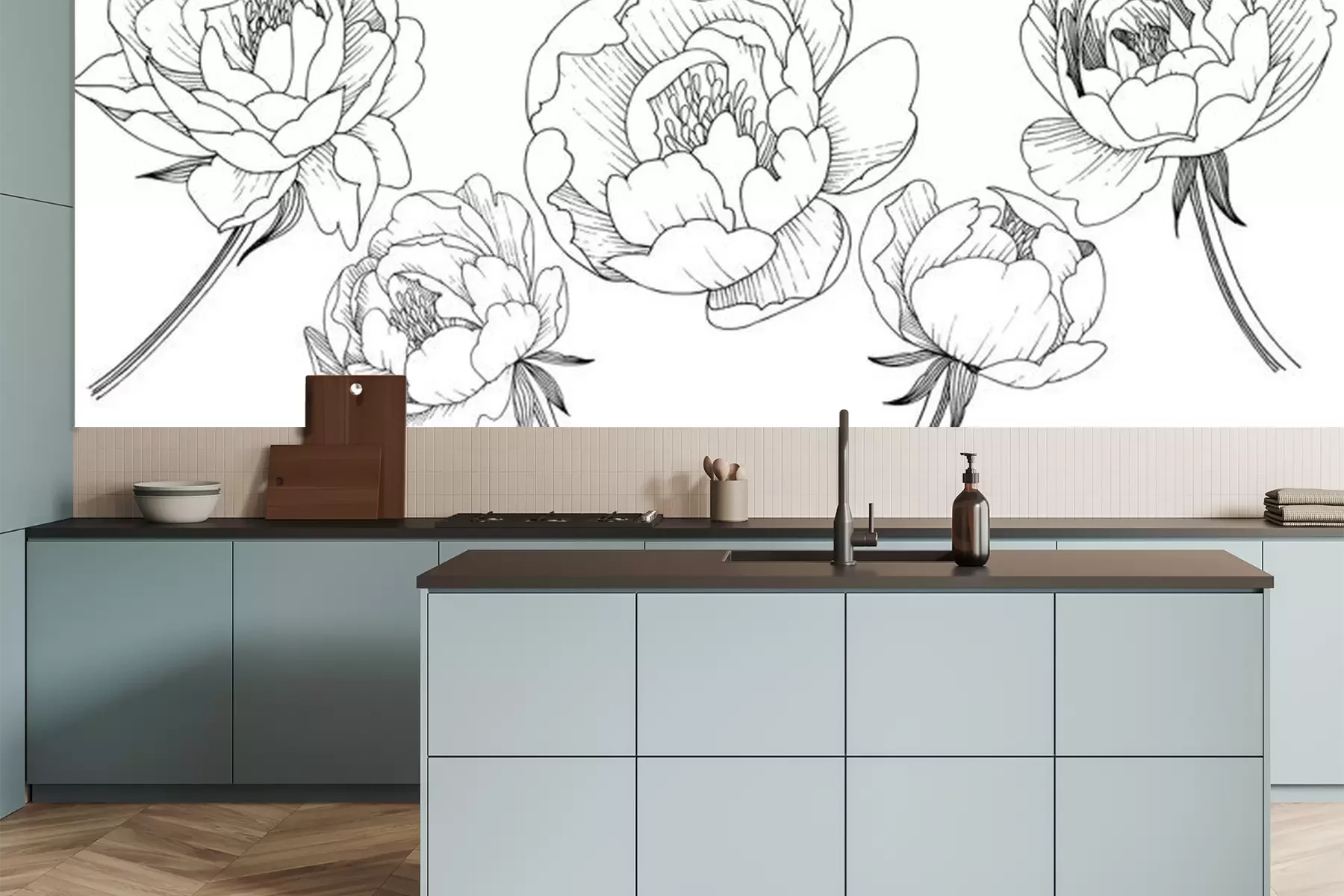 Sticker Blumen an langen Stielen schwarz-weiß Skizzen