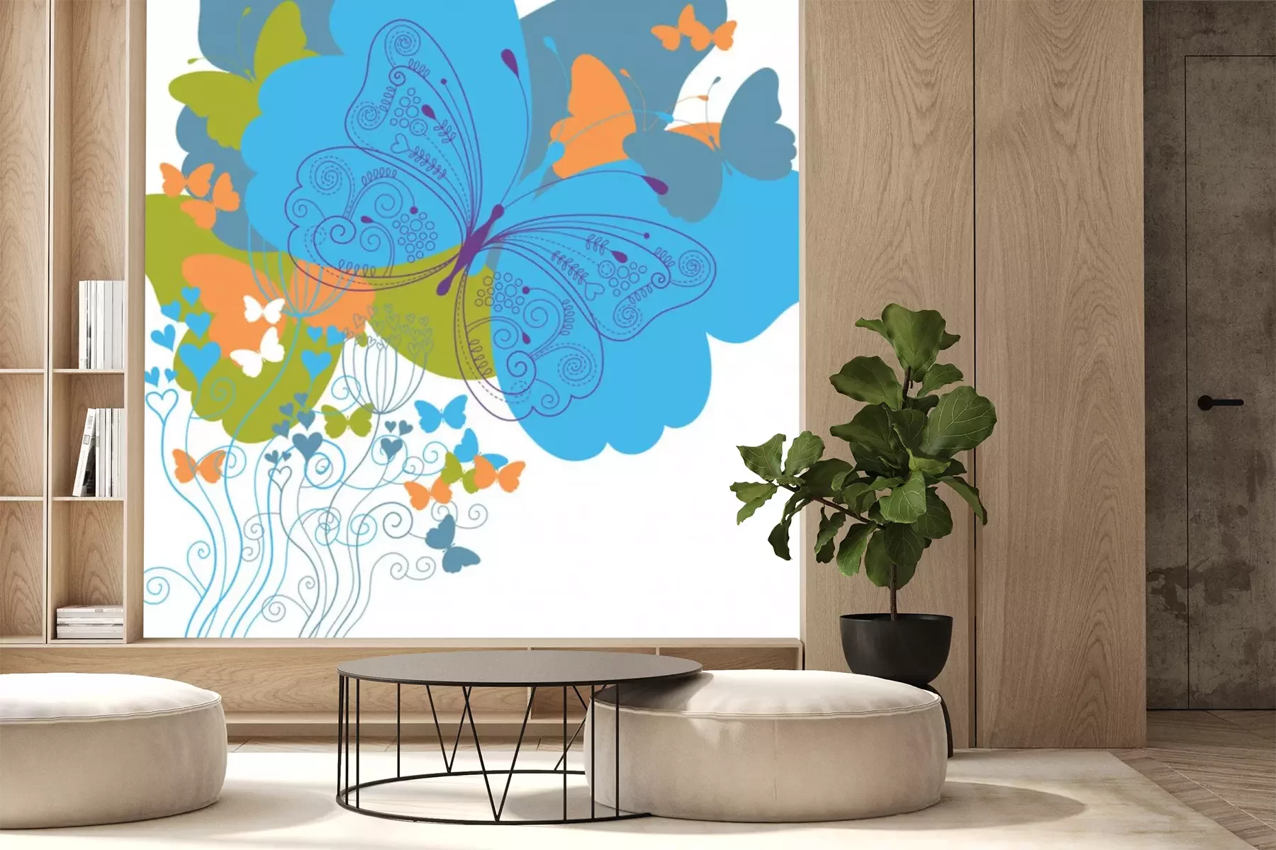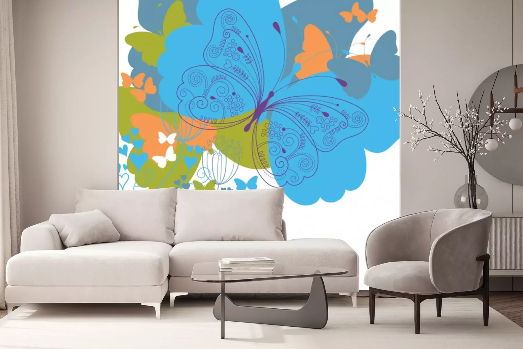 Sticker Blumen und große Schmetterlinge
