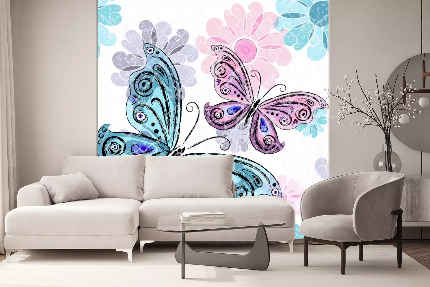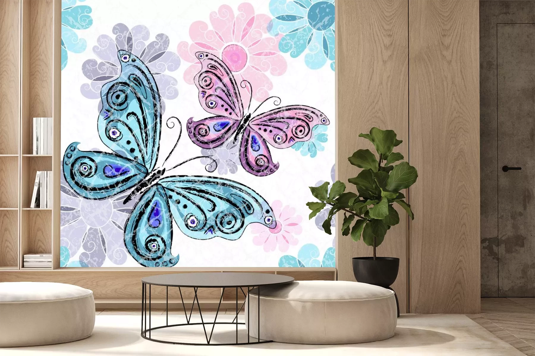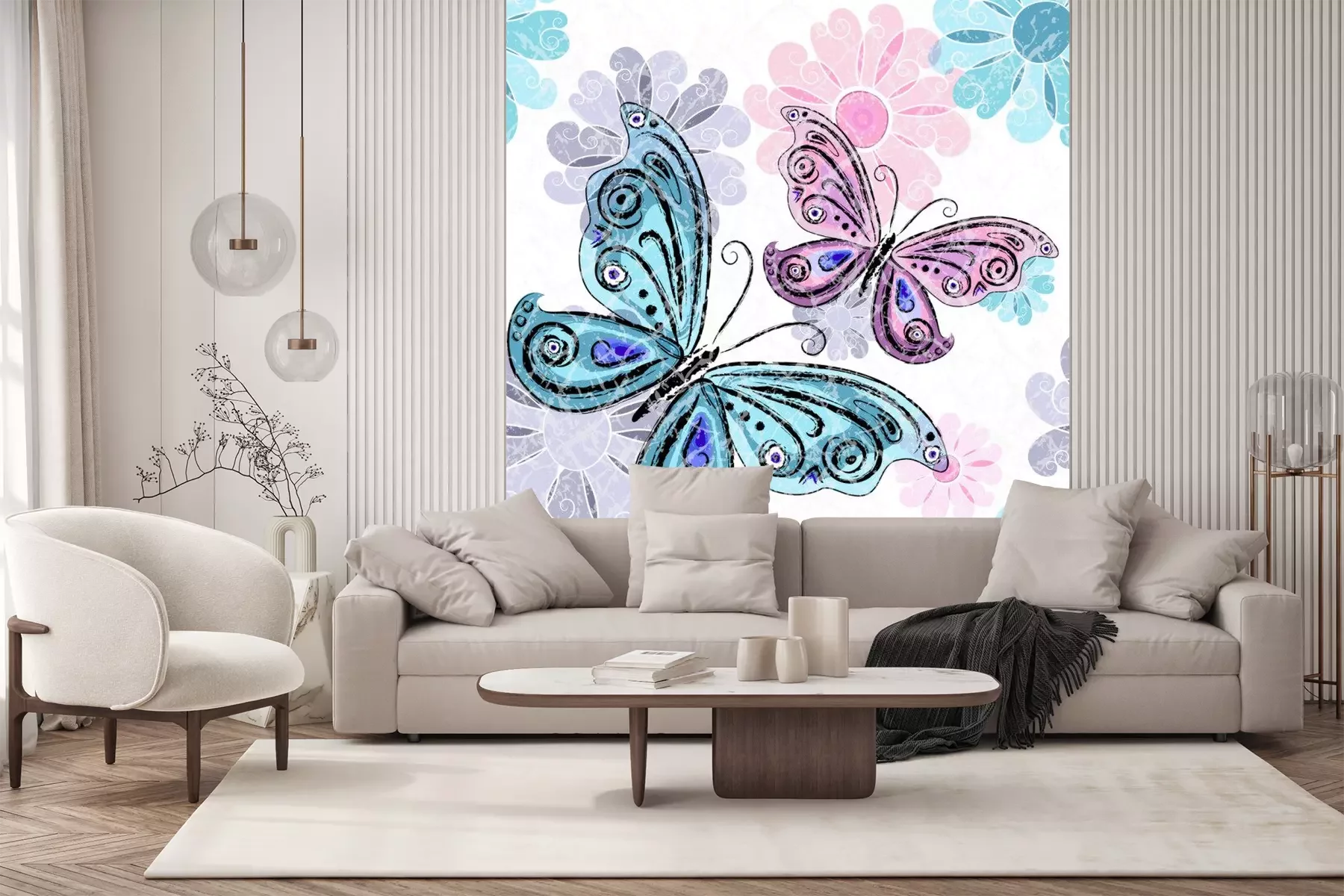 Sticker Blumen und Schmetterlinge in Pastellfarben