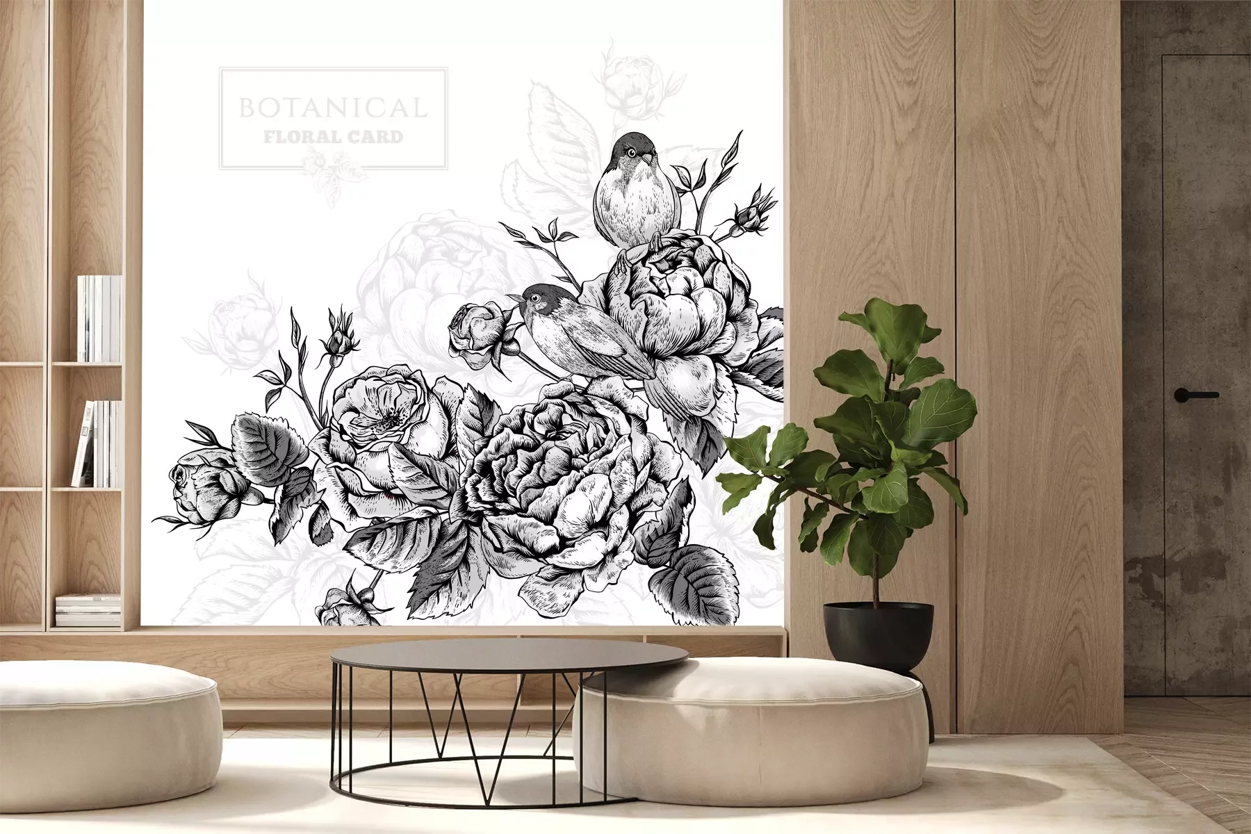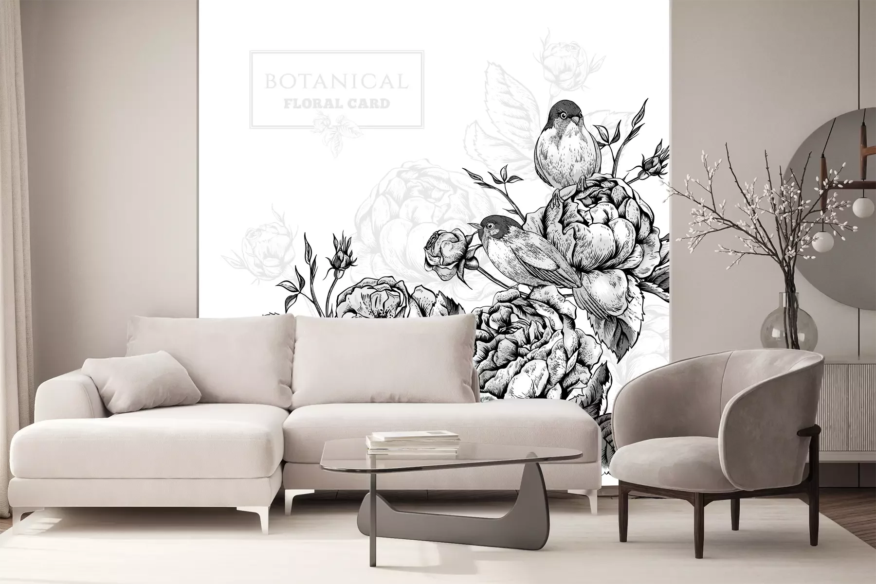 Blumen und vögel im retro-stil