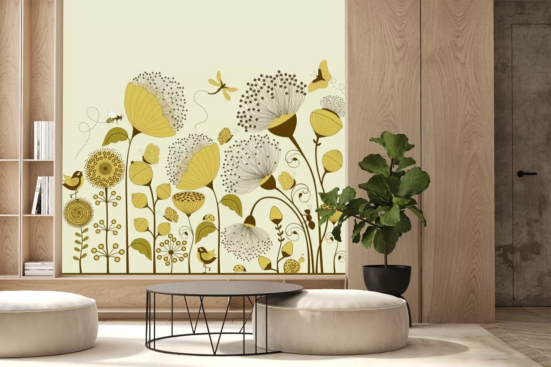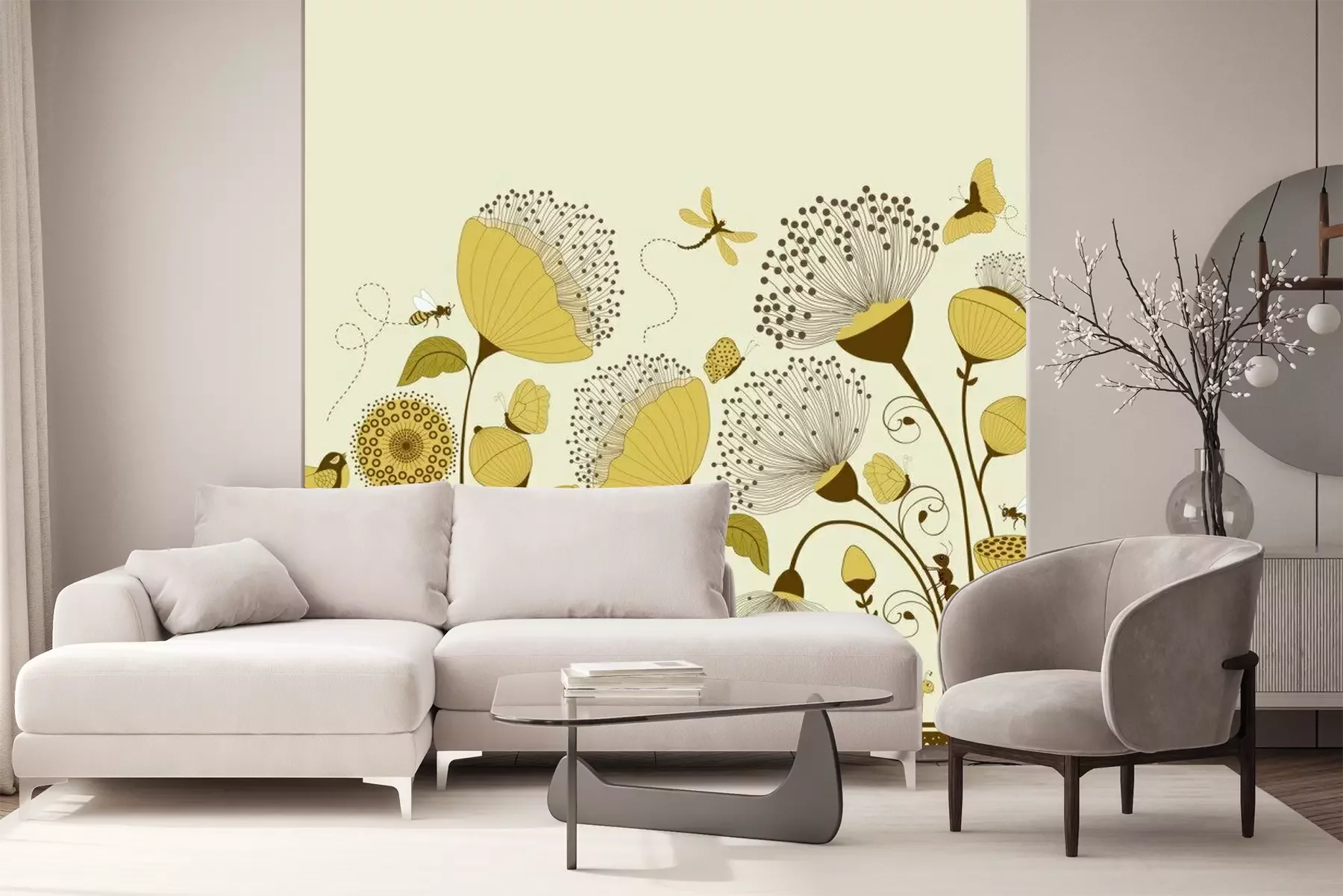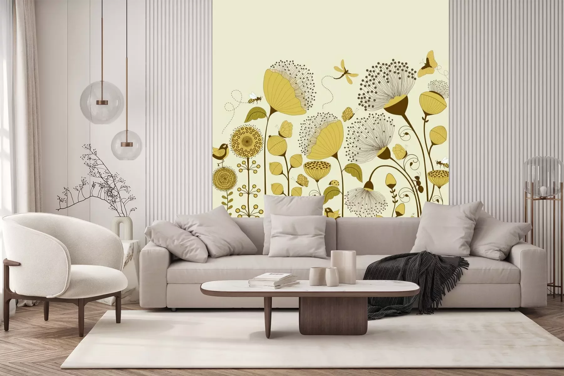 Sticker Blumenkarte mit stilisierten Blumen und Schmetterlingen