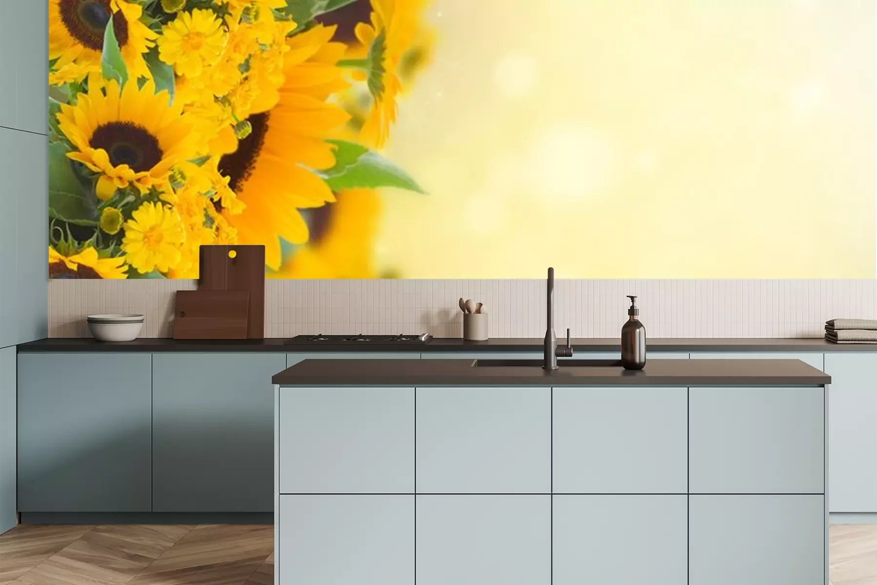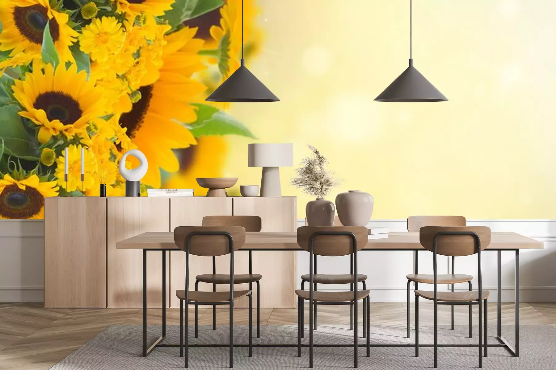 Sticker Blumenstrauß aus Sonnenblumen auf gelbem Hintergrund