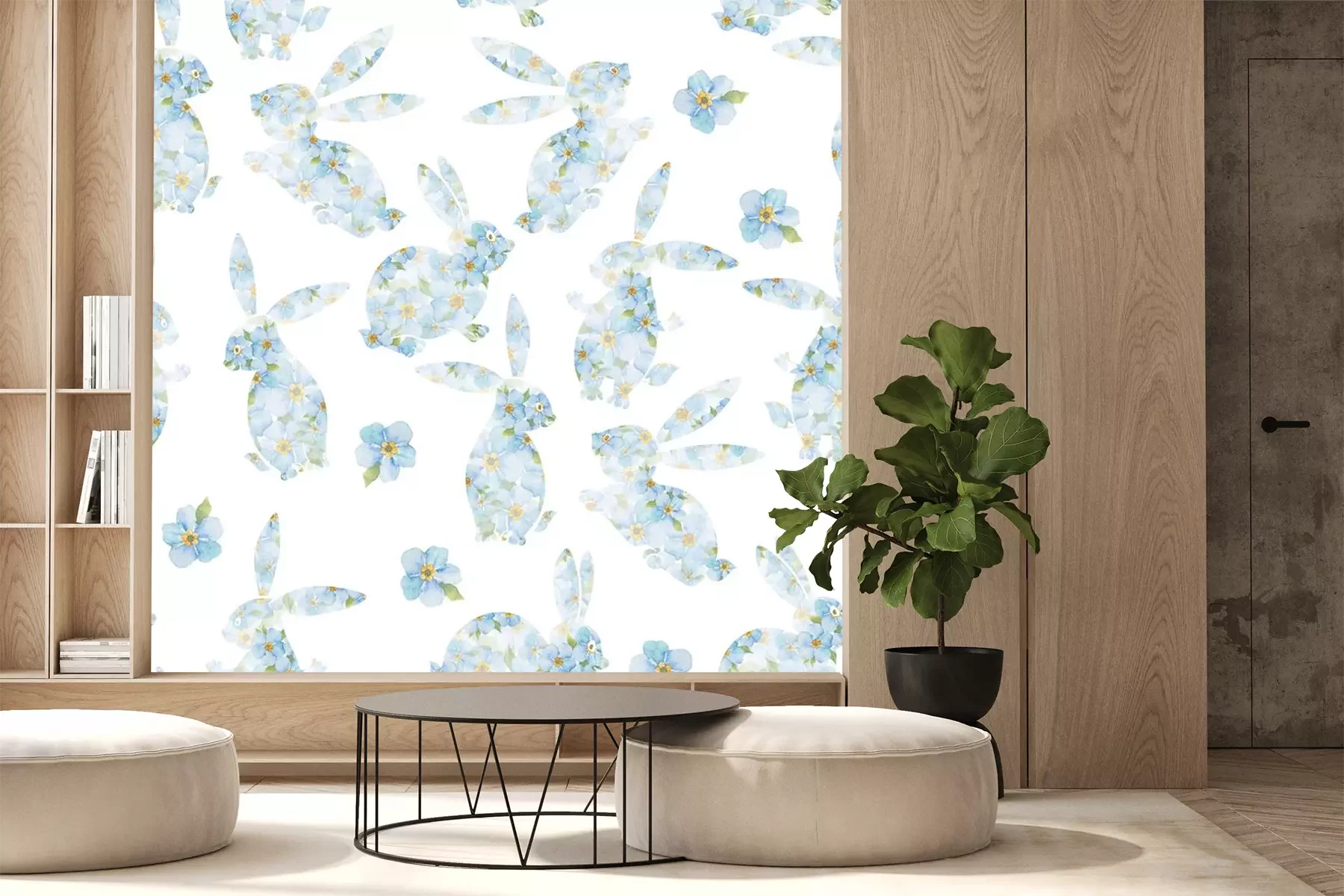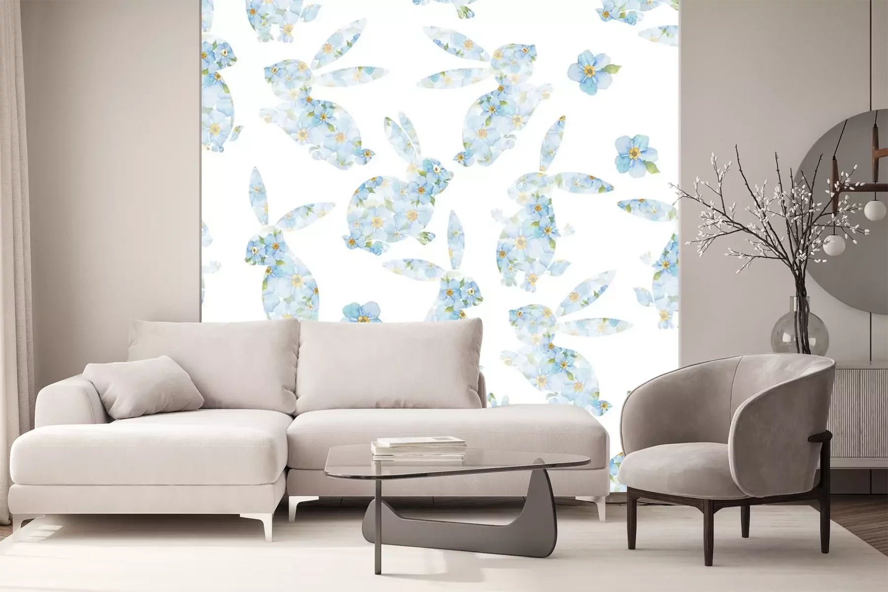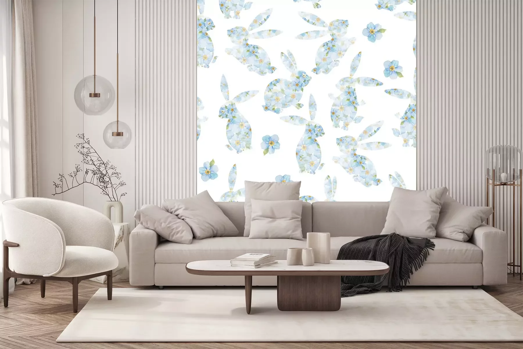 Sticker Blumige Silhouetten von Kaninchen auf weißem Hintergrund
