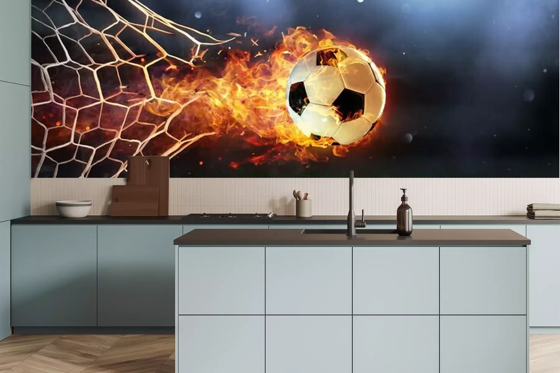 Sticker Brennender Ball durchbricht das Netz eines Fußballtores