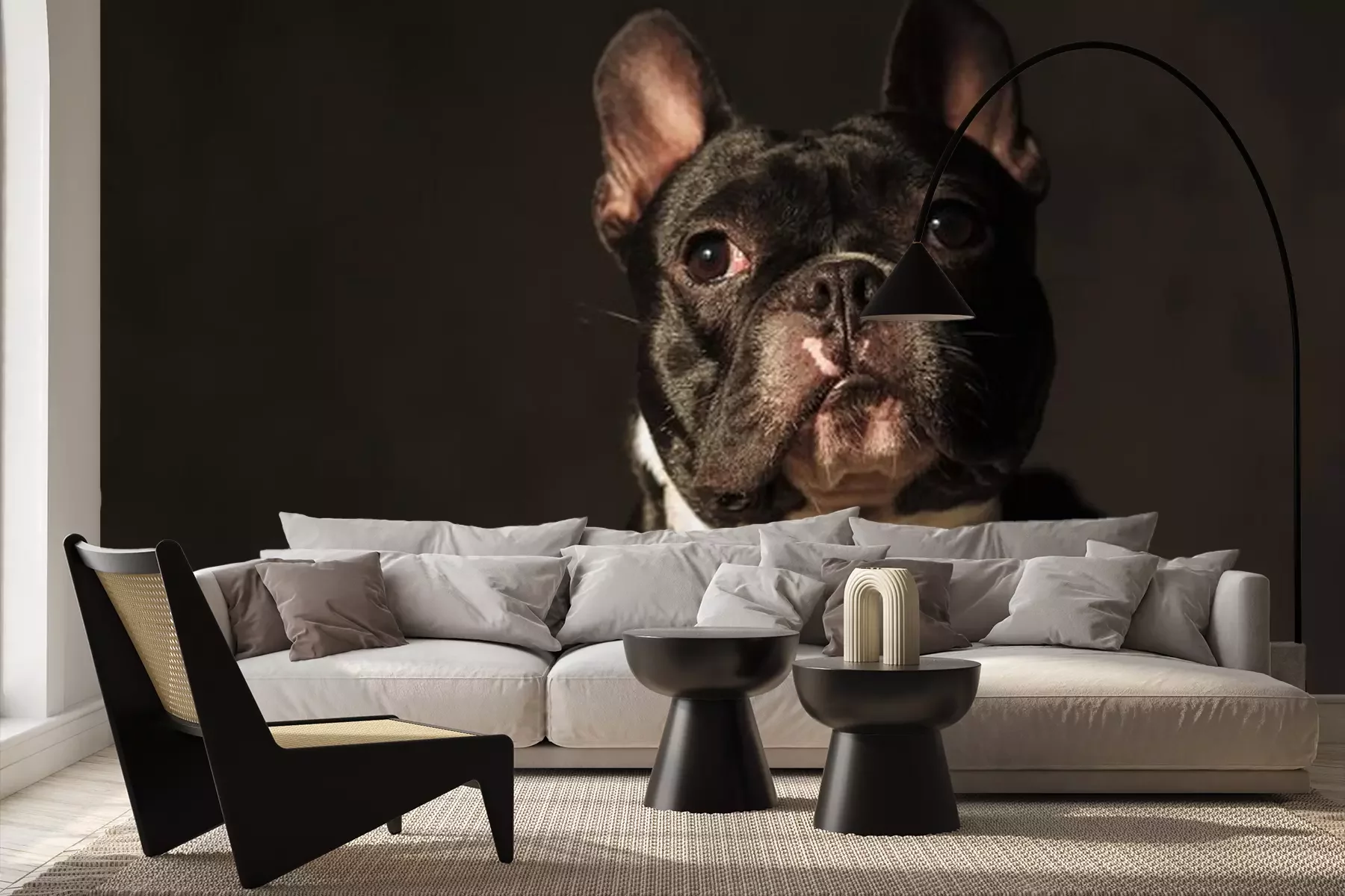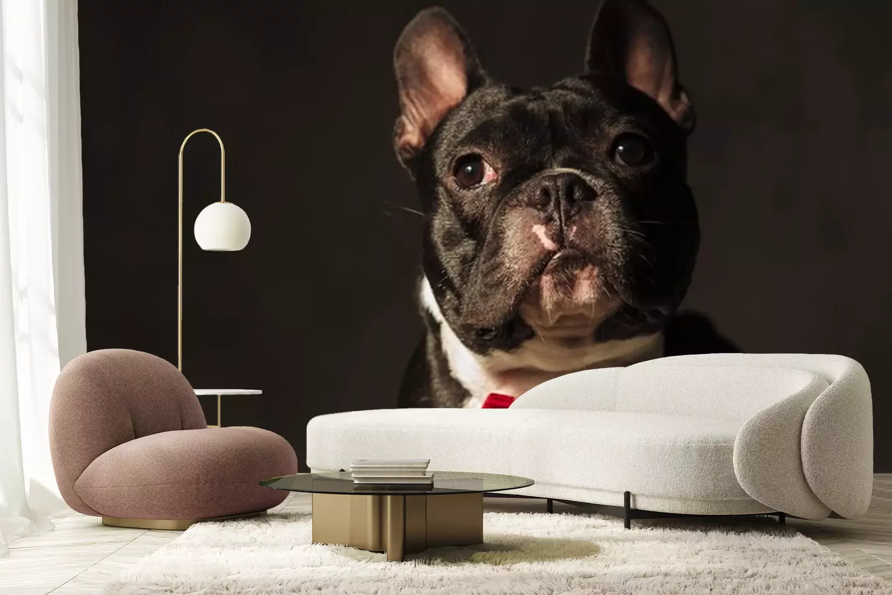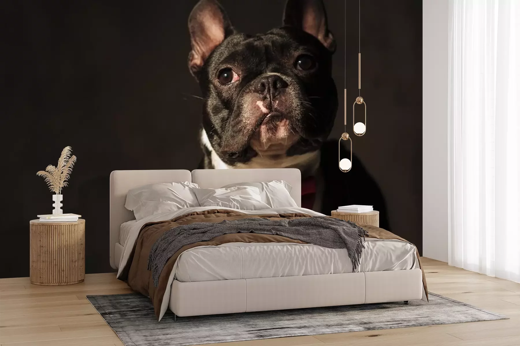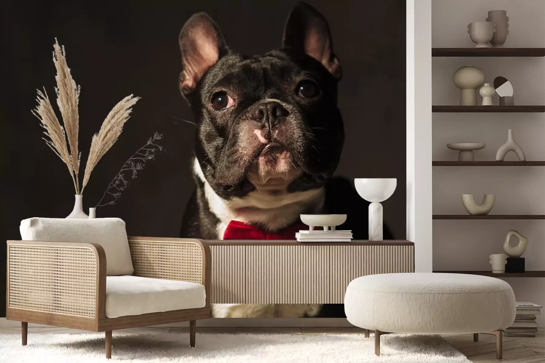 Sticker Bulldogge mit aufgerichteten Ohren in roter Fliege