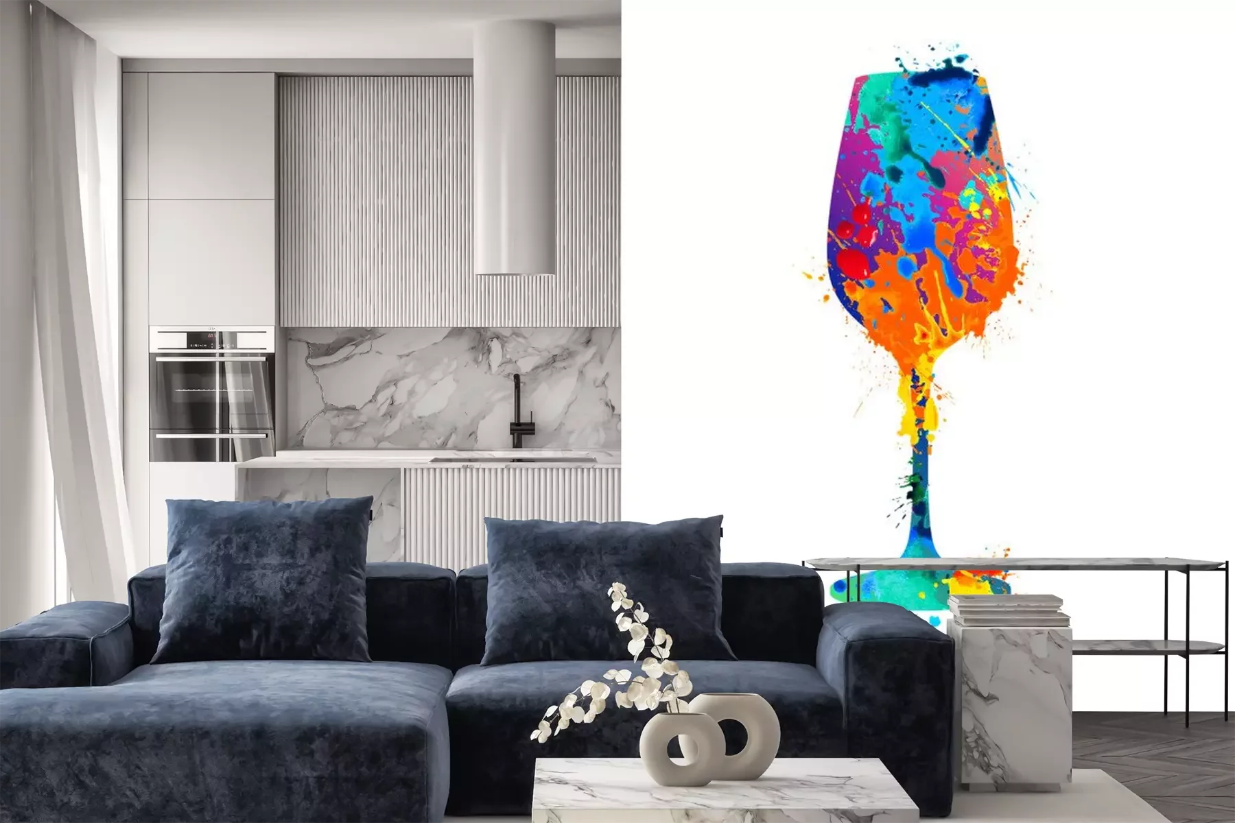 Sticker Bunte abstrakte Grafik ein Glas Wein