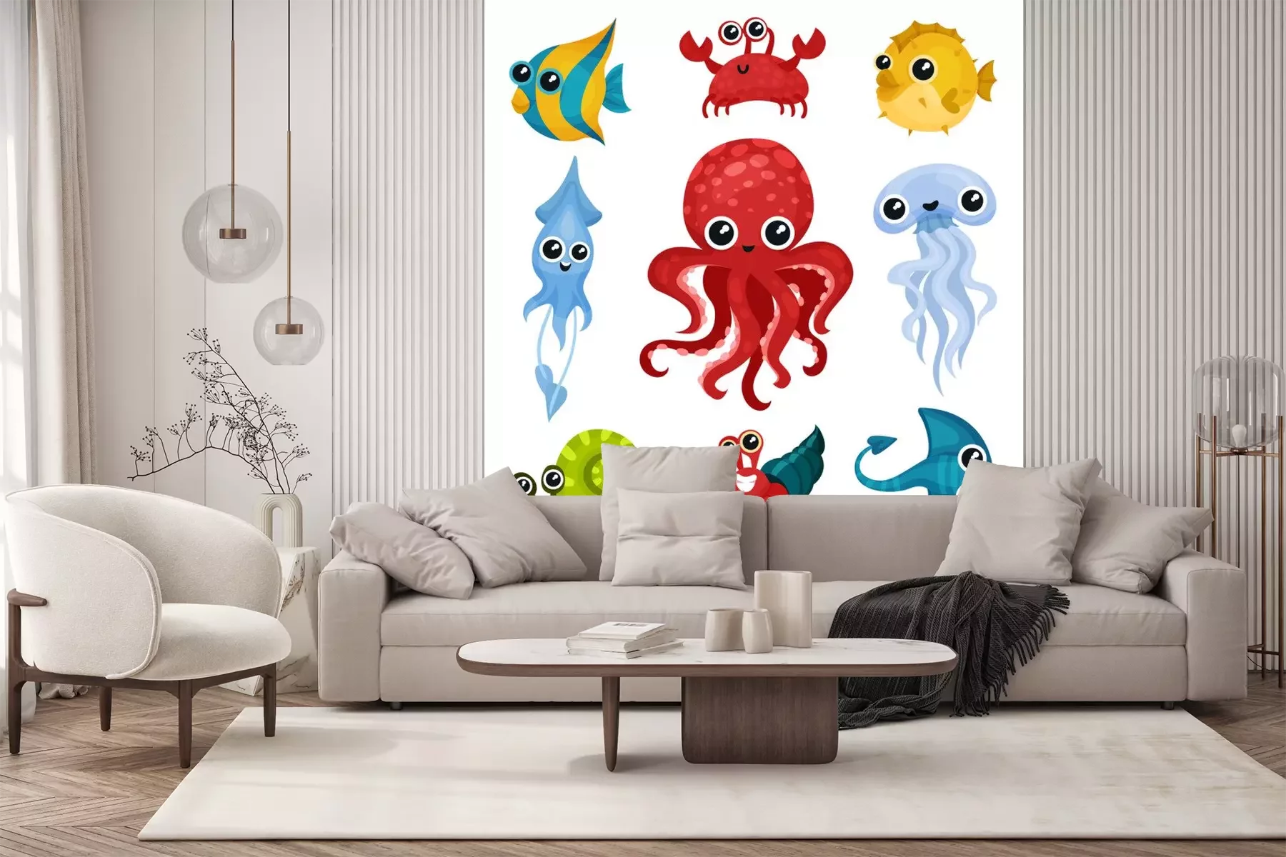 Sticker Bunte Fische mit großen Augen und Lächeln