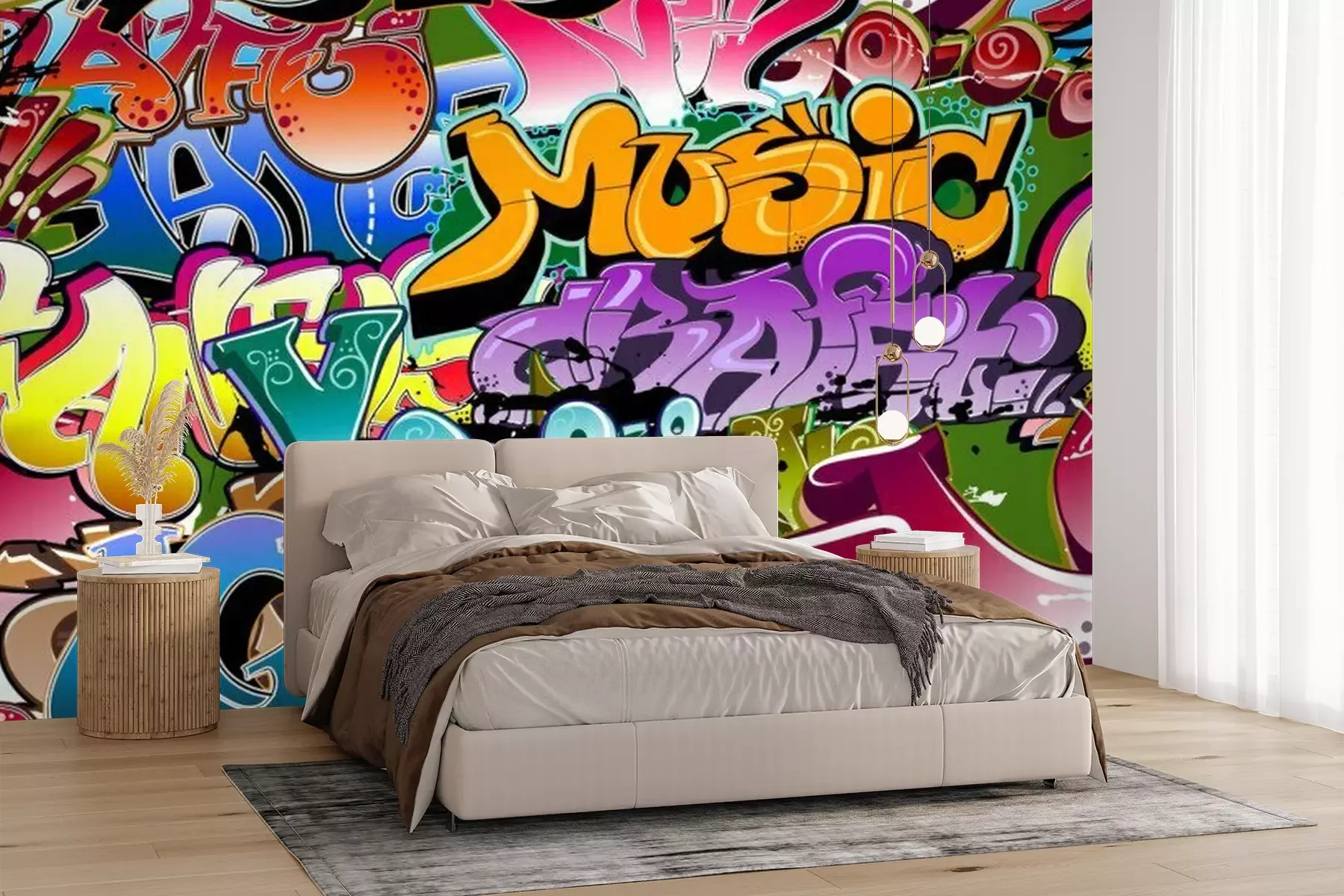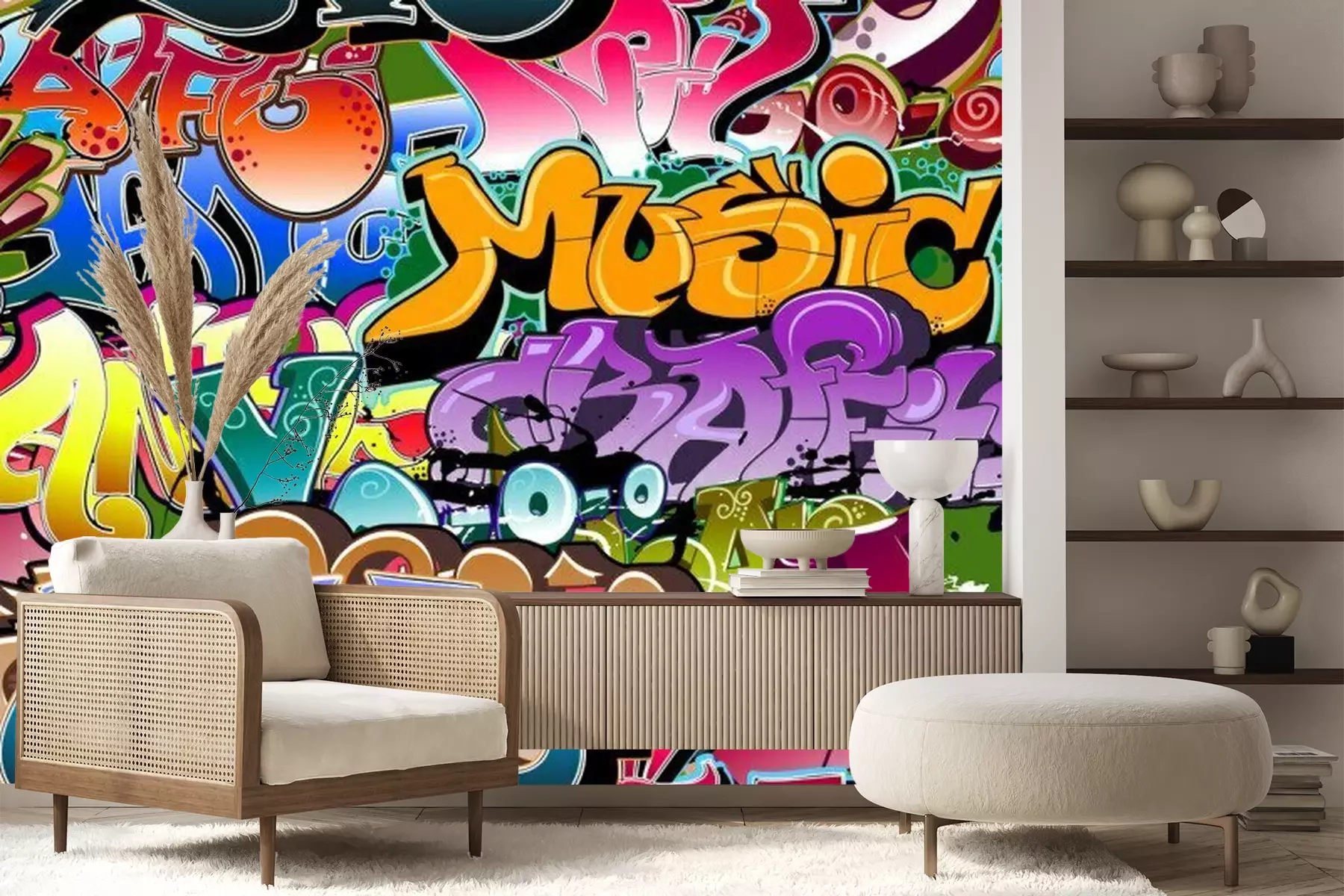 Buntes Graffiti mit Slogans und FarbeffektenFototapete