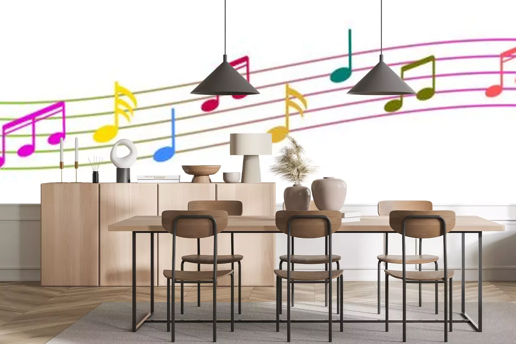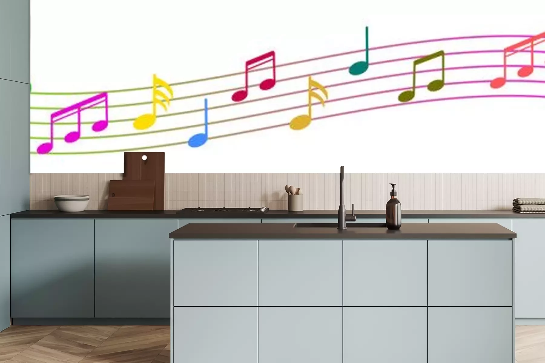 Sticker Bunte Noten auf einem Regenbogennotensystem