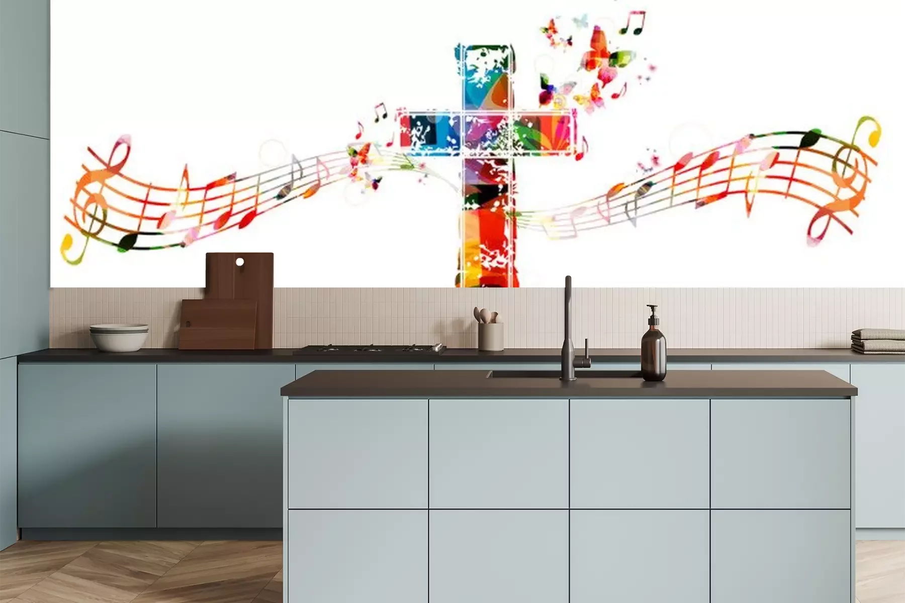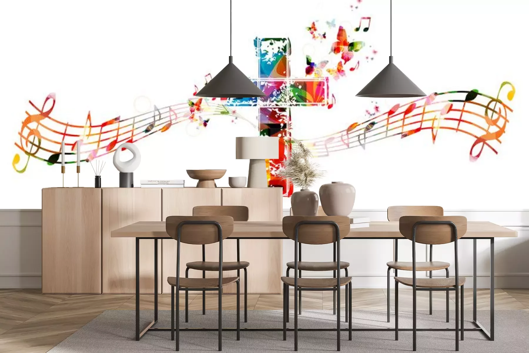 Sticker Bunte Noten Kreuz und Schmetterlinge Grafik