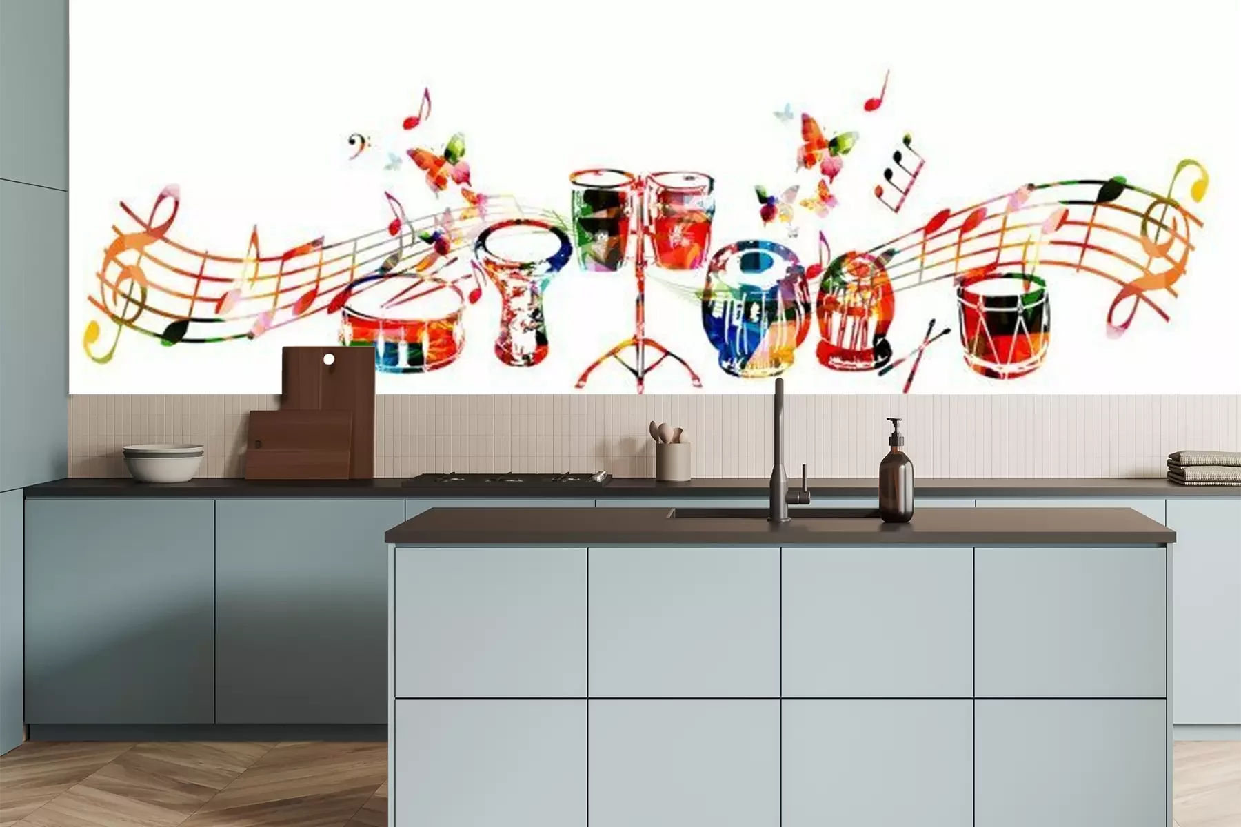 Noten und bunte InstrumenteProblemlose Lieferung durch vertrauenswürdige Spediteure