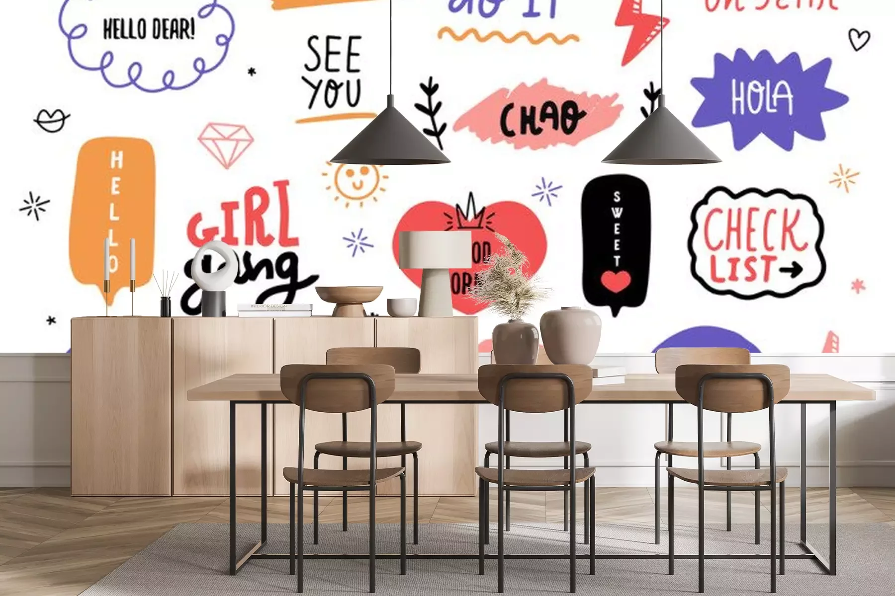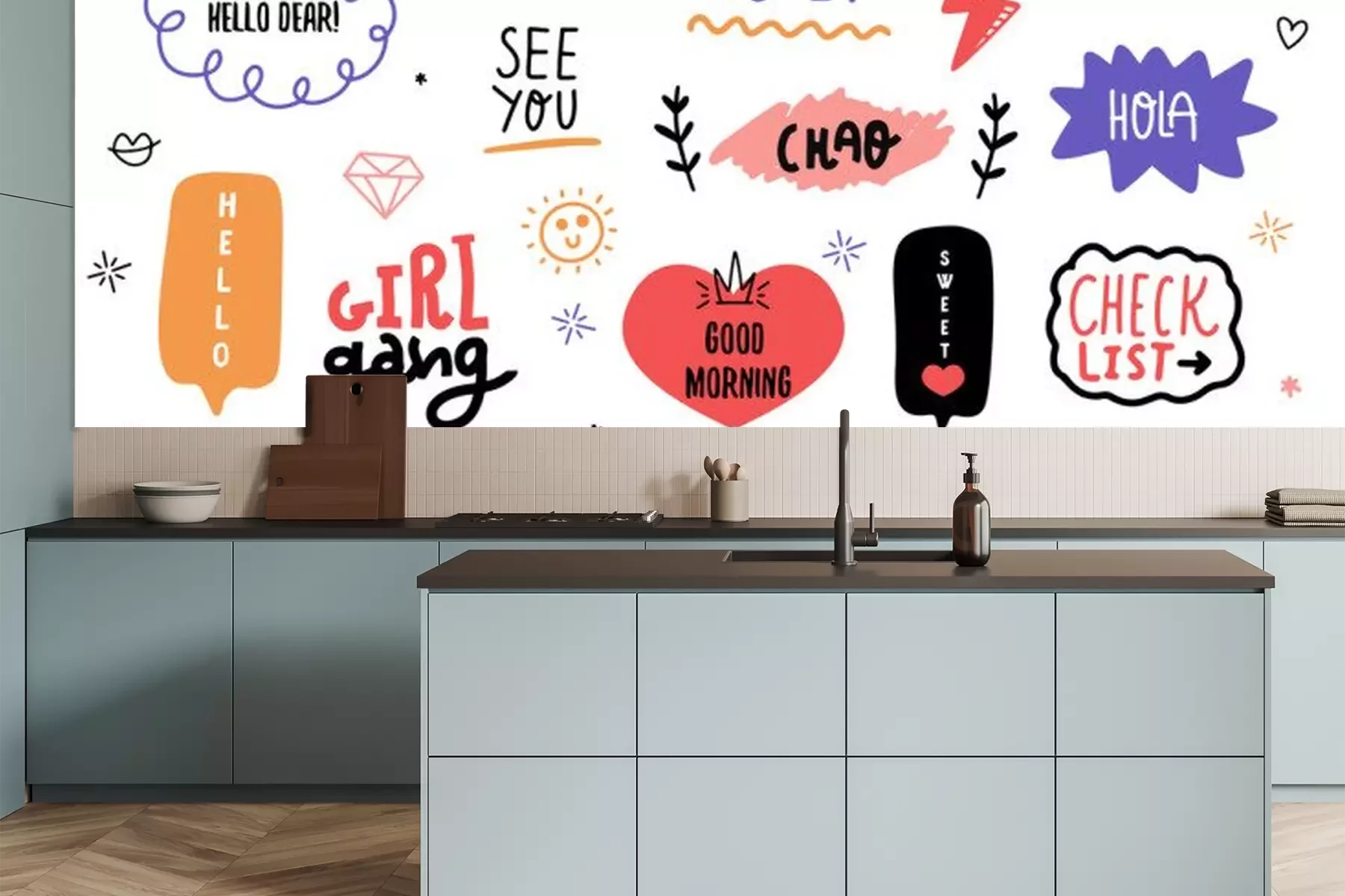 Sticker Bunte Slogans zwischen fröhlichen Grafiken