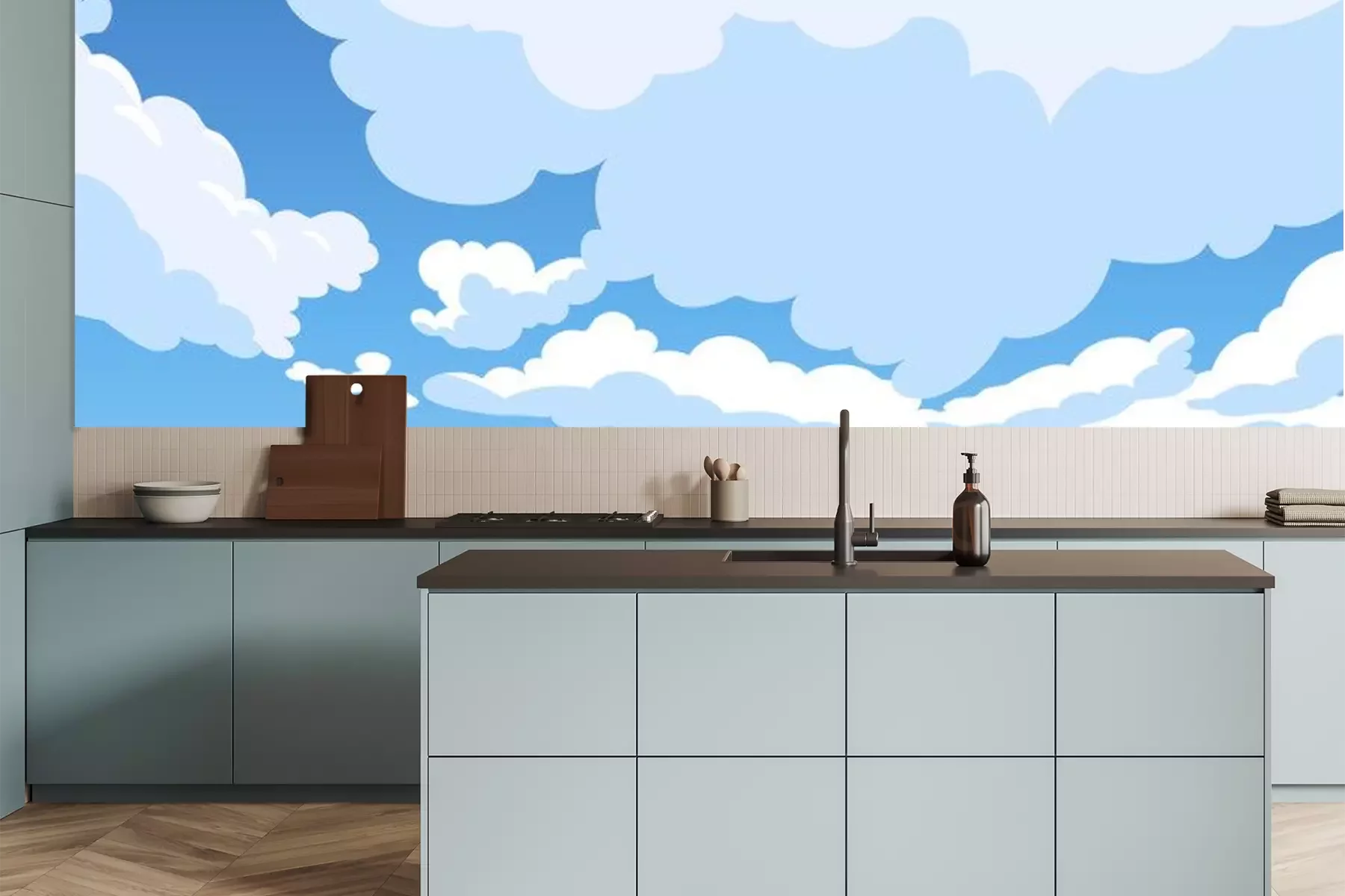 Sticker Cartoon-Wolken an einem blauen Himmel