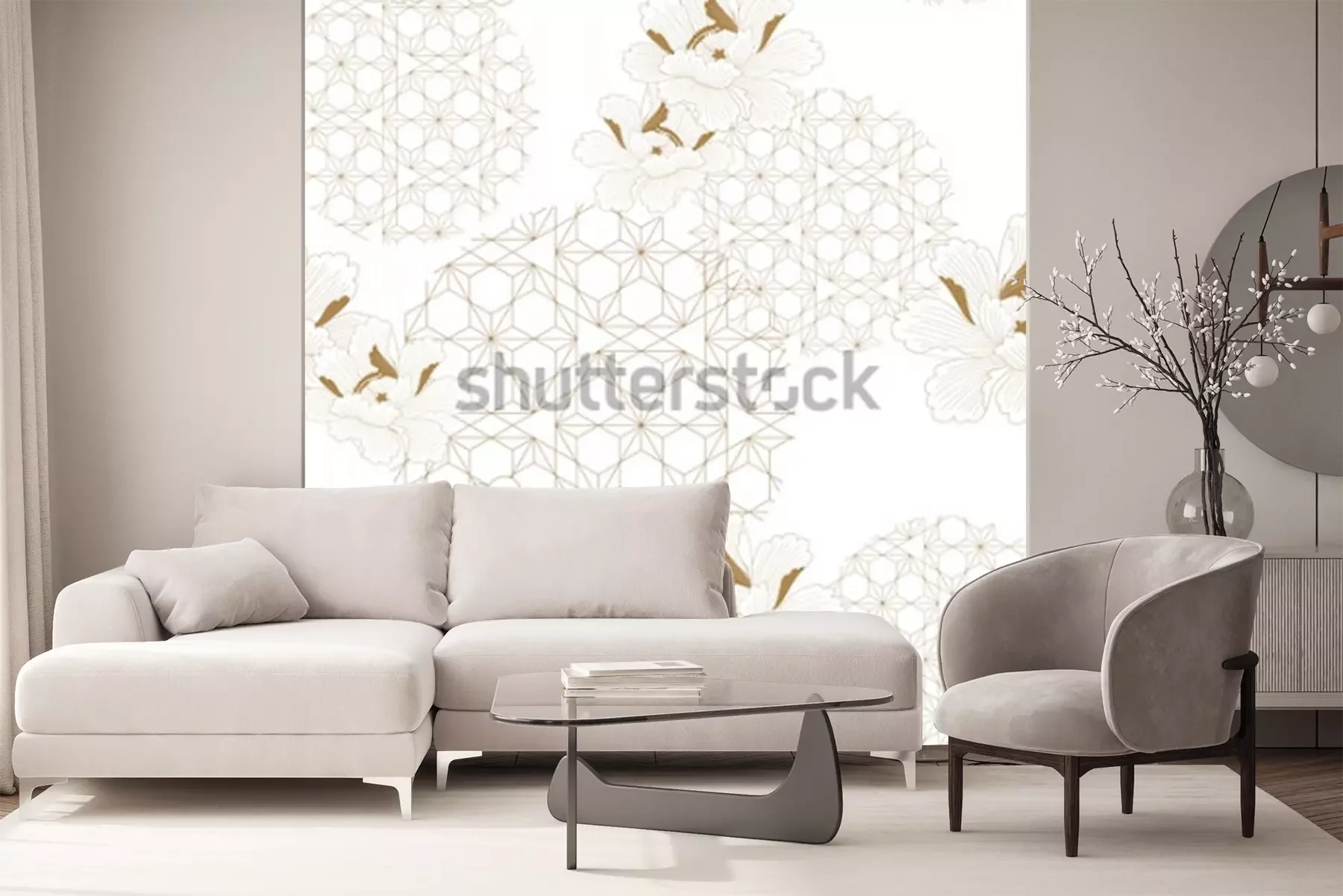 Sticker Chinesischer Muster nahtloser Vektor. Gold floral mit japanischem geometrischem Elementhintergrund für Gewebe, Packpapier, Hintergrund, Schablone, Deckblattdesign.