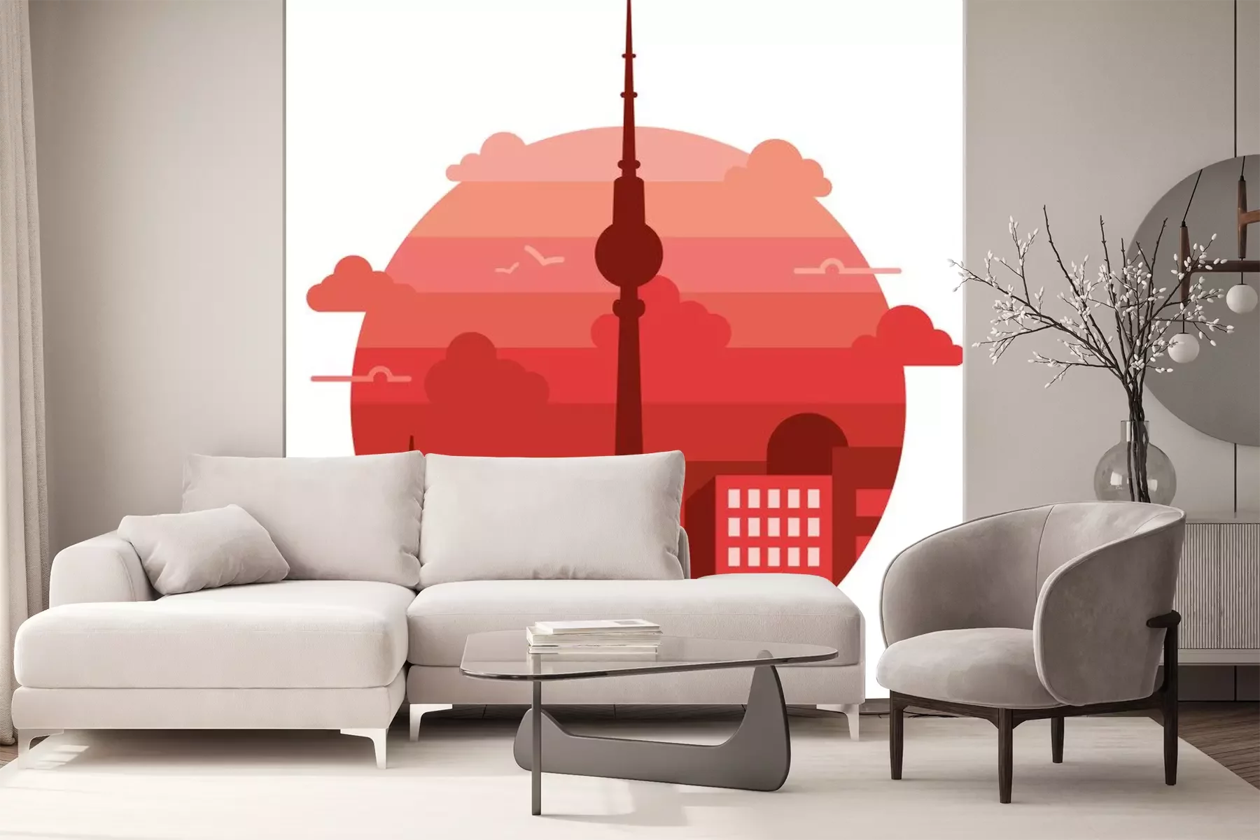 Sticker City view. Vector flat design illustration. Abstract skyline of city