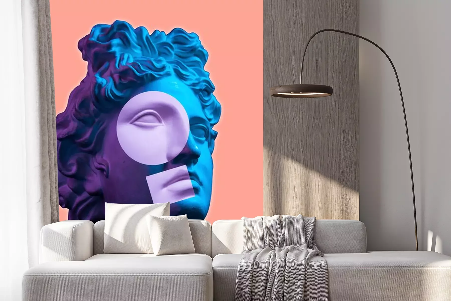Sticker Contemporary art concept collage with antique statue head in a surreal style. Modern unusual art.