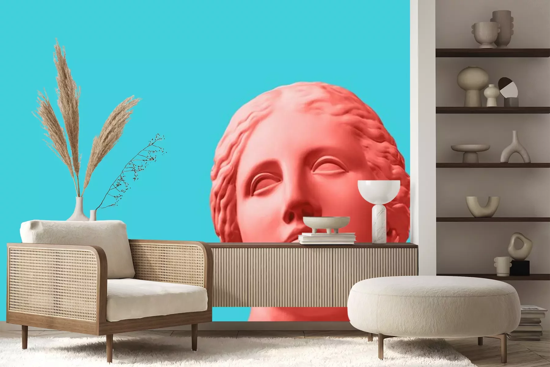 Sticker Contemporary art concept collage with antique statue Venus head in a zine culture style. Modern trendy art.