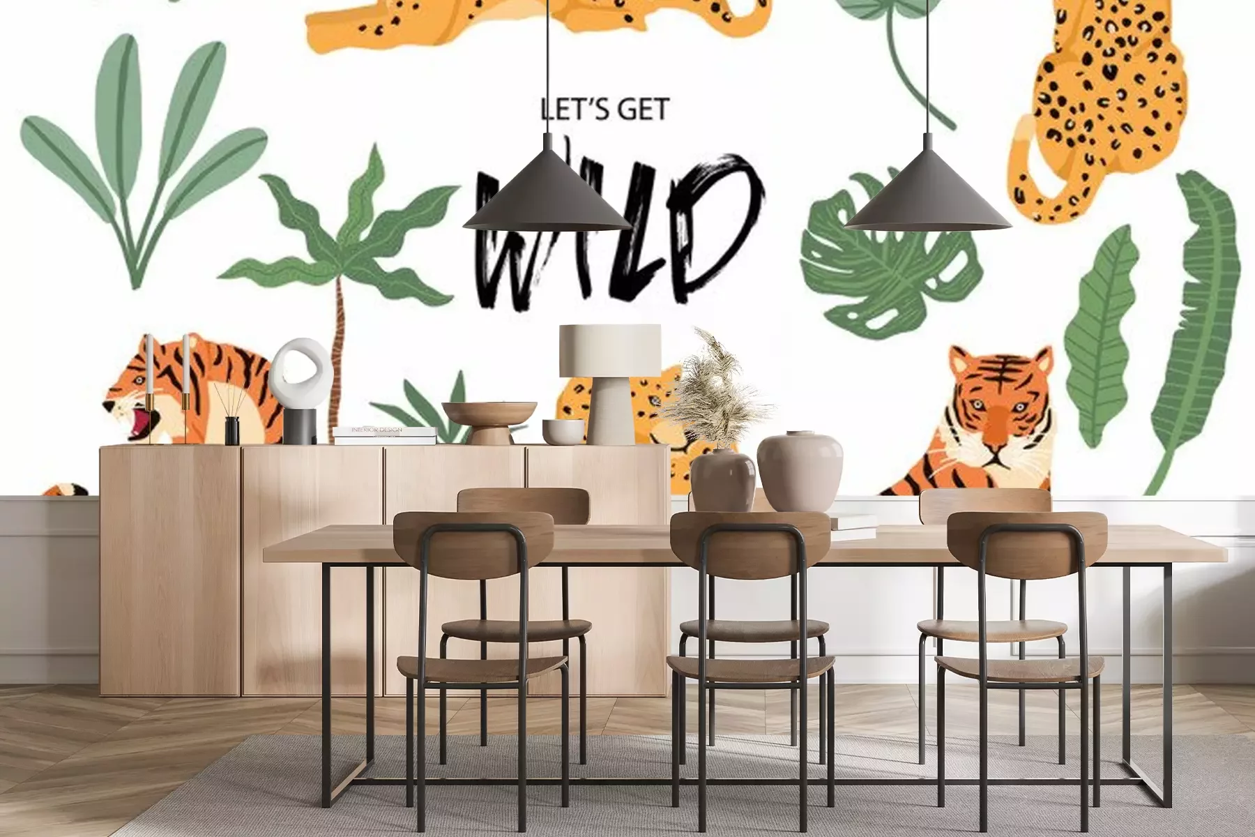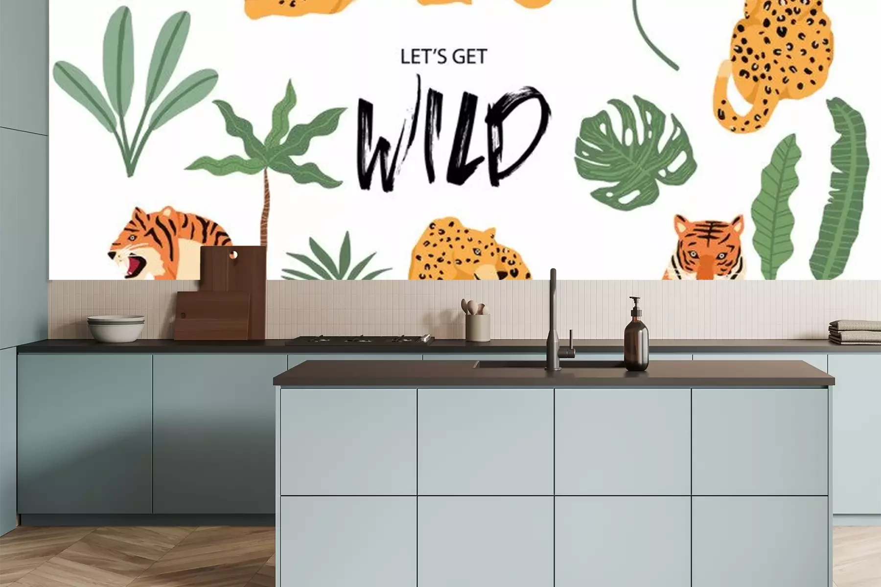 Sticker Cute animal object collection with leopard,tiger. illustration for icon,logo,sticker,printable.Include wording let's get wild