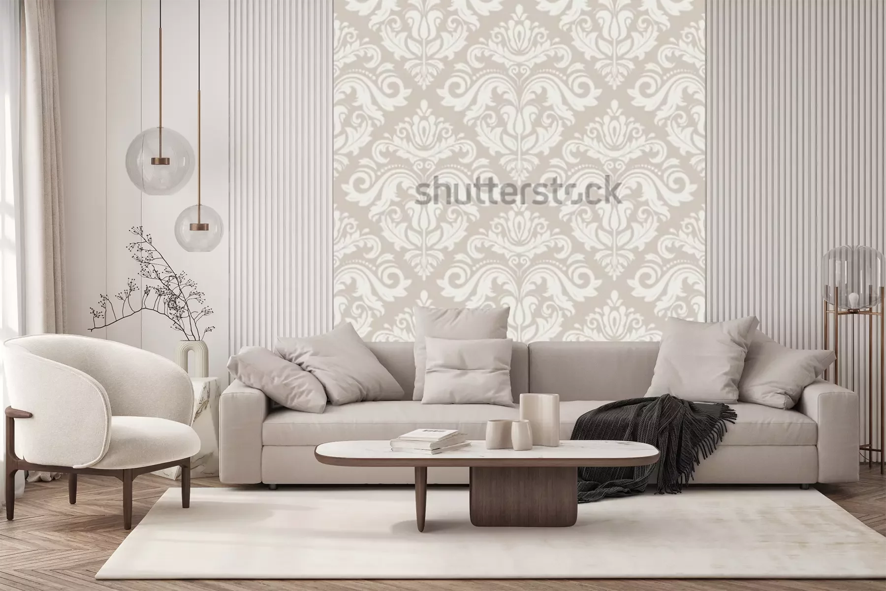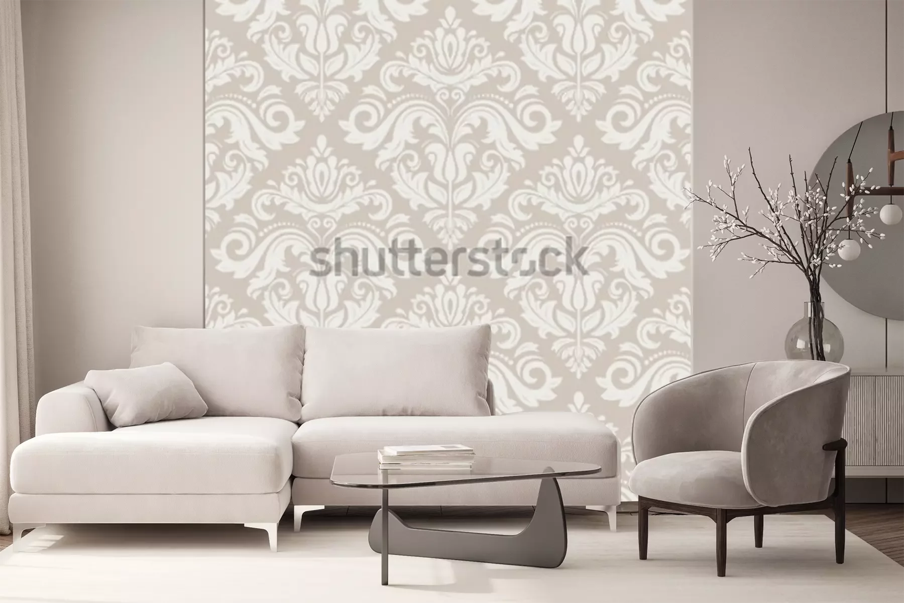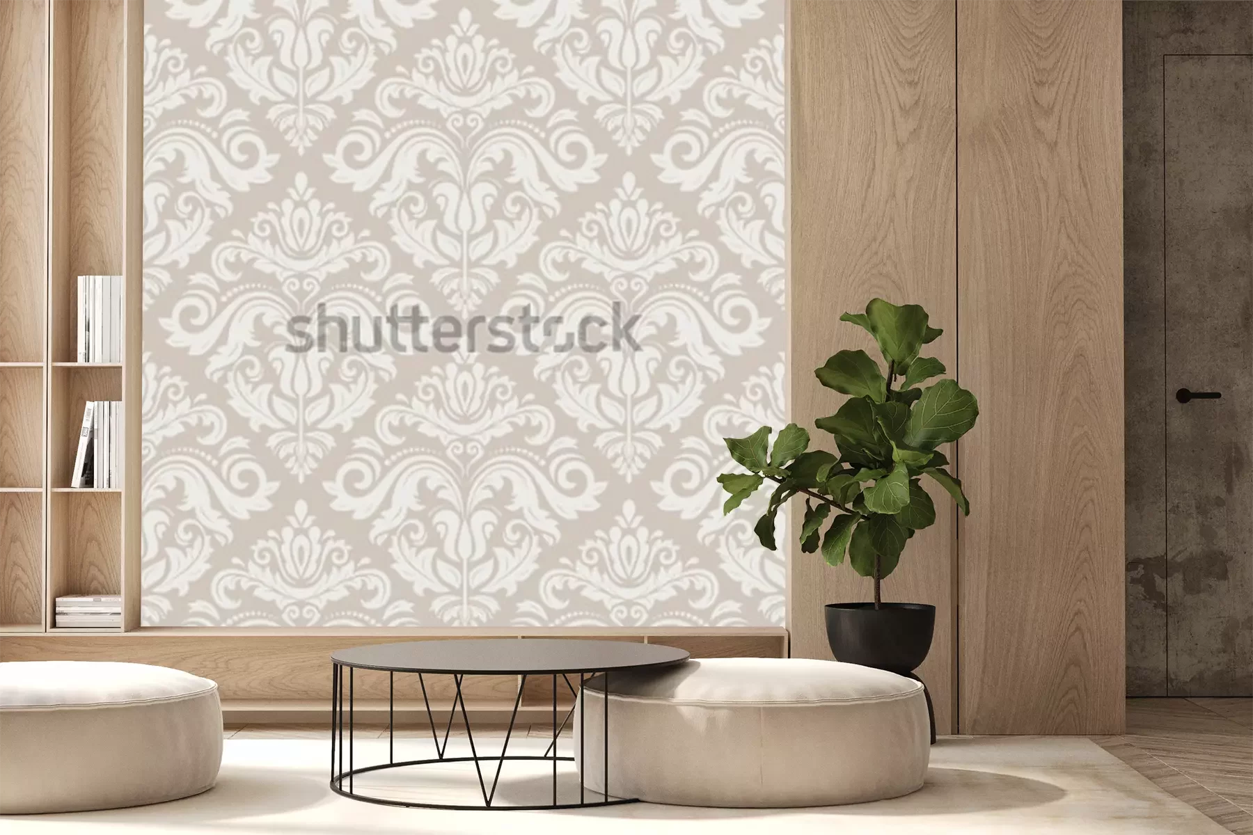 Sticker Damastvektorblumenmuster mit Arabeske und orientalischen rosa Elementen. Nahtlose abstrakte traditionelle Verzierung für Tapeten und Hintergründe