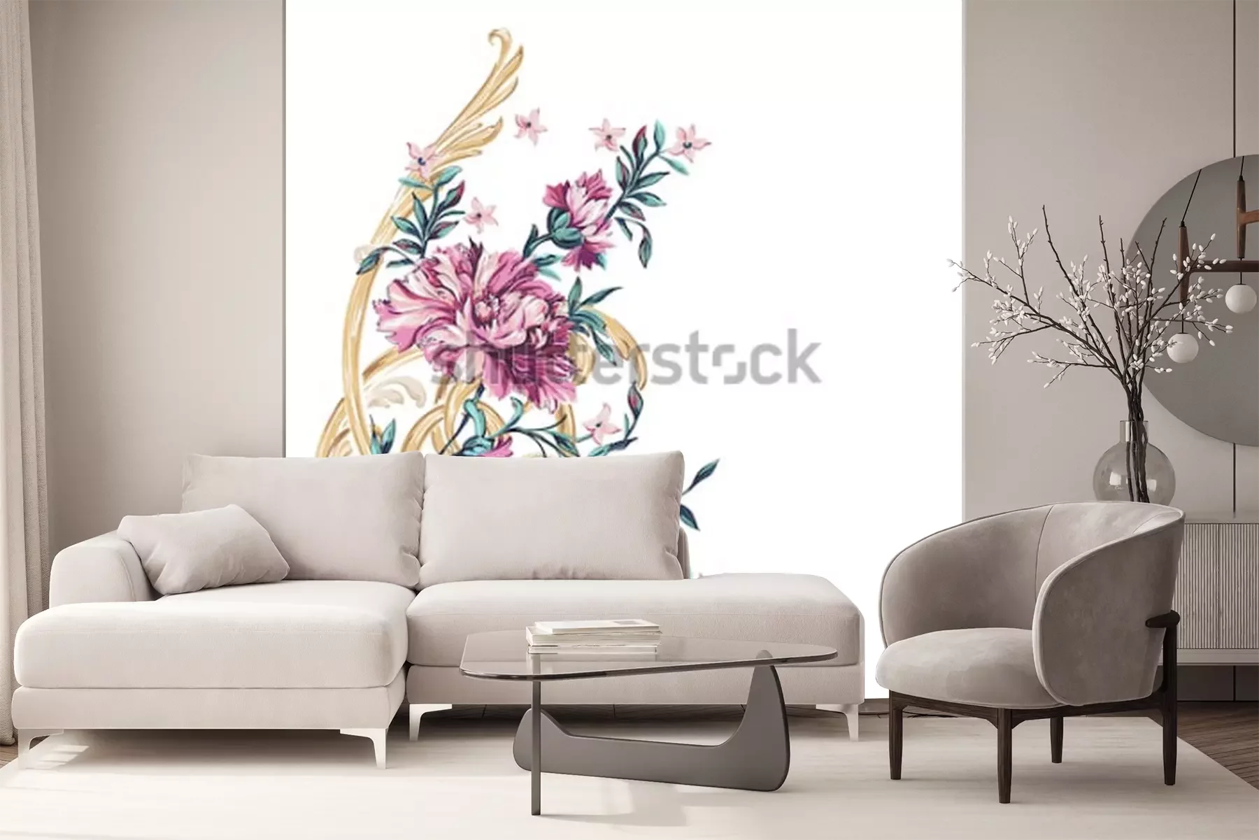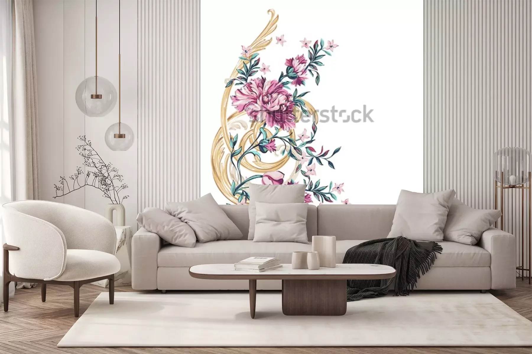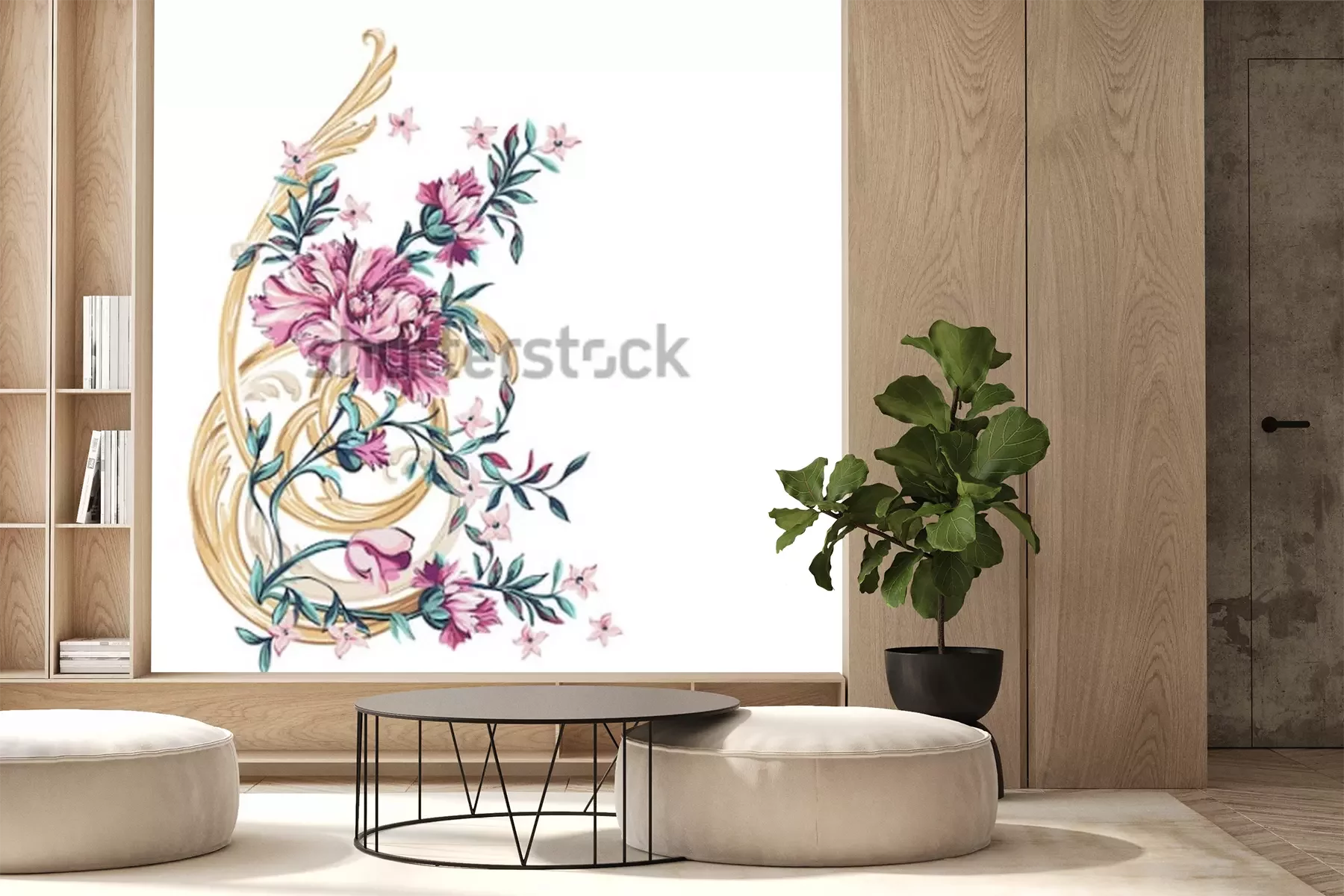 Sticker dekorative Blumen mit Barocco-Muster auf weißem Hintergrund