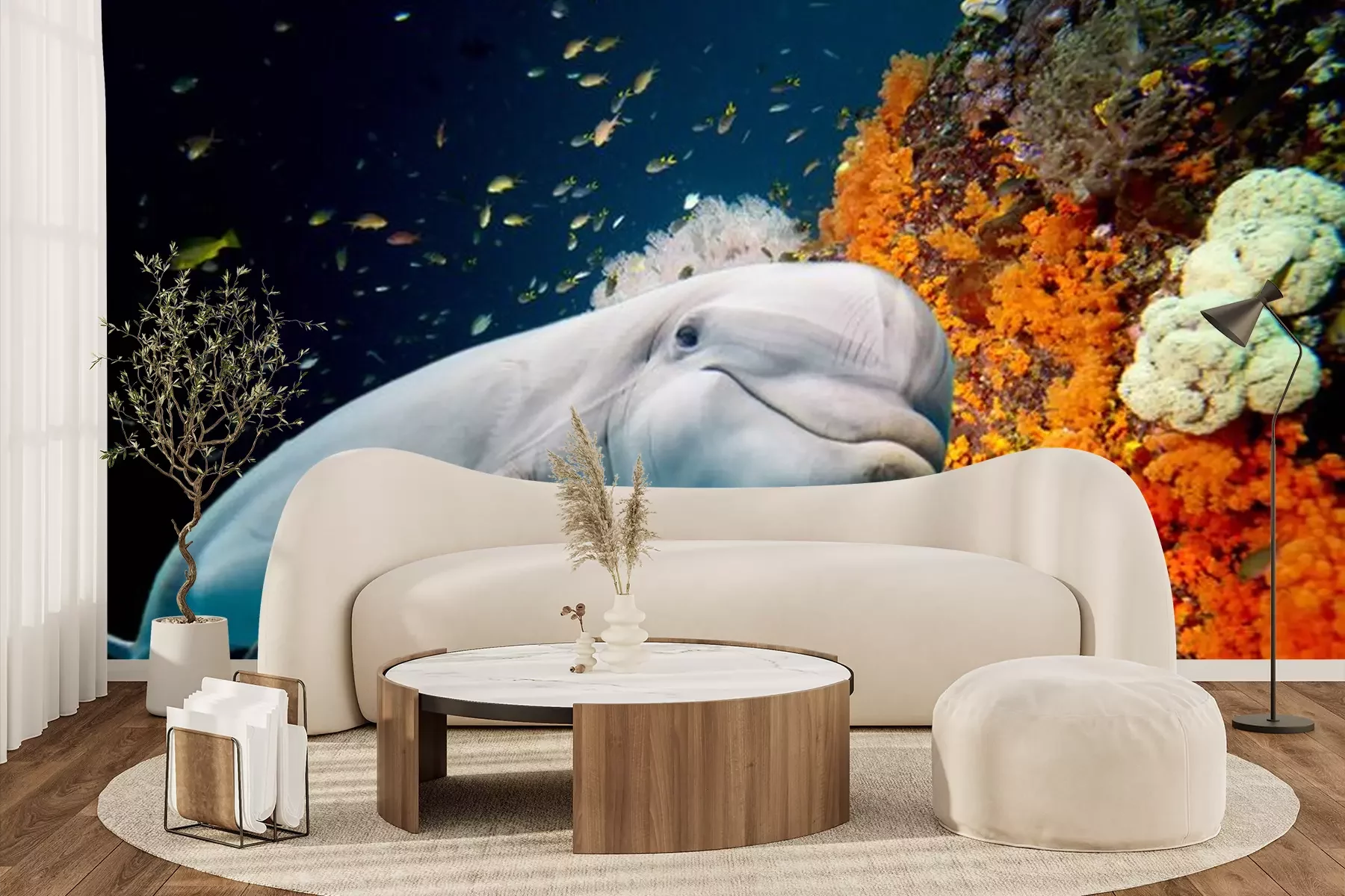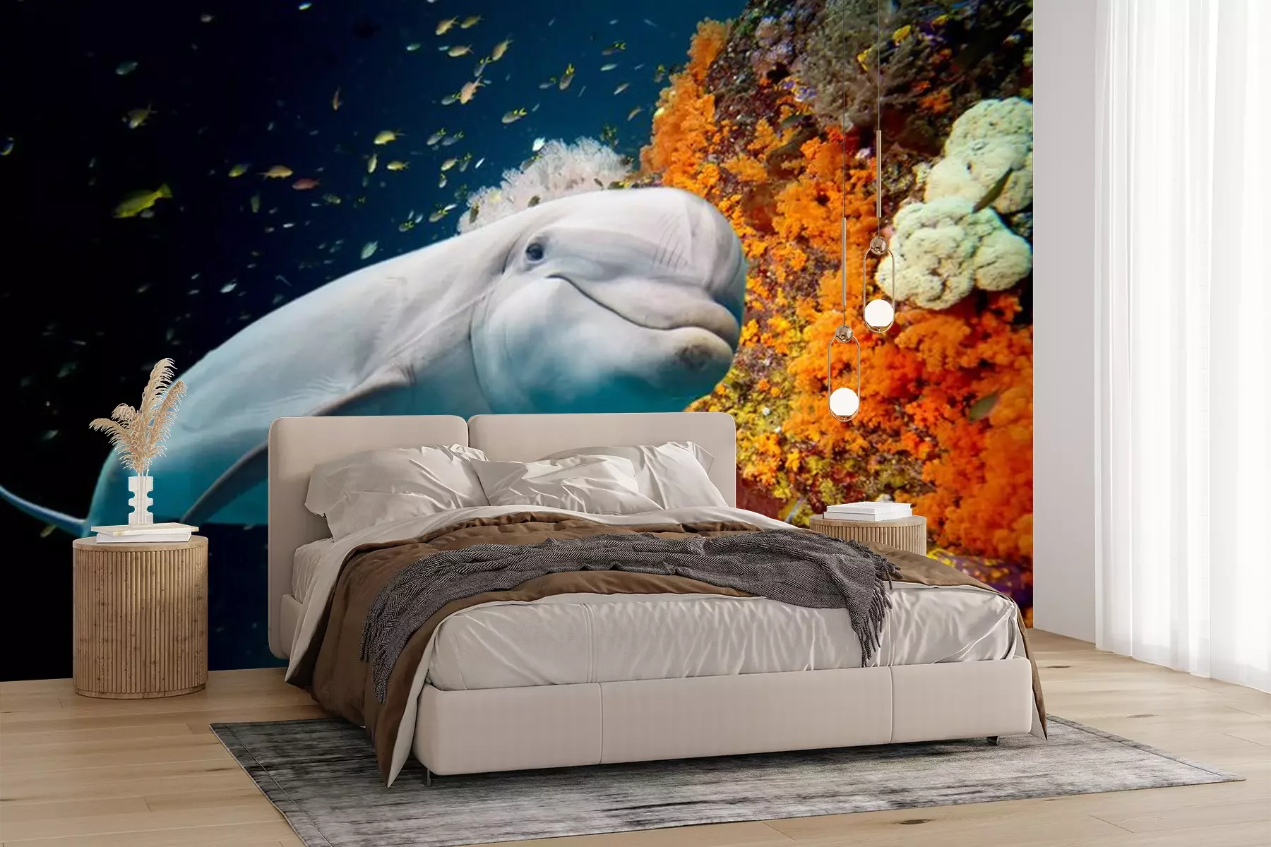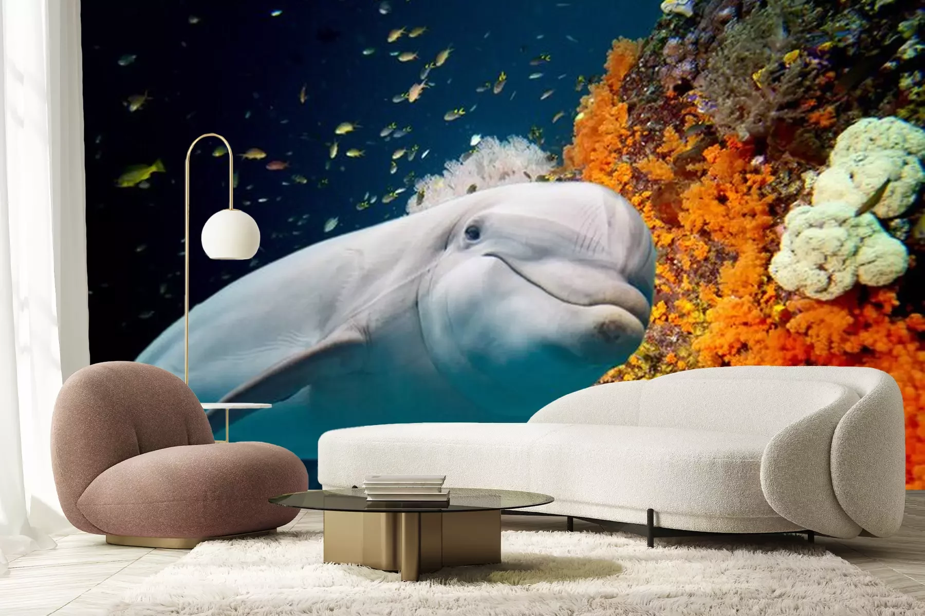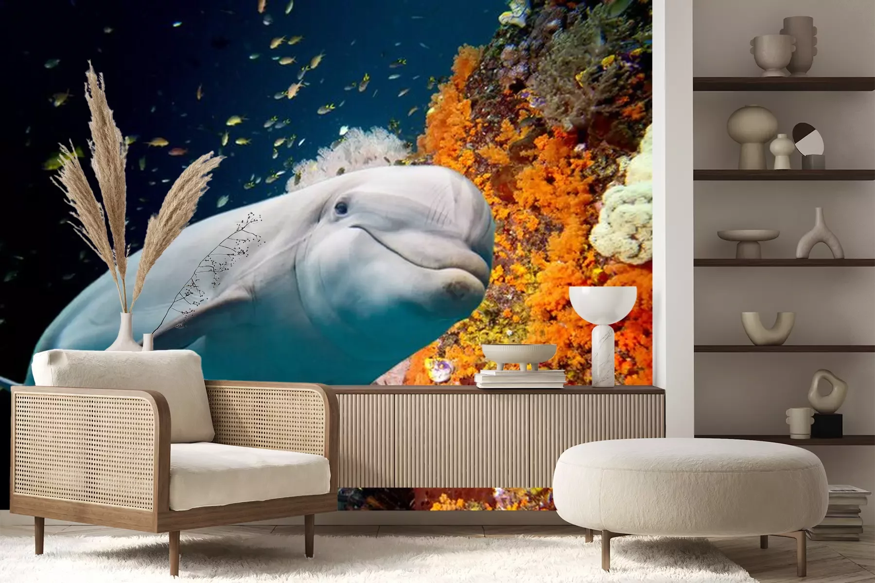 Delfin und Meer und FischschwarmProblemlose Lieferung durch vertrauenswürdige Spediteure