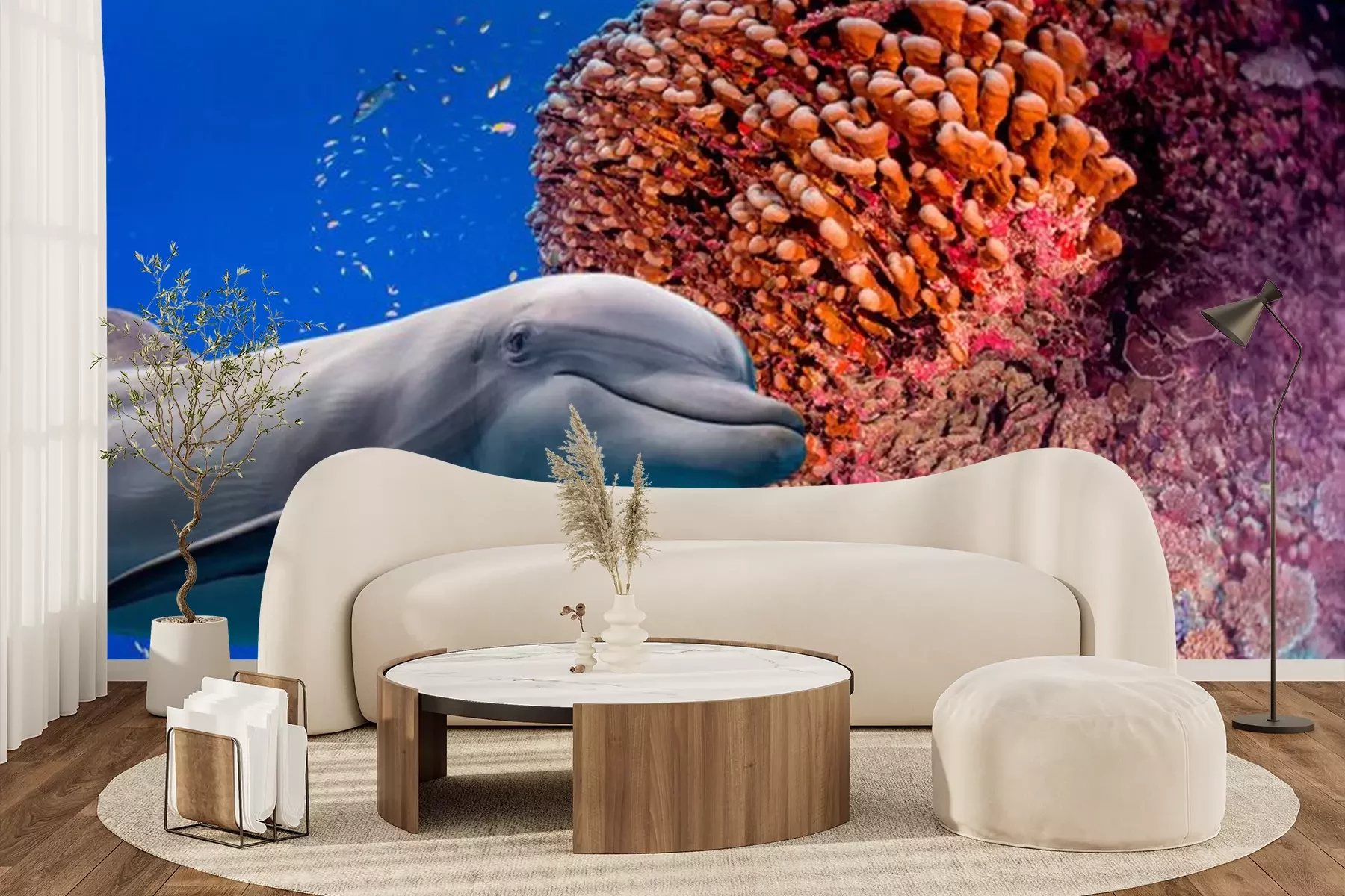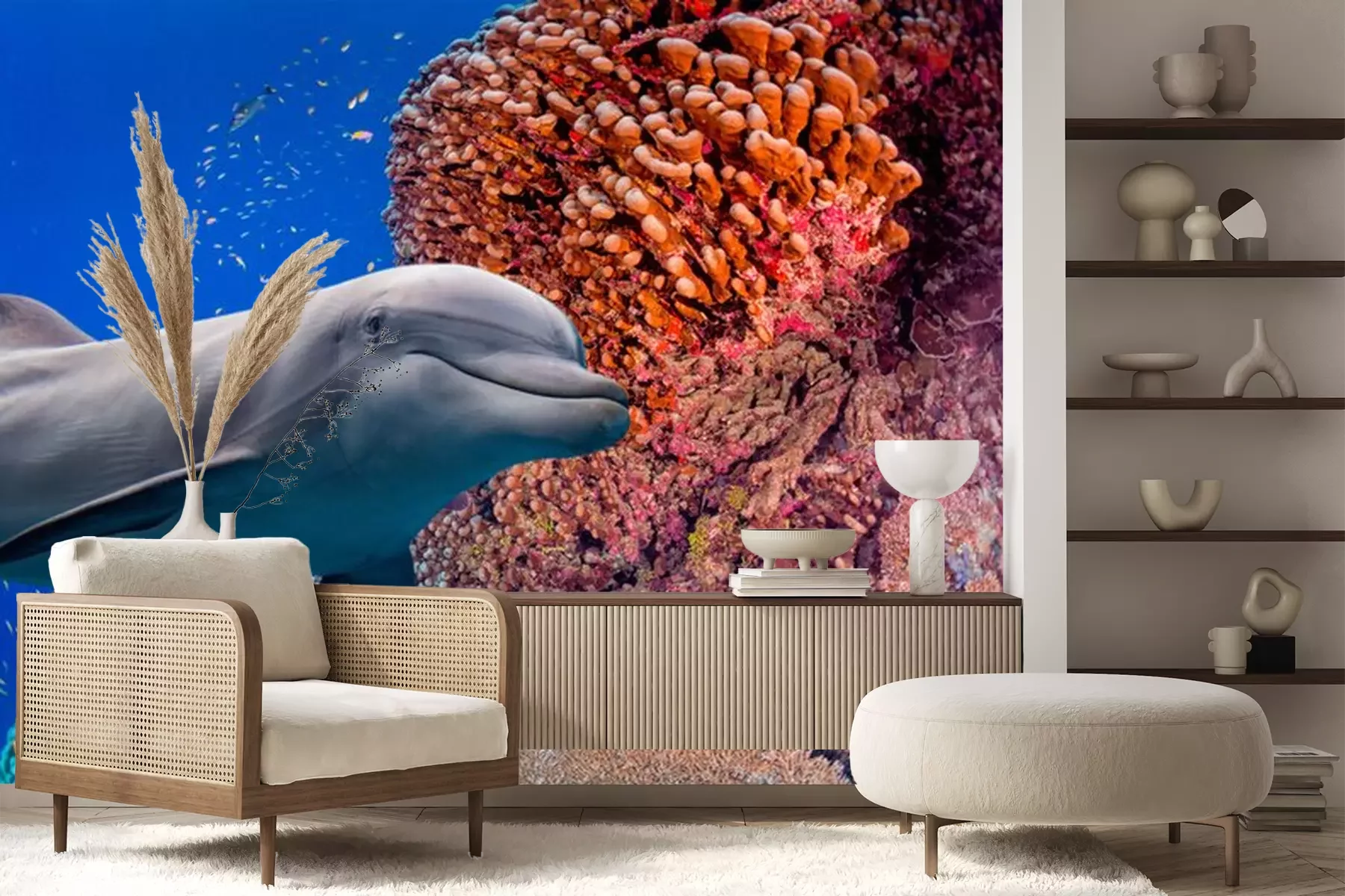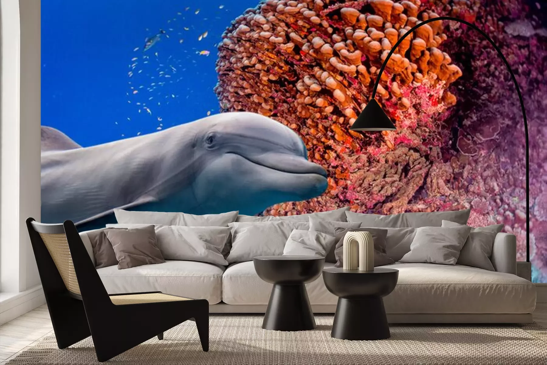 Delfin und Meer und FischschwarmProblemlose Lieferung durch vertrauenswürdige Spediteure