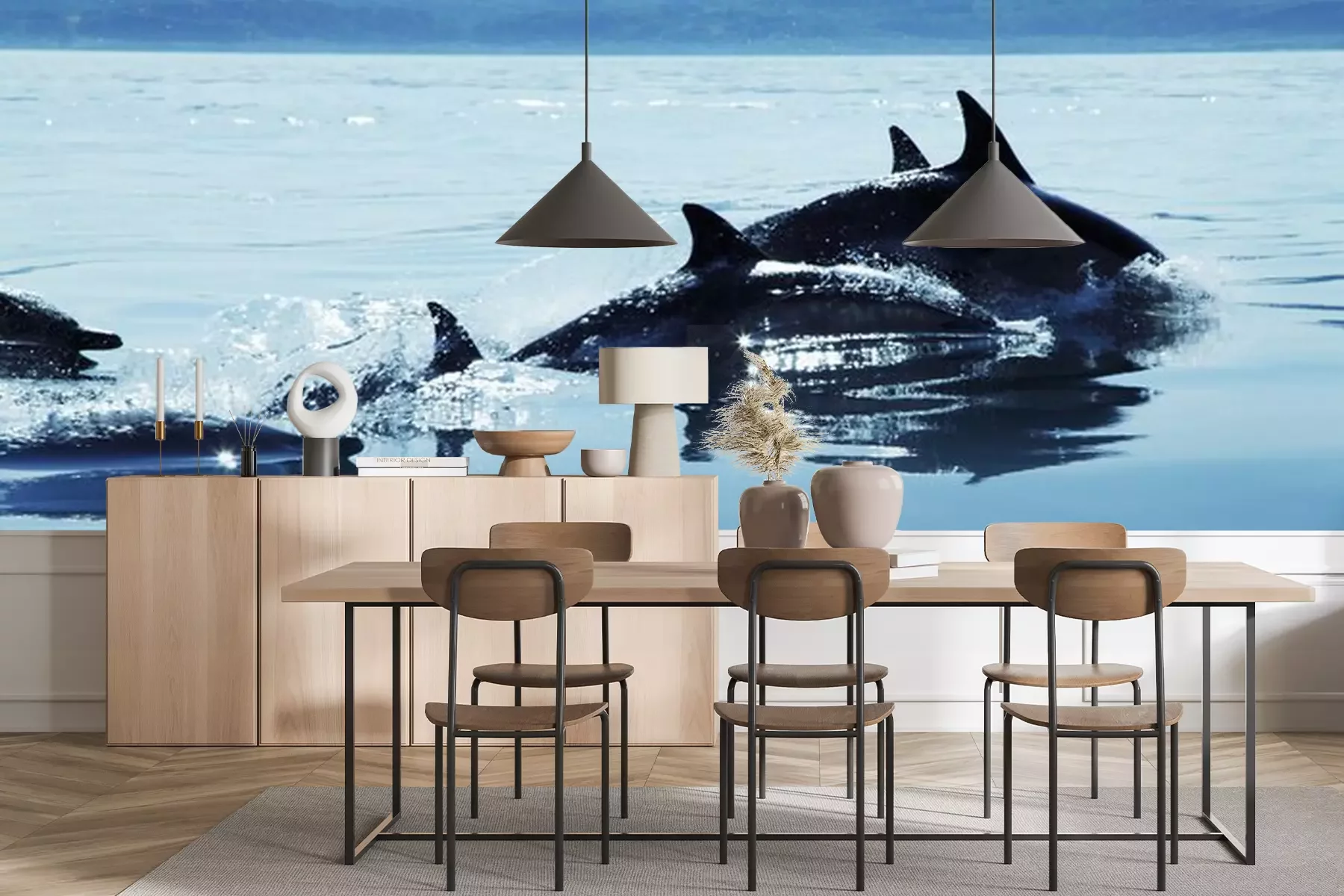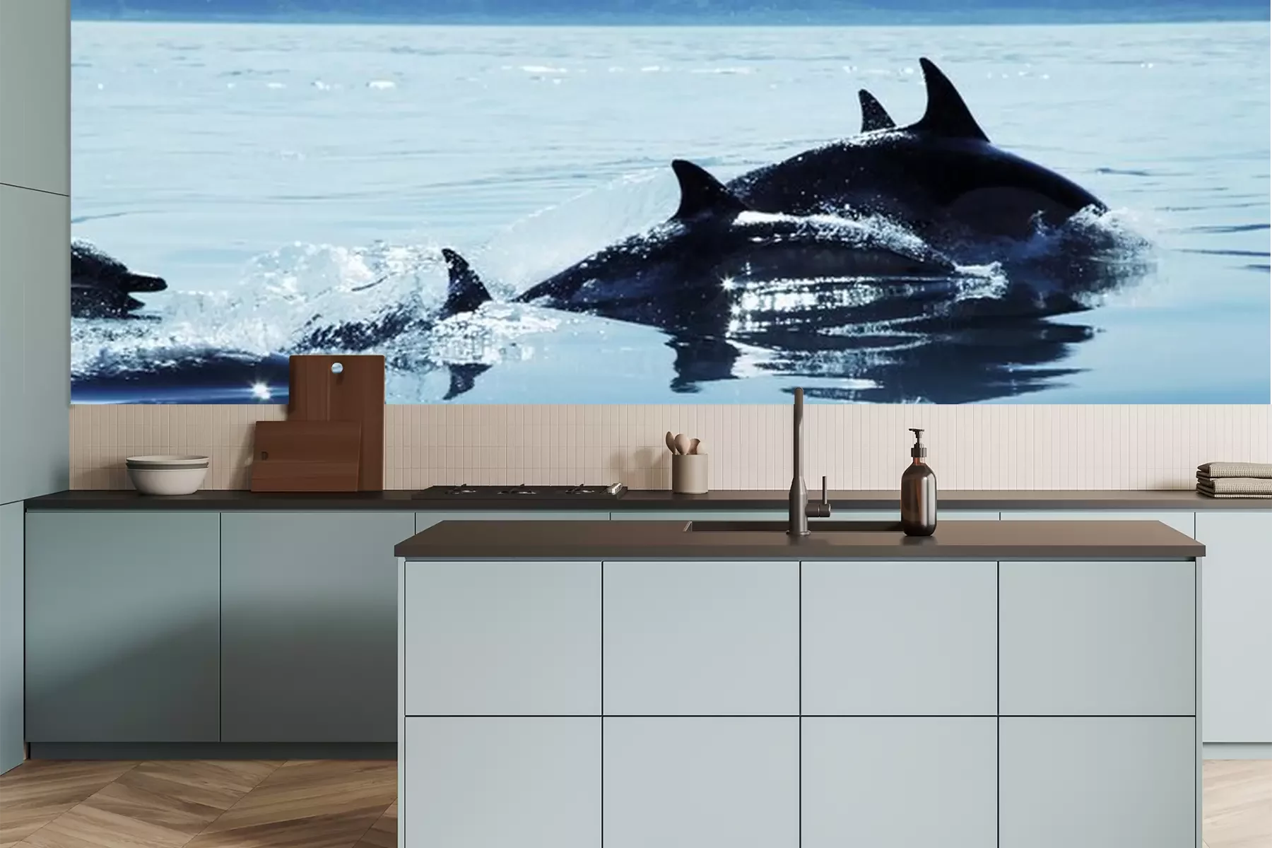 Sticker Delfine  die aus dem Wasser auftauchen