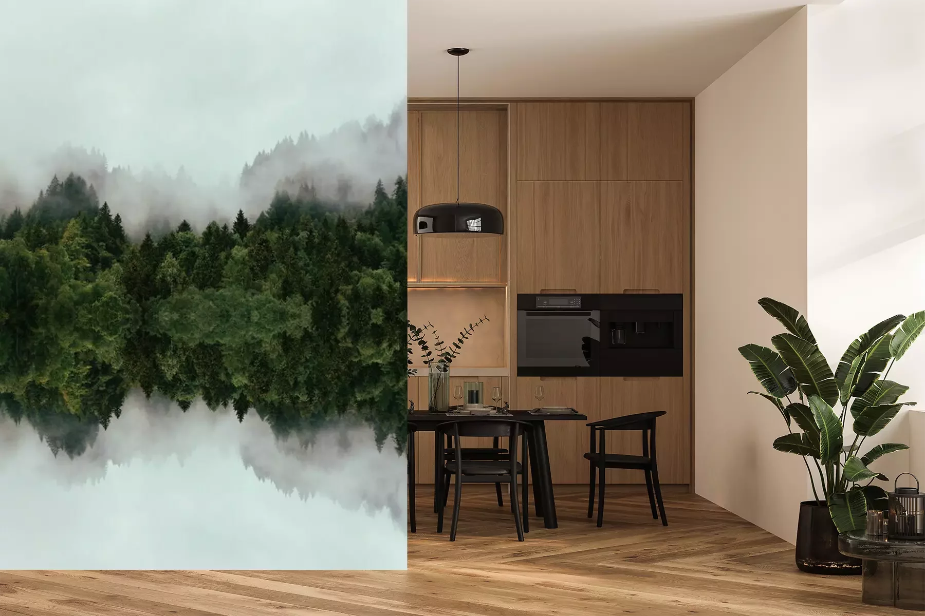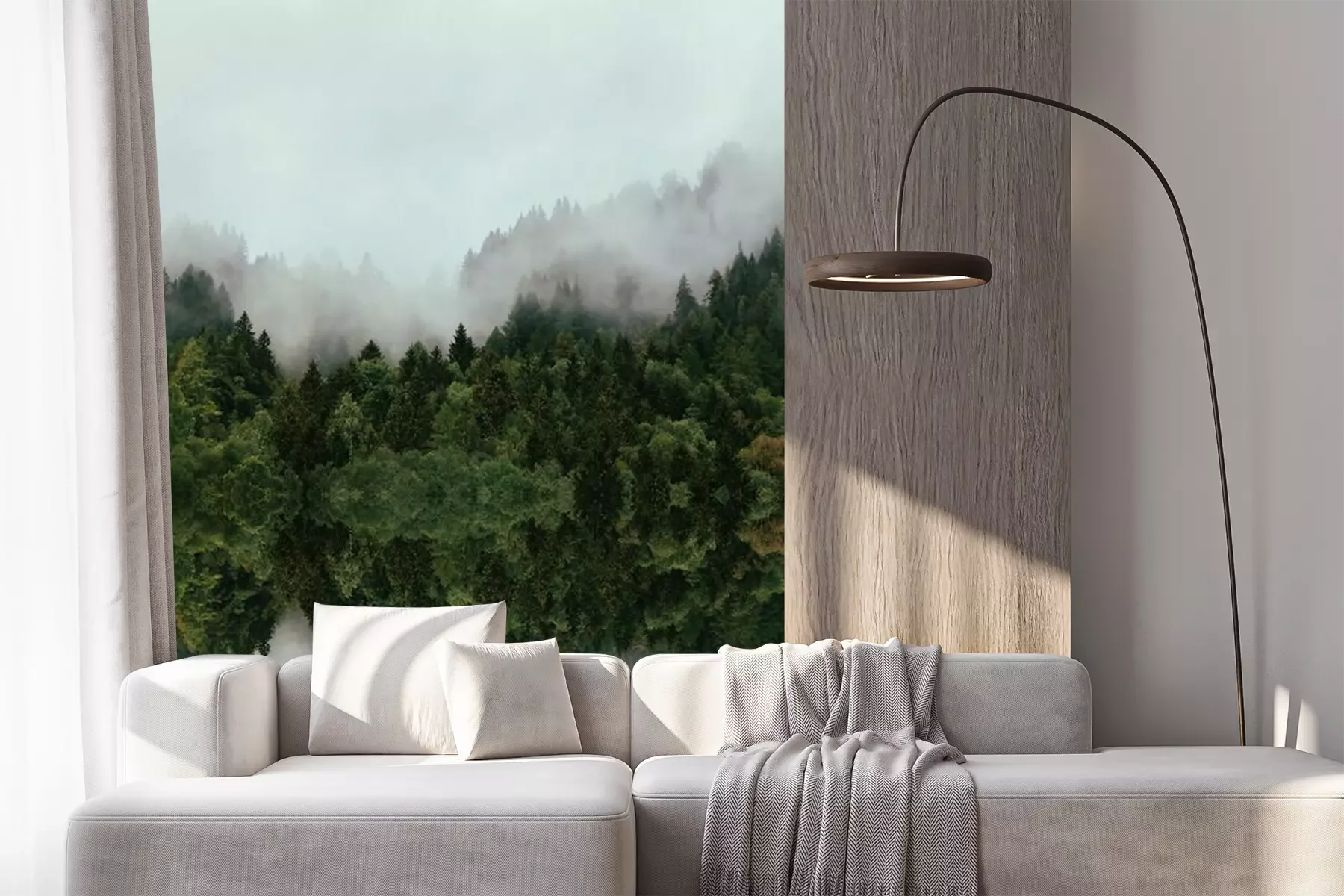 Nadelwald im Nebel, herbstliche LandschaftProblemlose Lieferung durch vertrauenswürdige Spediteure
