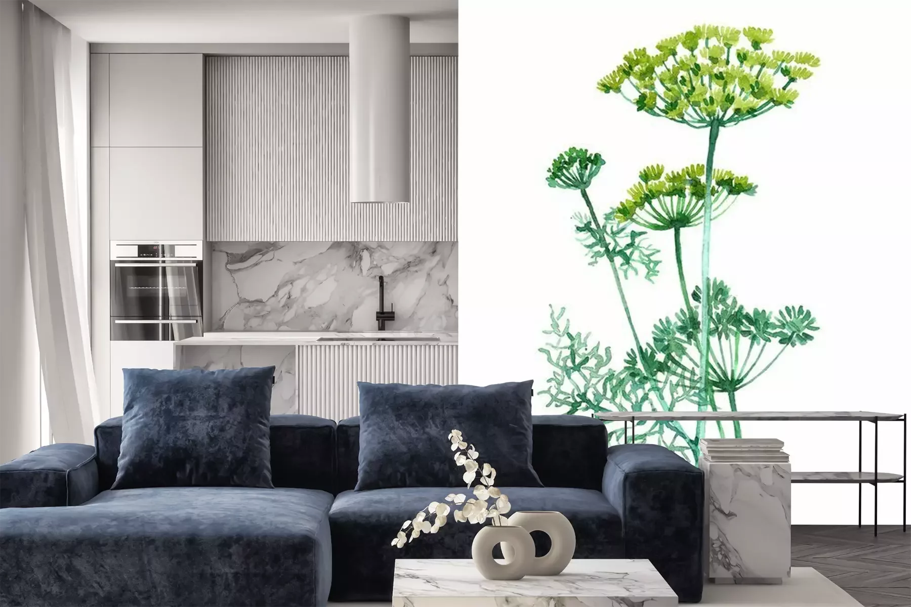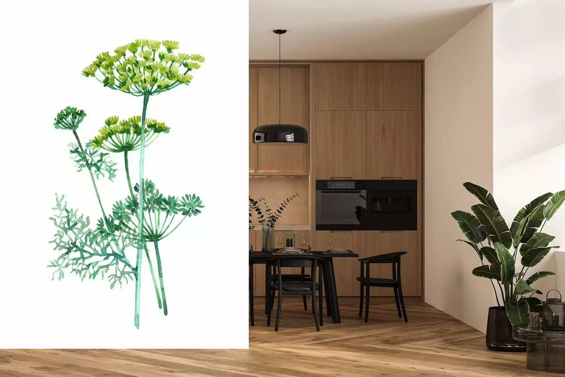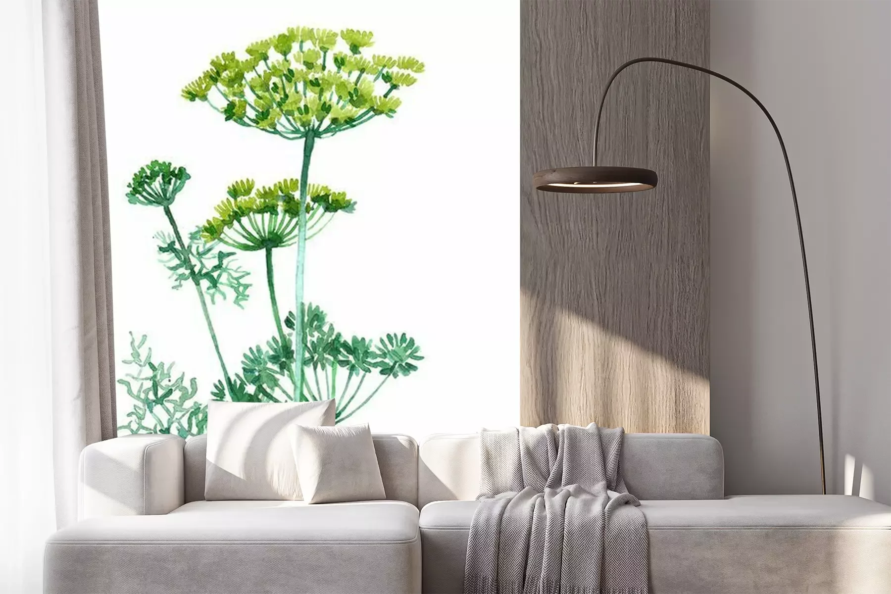Sticker Dill plant Watercolor illustration isolated on white background.