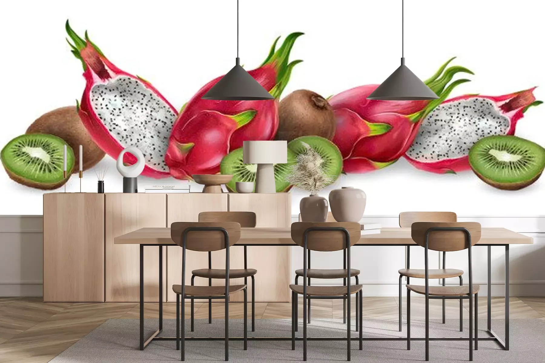 Sticker Drachenfrüchte und Kiwi realistische Illustration