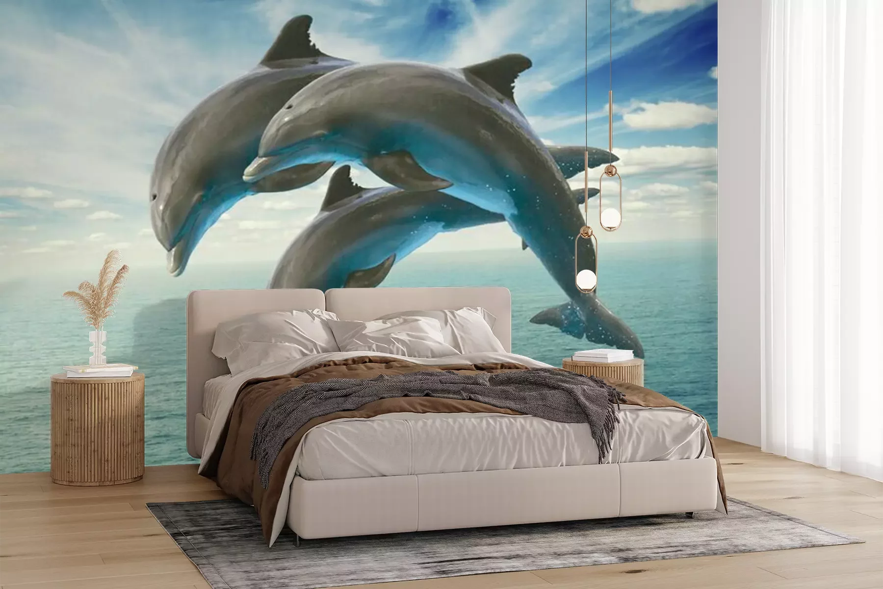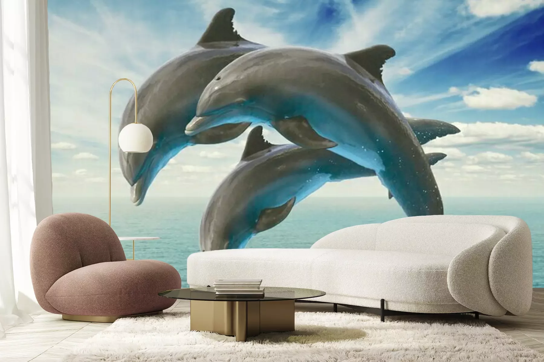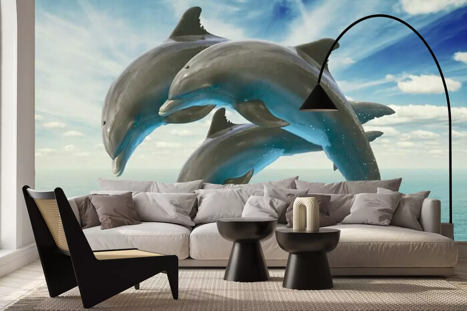 Sticker Drei Delfine über dem Wasser