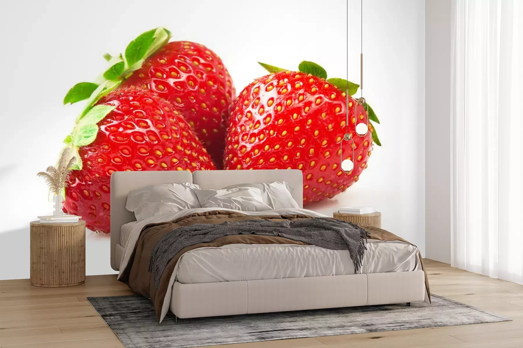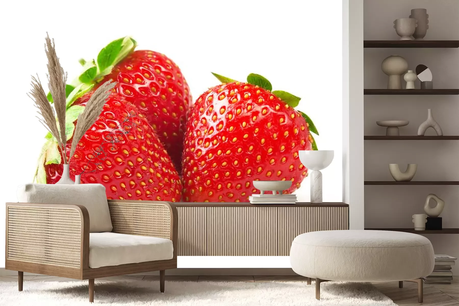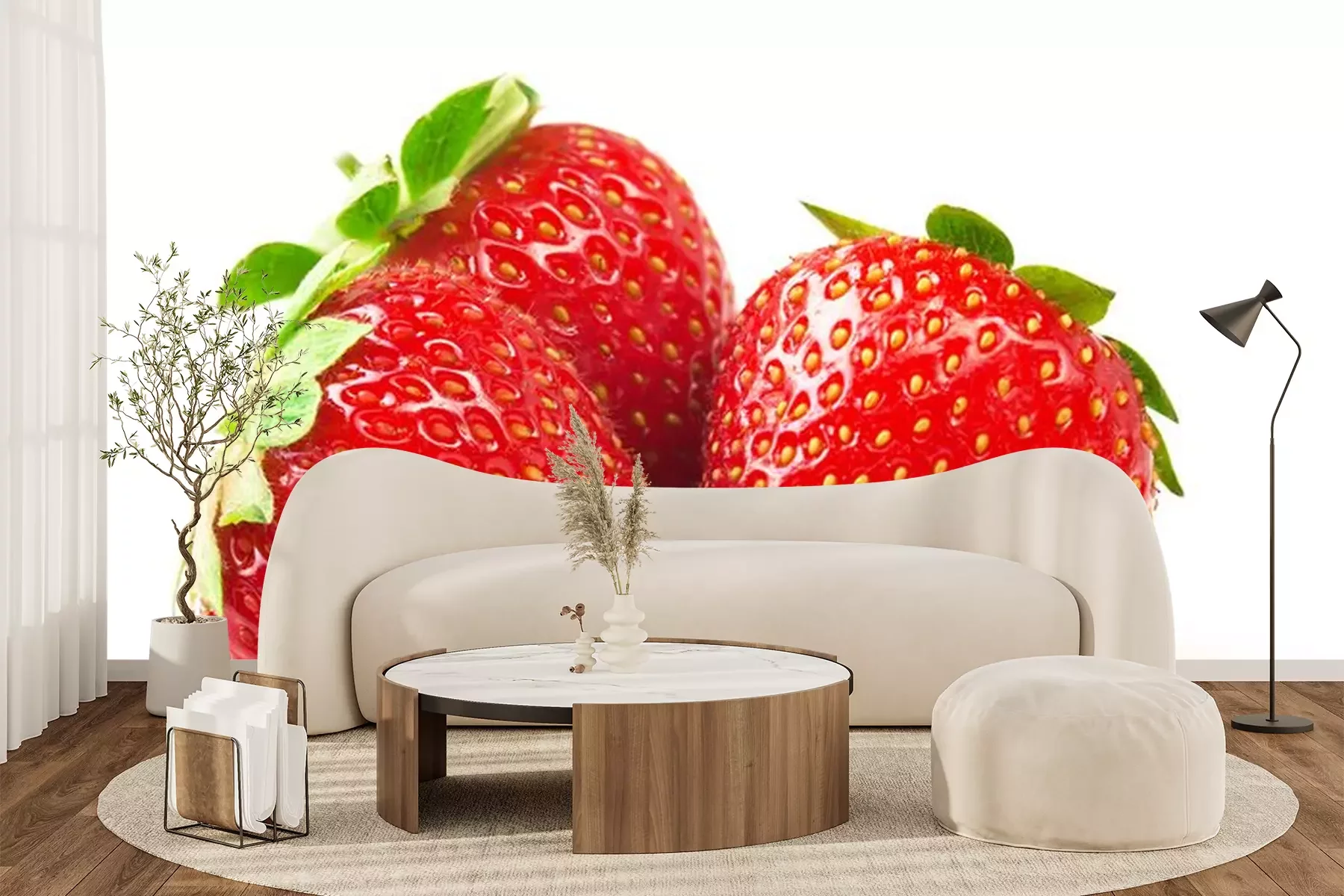 Sticker Drei Erdbeeren auf weißem Hintergrund Foto