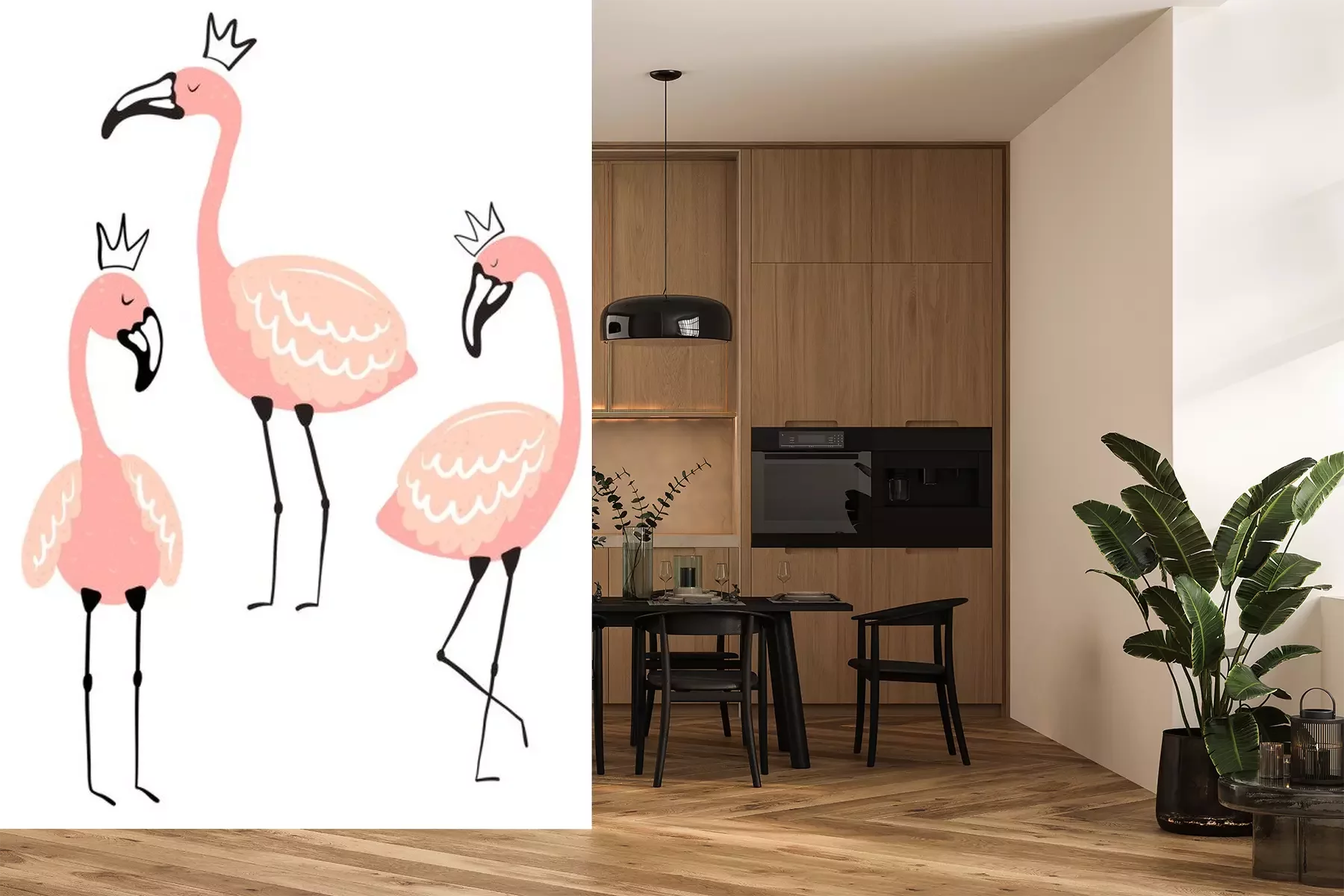 Flamingo in Krone mit AufschriftProblemlose Lieferung durch vertrauenswürdige Spediteure