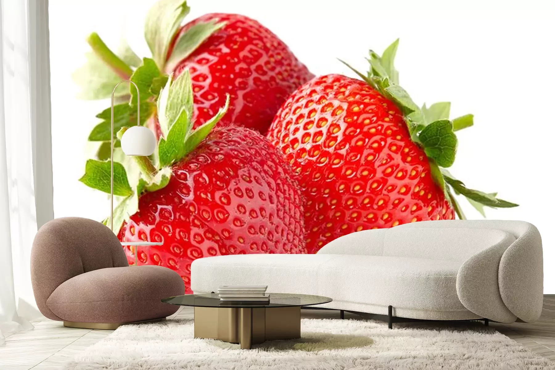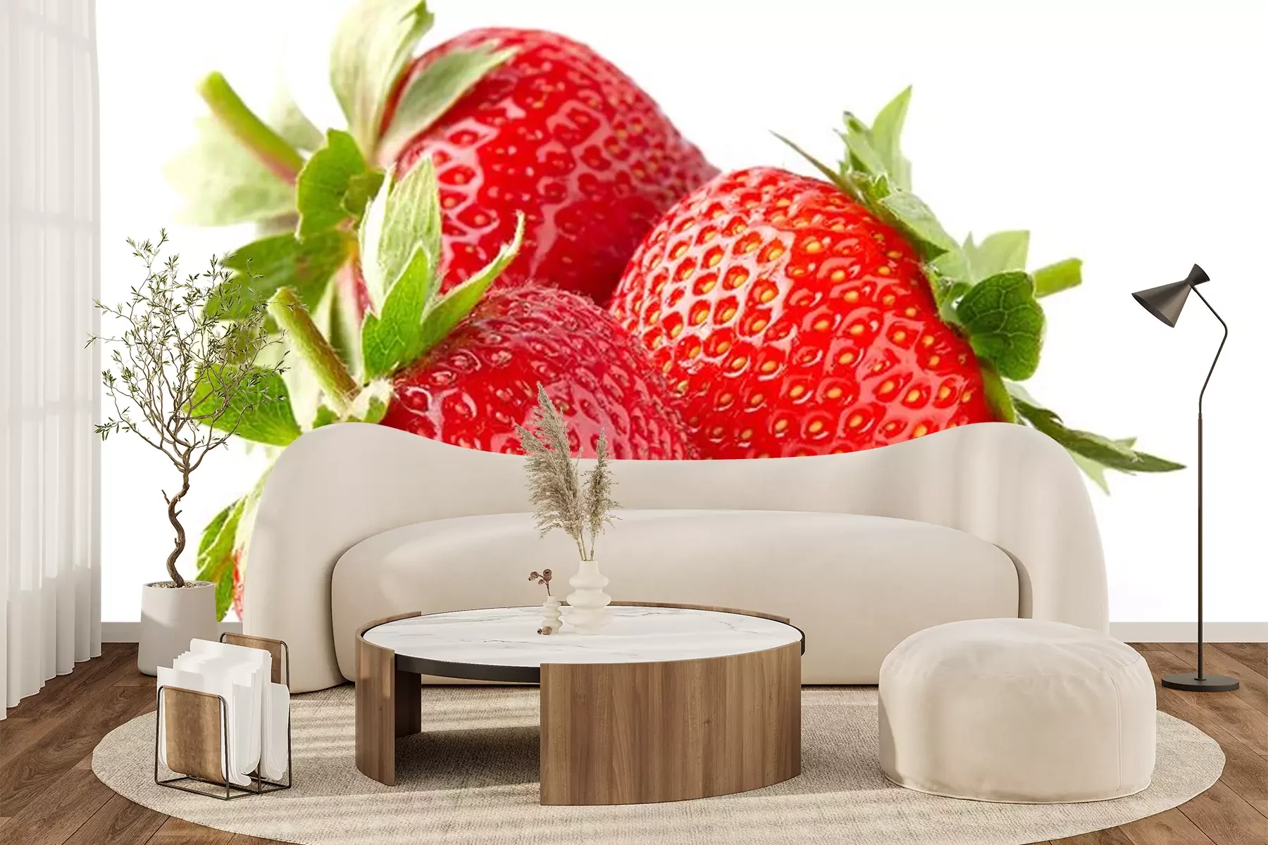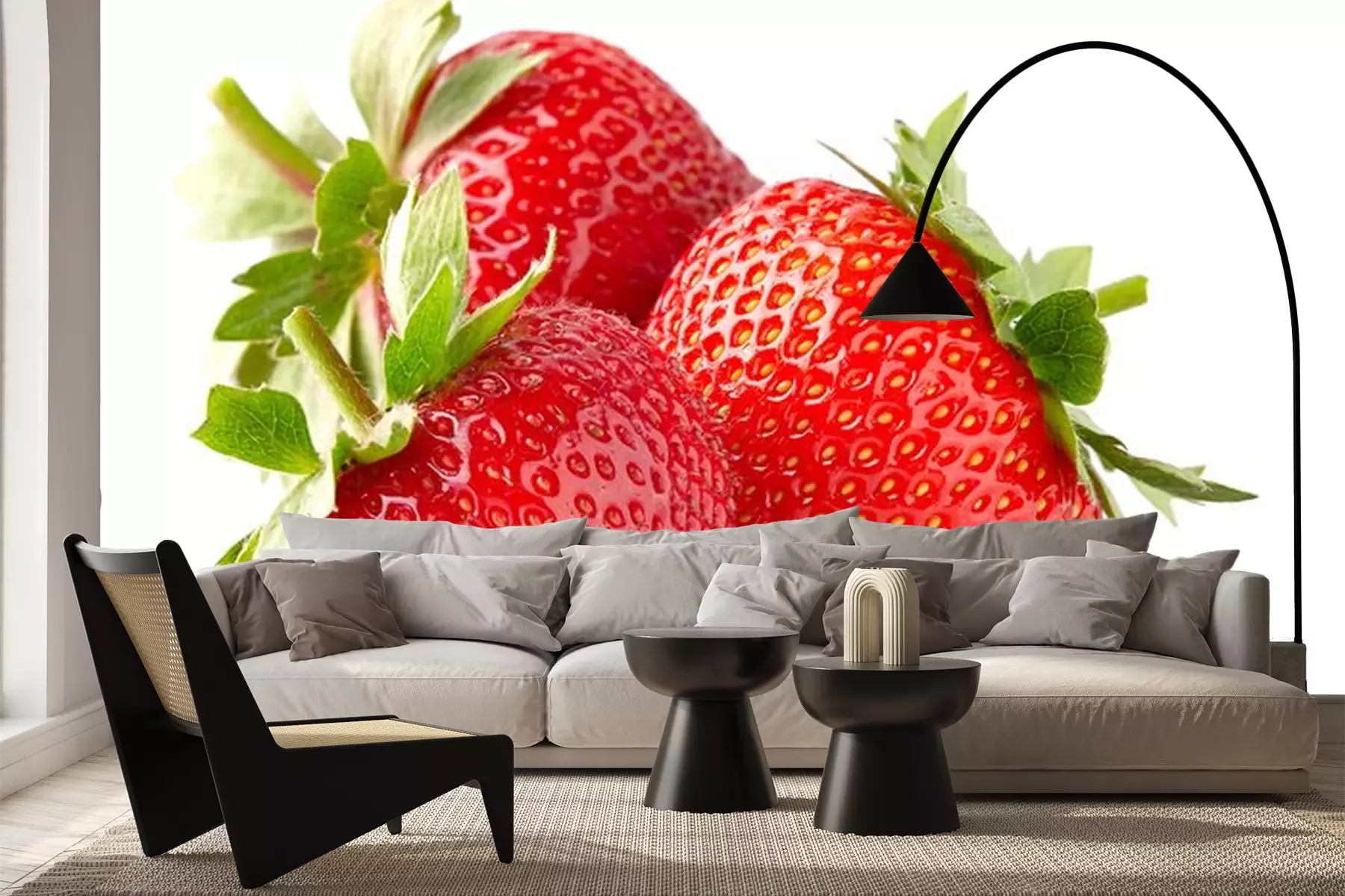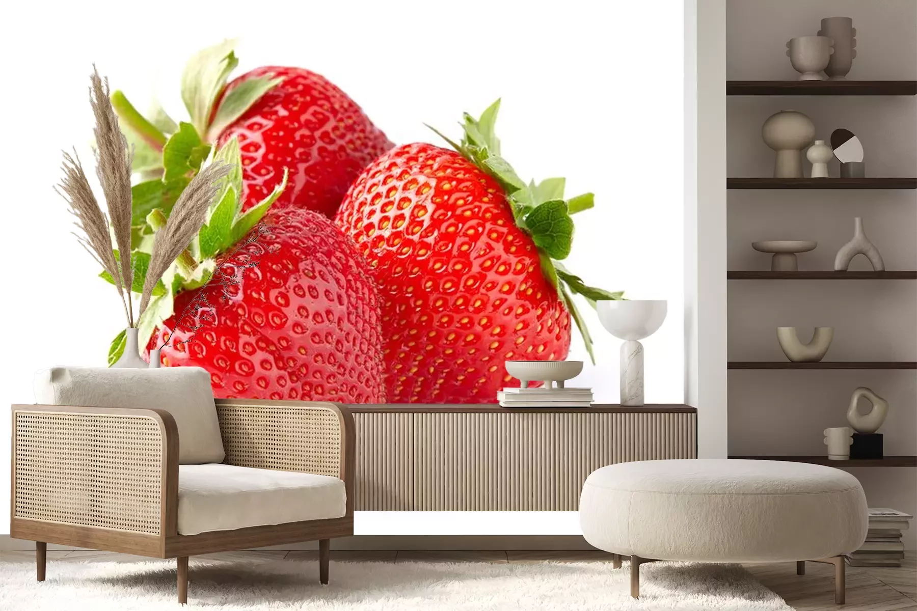 Sticker Drei prächtige Erdbeeren auf weißem Hintergrund