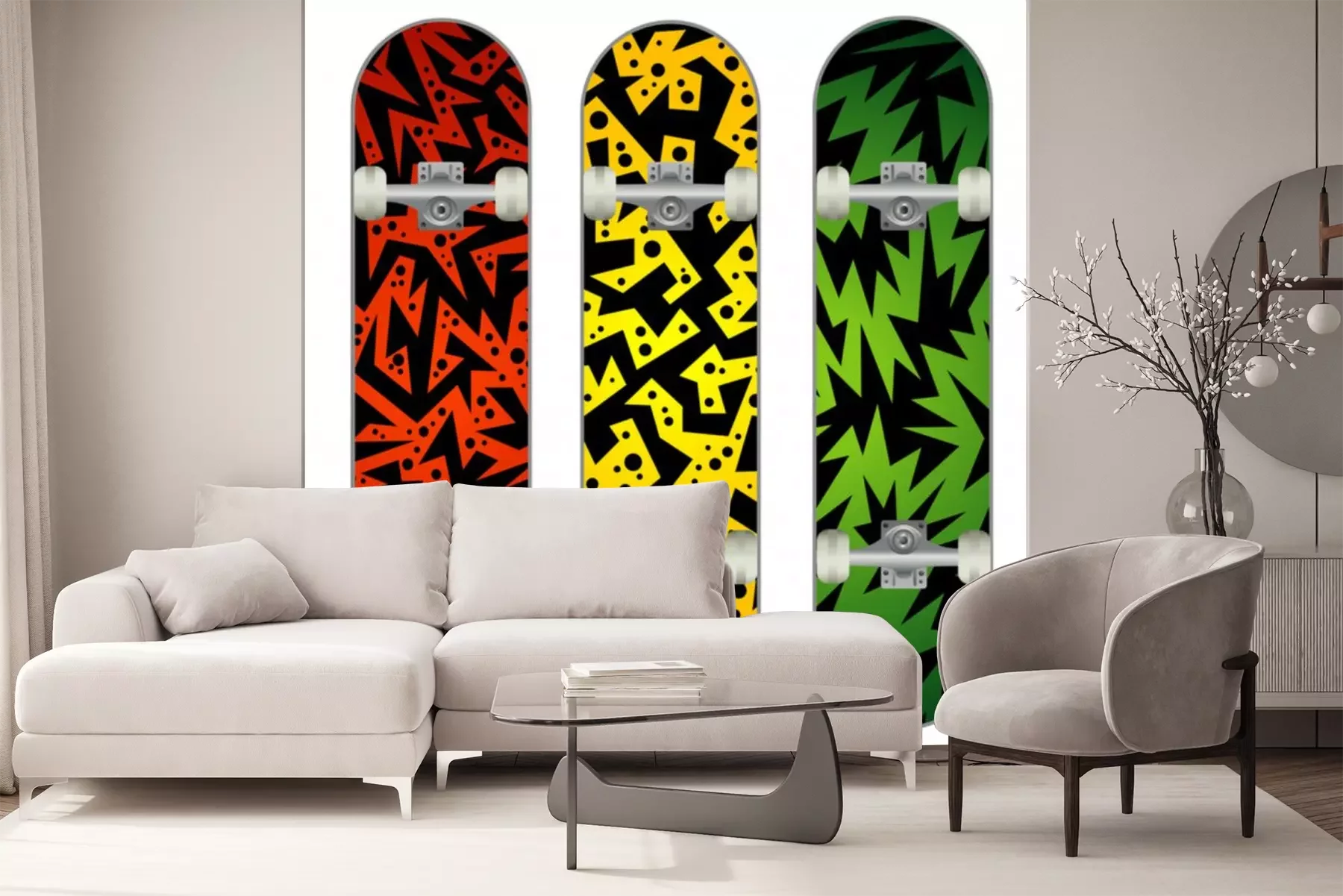 Sticker Drei Vektor Skateboard farbenfrohen Designs
