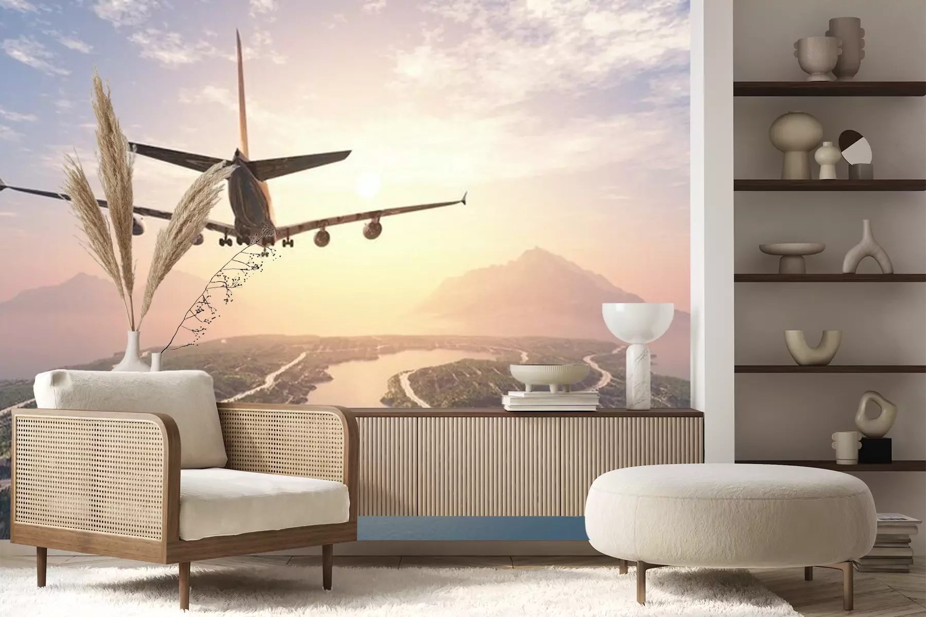 Flugzeug über den WolkenFototapete